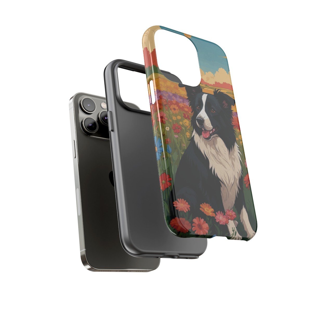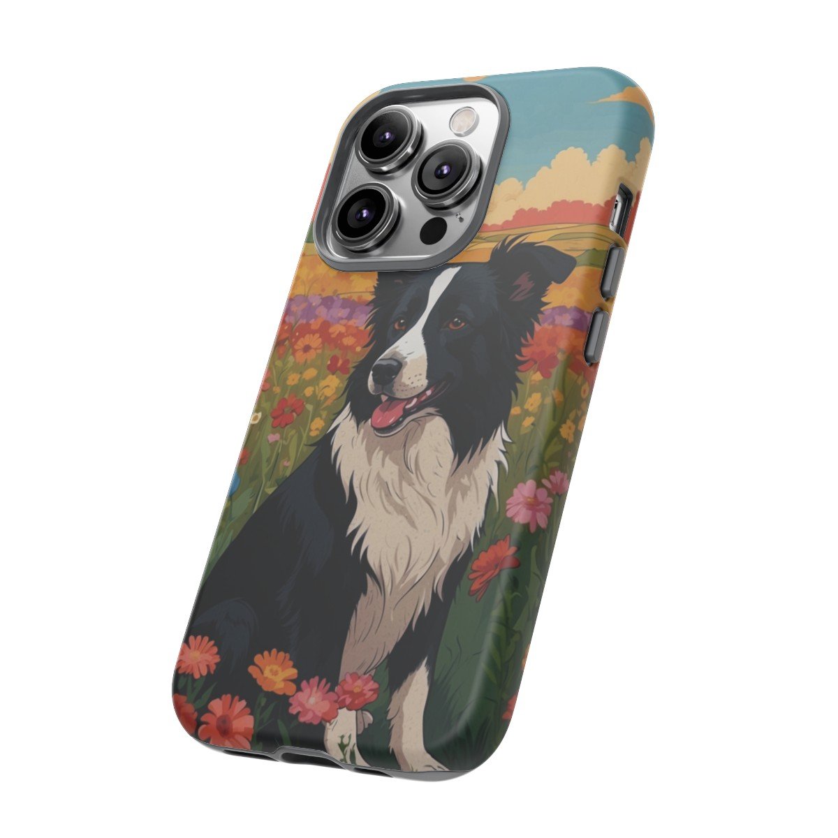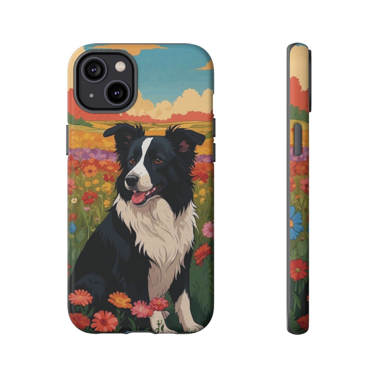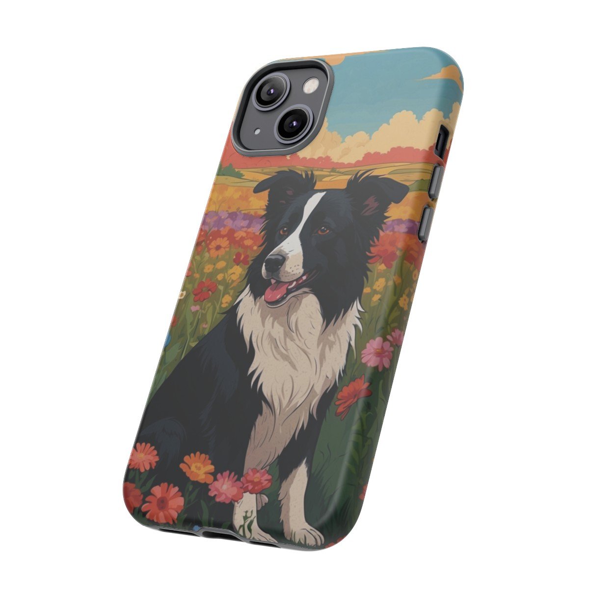 Border Collie in a Field of Flowers – Multi-Colored – iPhone 14 15 – Cell Phone – Tough Cases.
