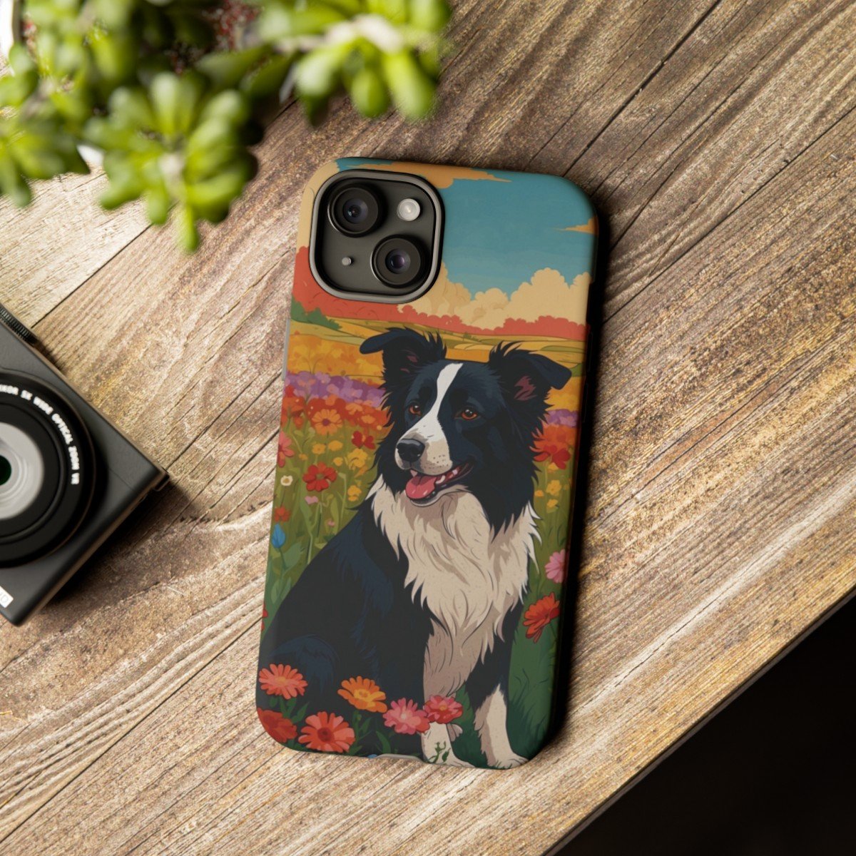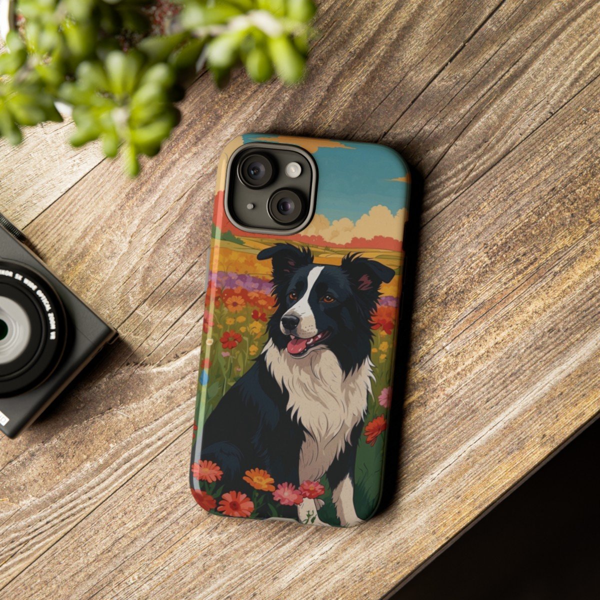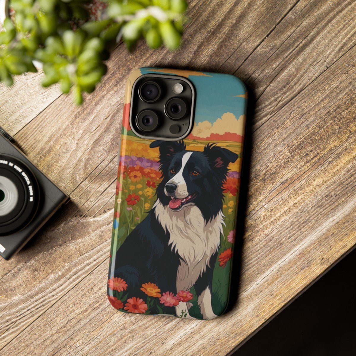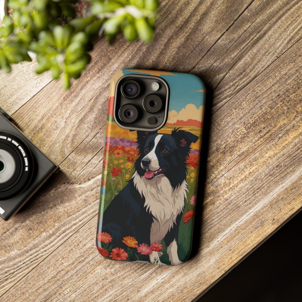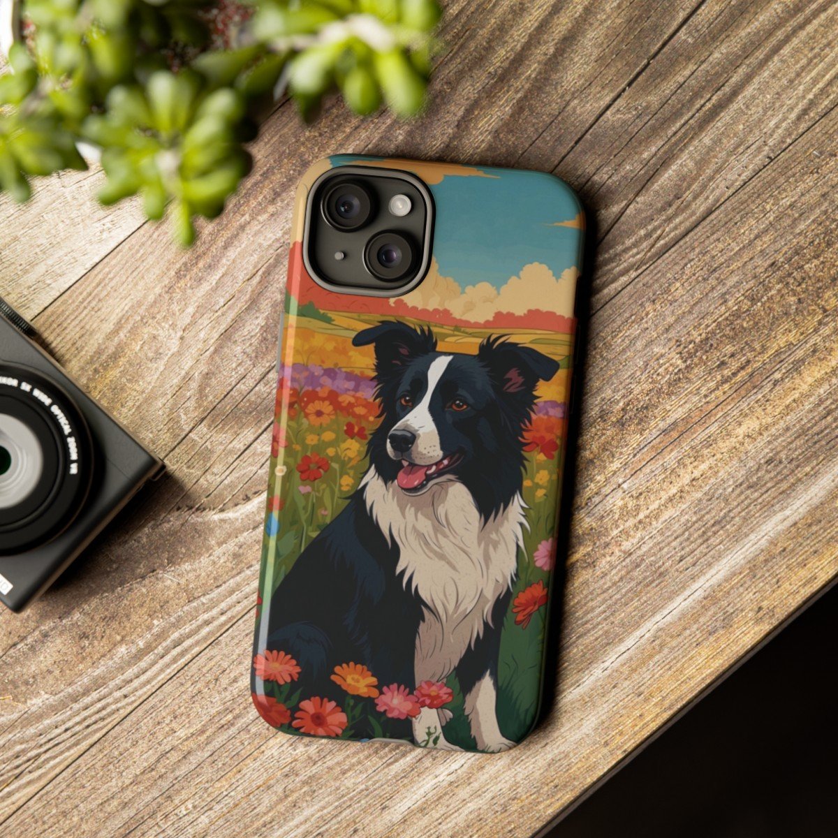 Border Collie in a Field of Flowers – Multi-Colored – iPhone 14 15 – Cell Phone – Tough Cases.