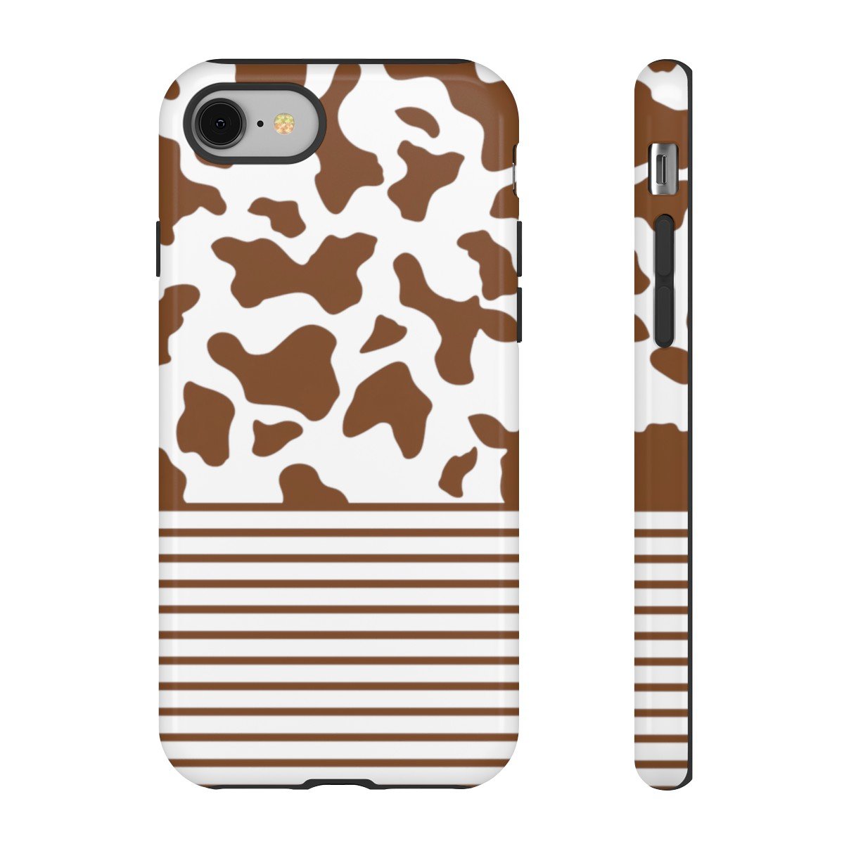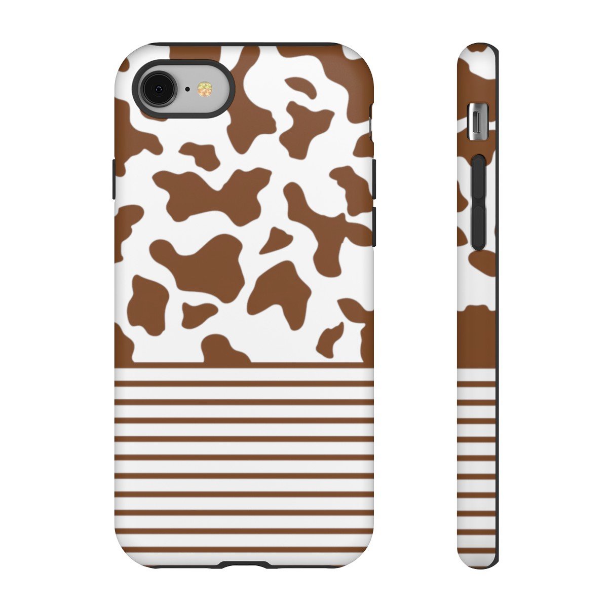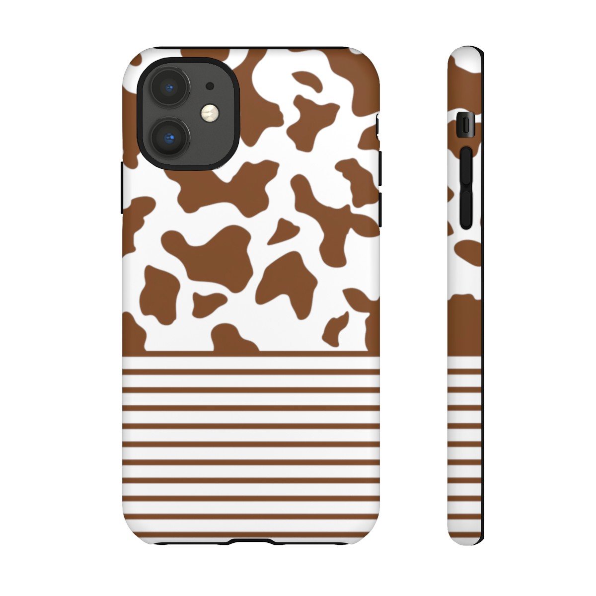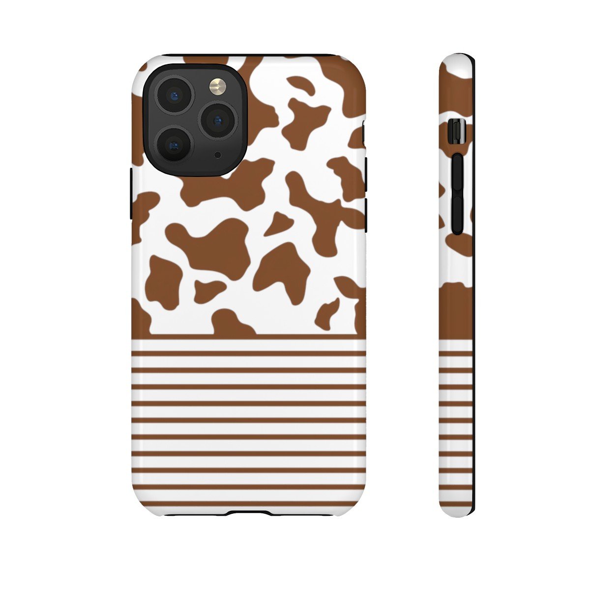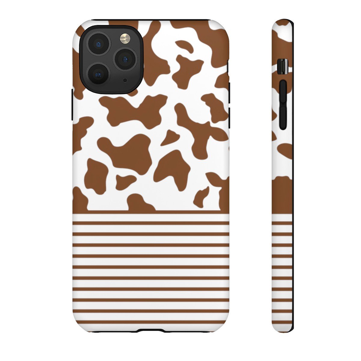 Brown and White Cow Spots and Stripes – iPhone 8 X 11 – Cell Phone – Tough Cases.