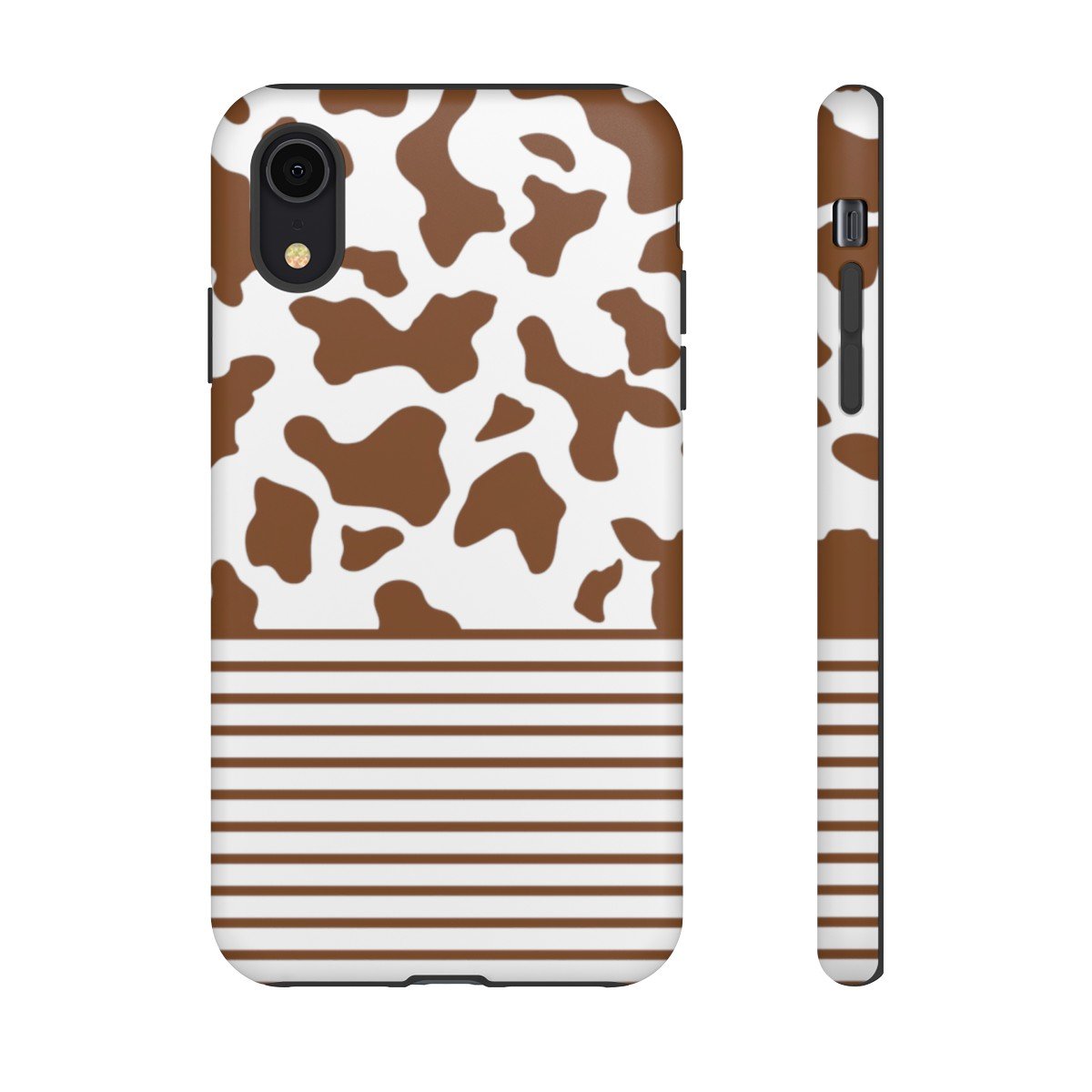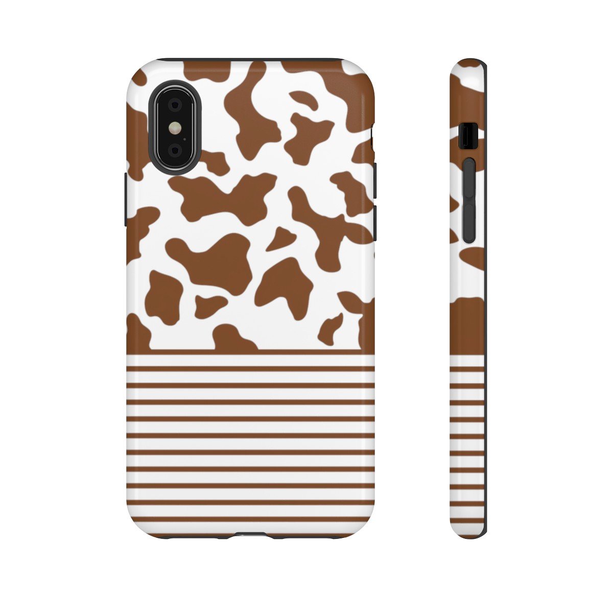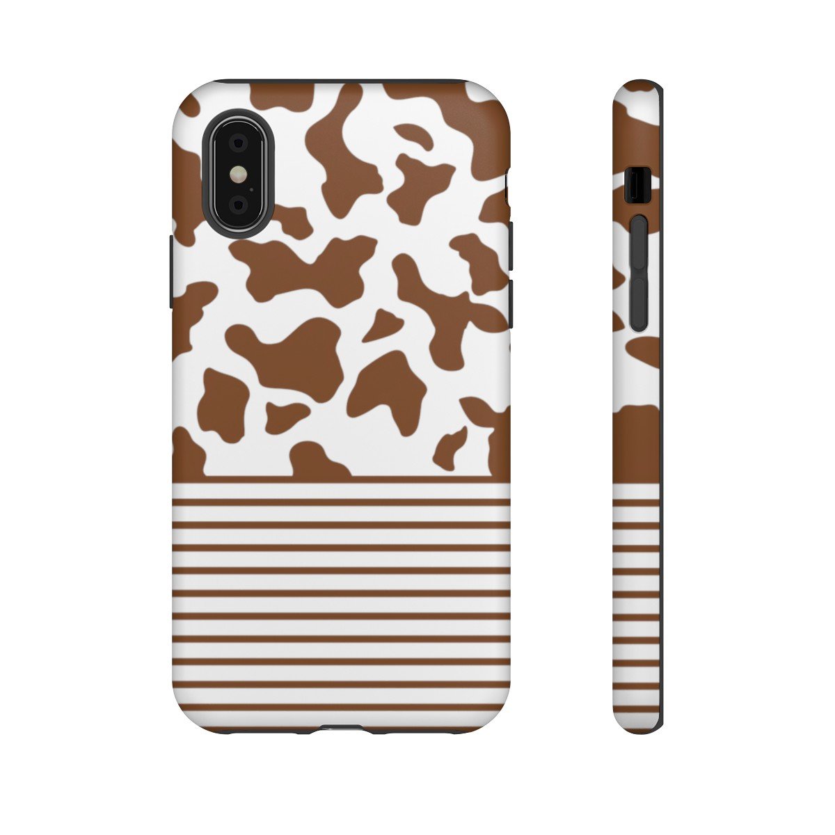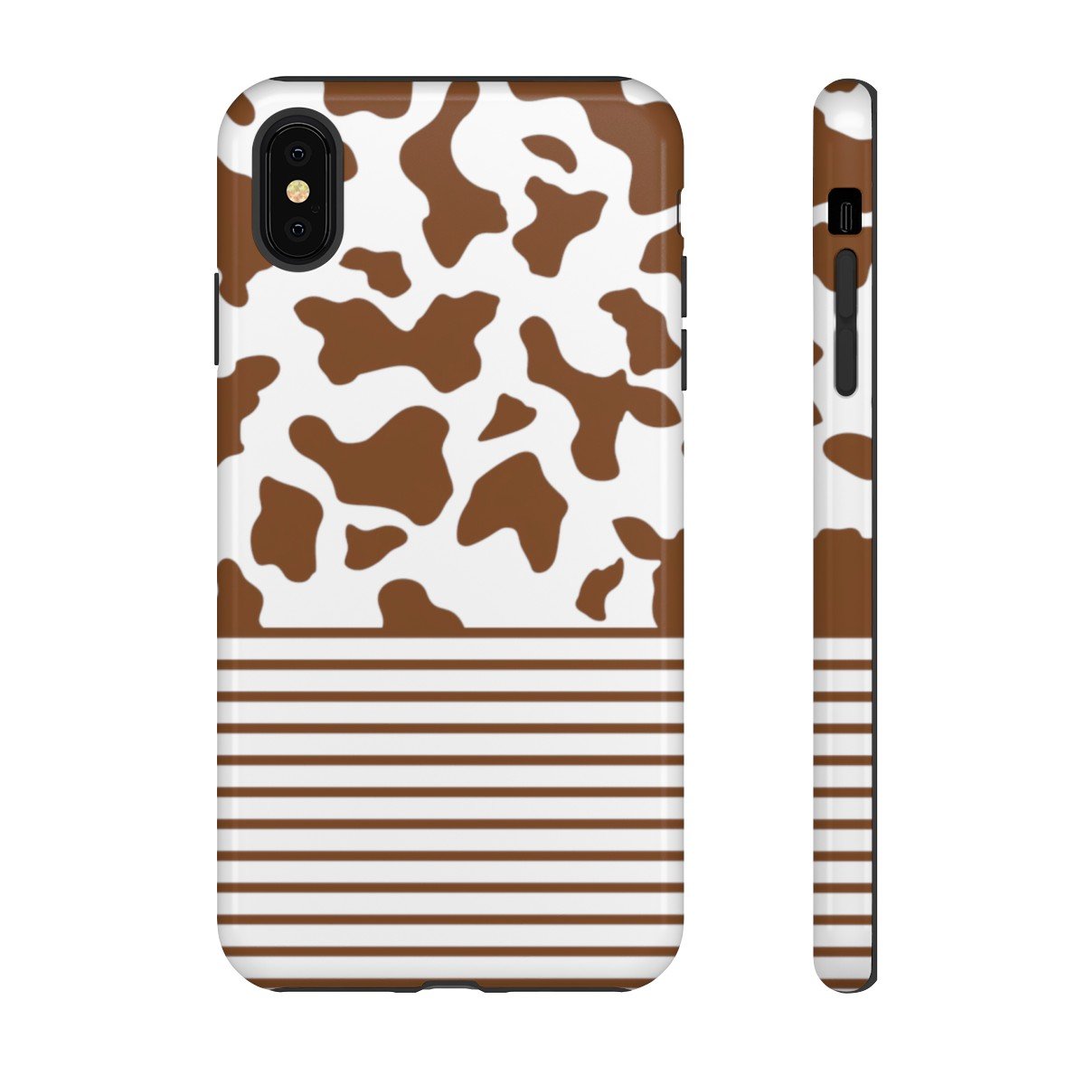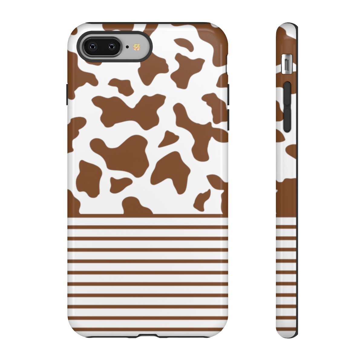 Brown and White Cow Spots and Stripes – iPhone 8 X 11 – Cell Phone – Tough Cases.