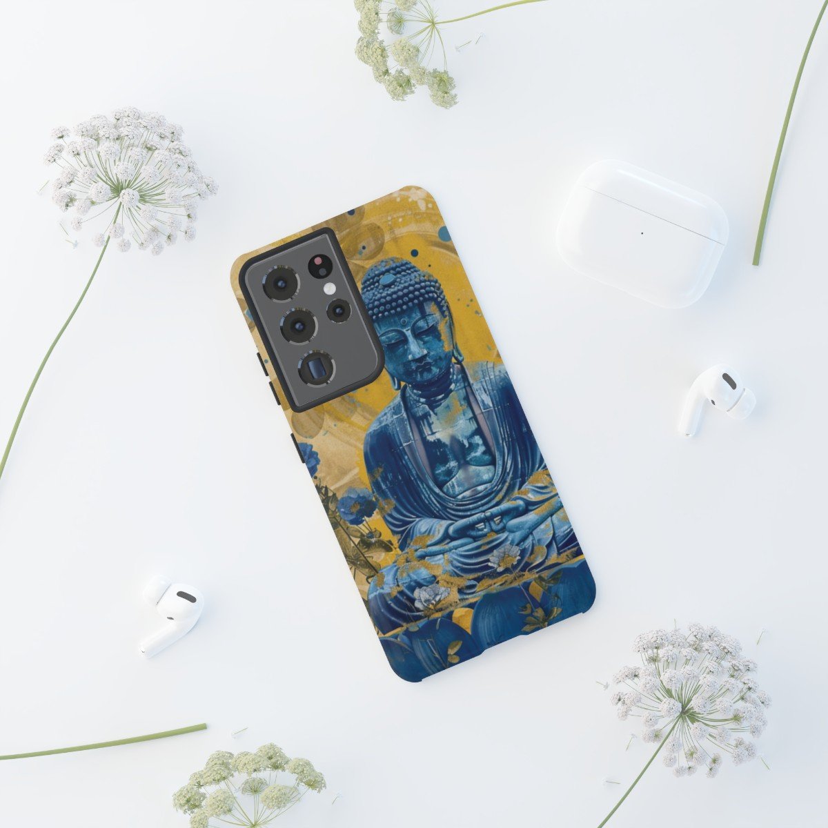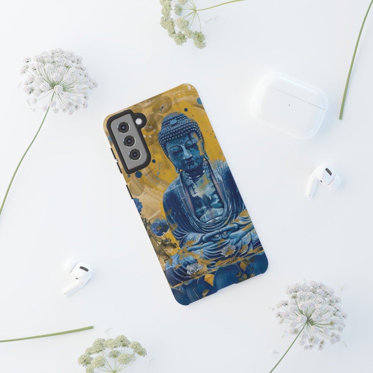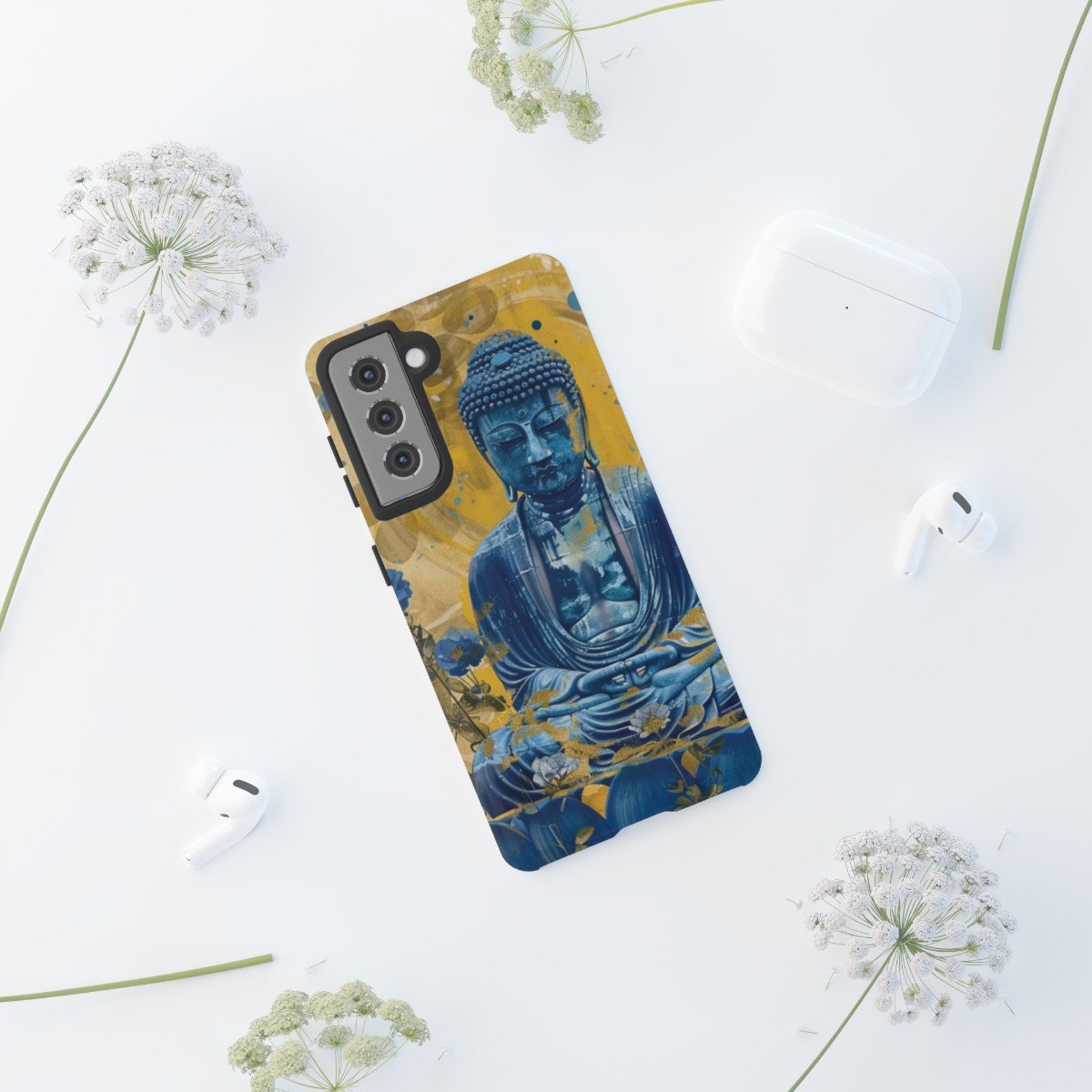 Buddha Has the Blues – Blues and Golds – Samsung Galaxy S10 S20 S21 – Cell Phone – Tough Cases.