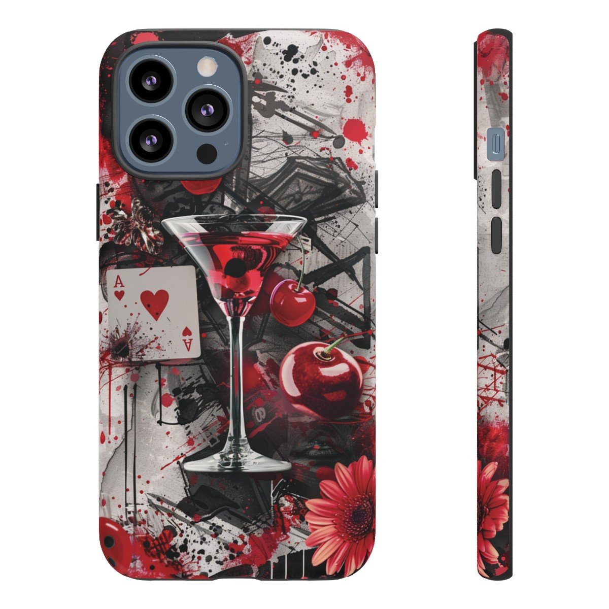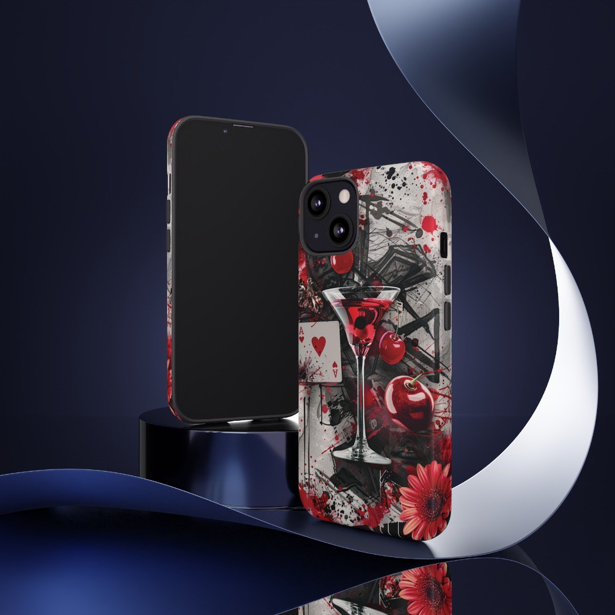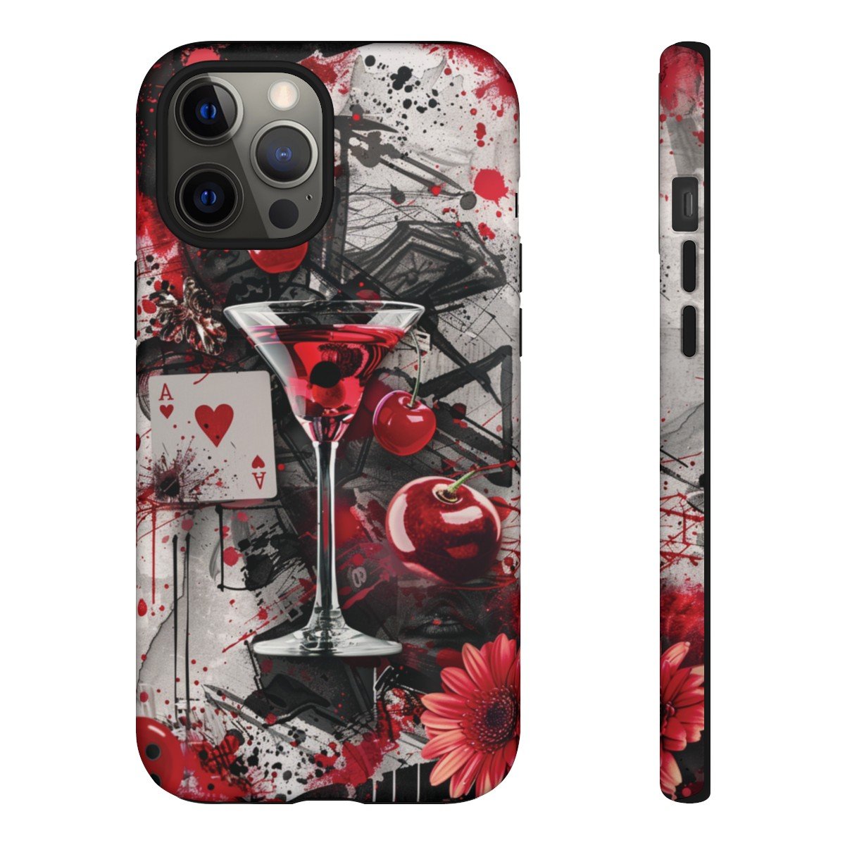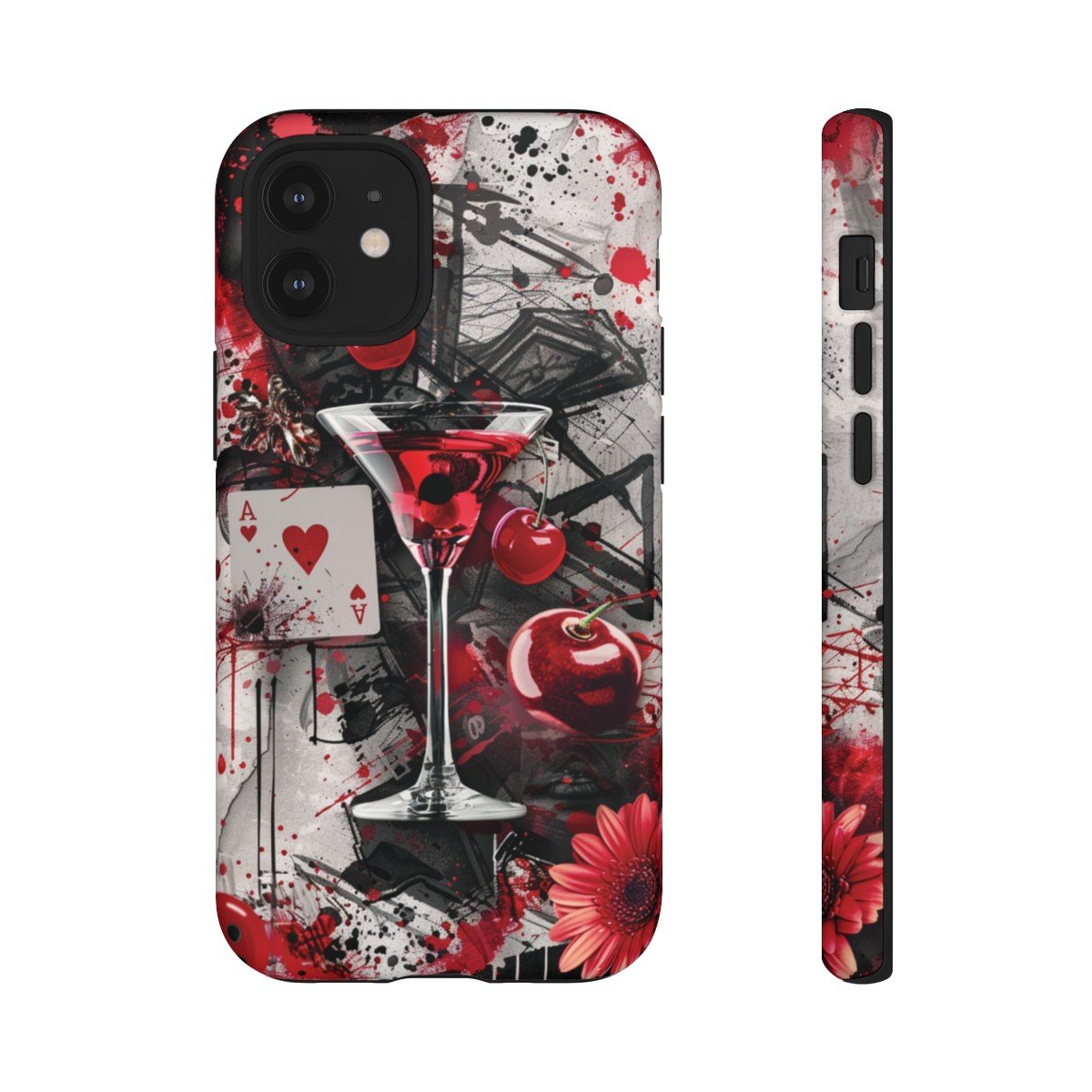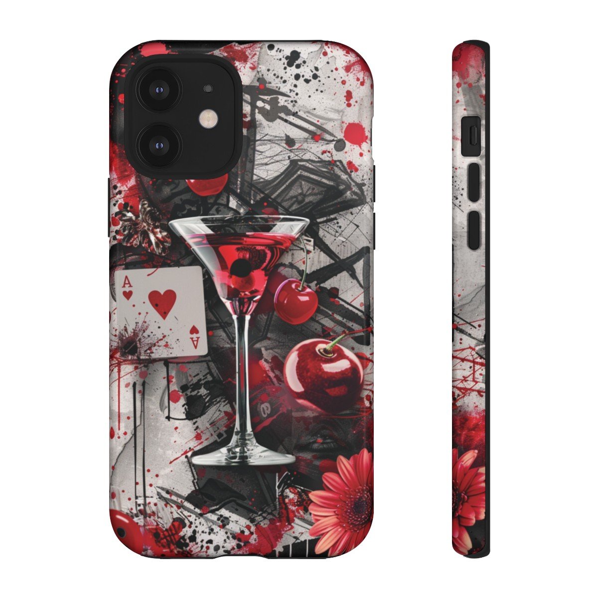 Cherry Martini Collage – Red, White, Black – iPhone 12 13 – Cell Phone – Tough Cases.