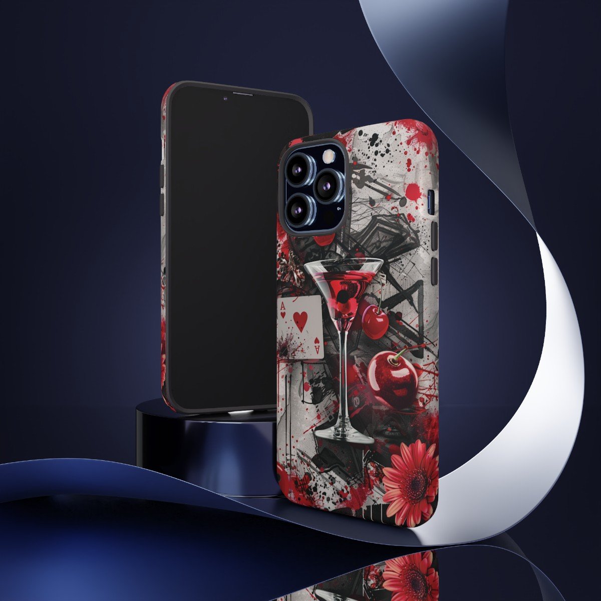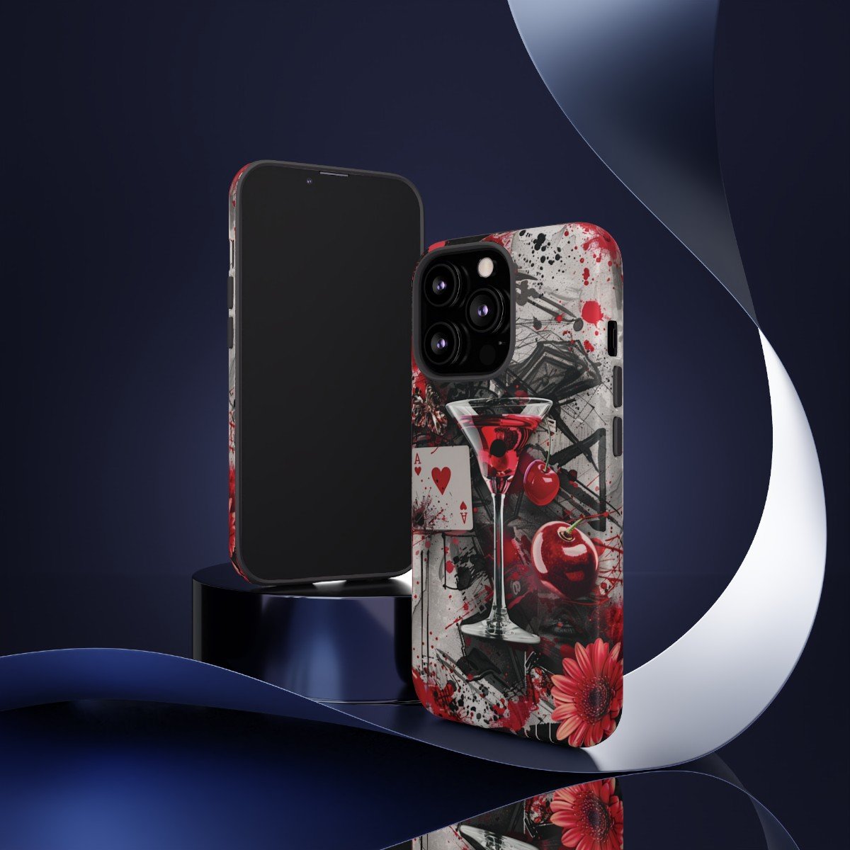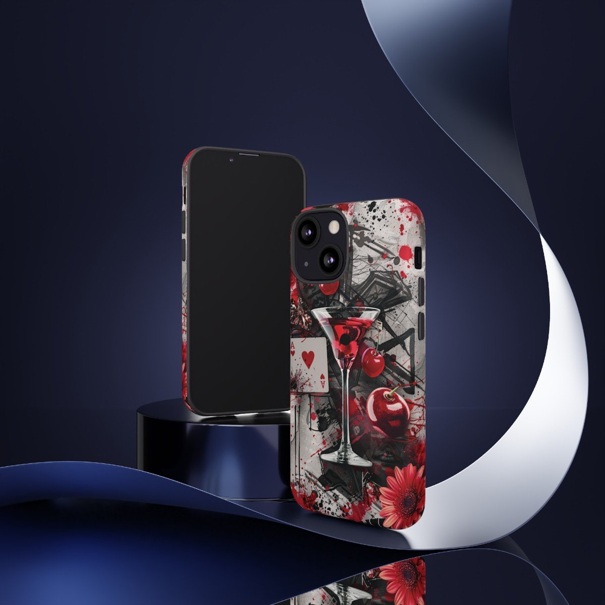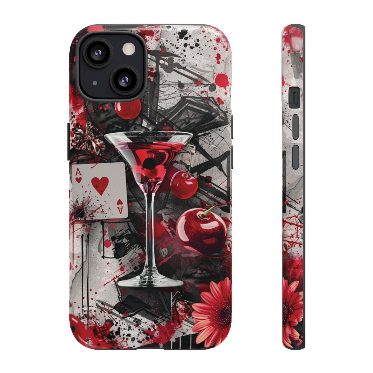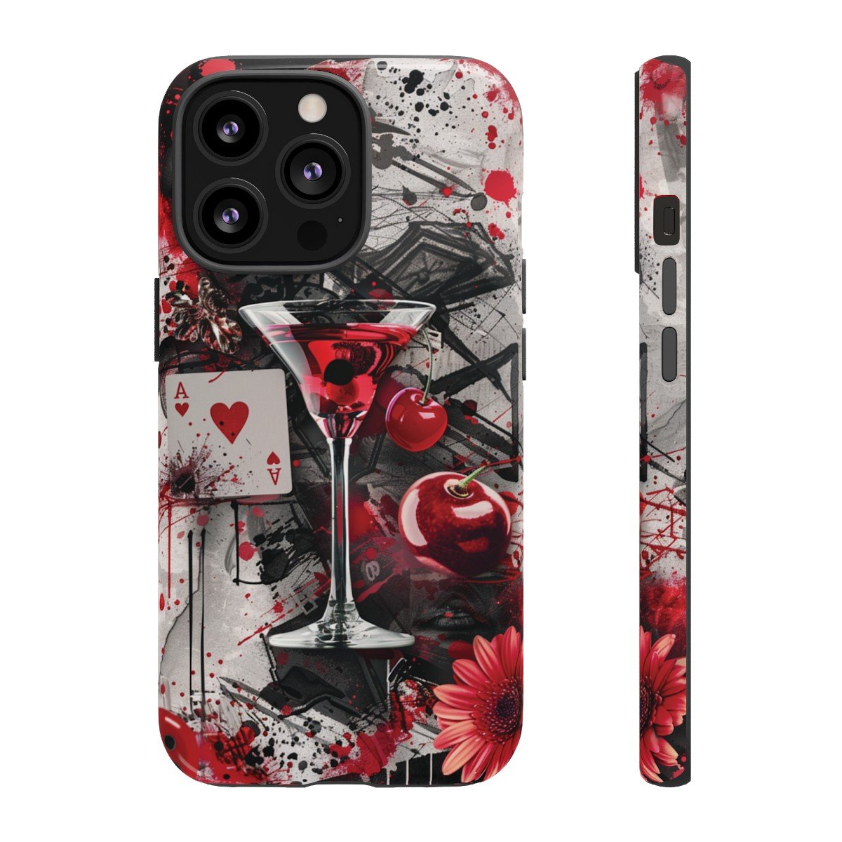 Cherry Martini Collage – Red, White, Black – iPhone 12 13 – Cell Phone – Tough Cases.