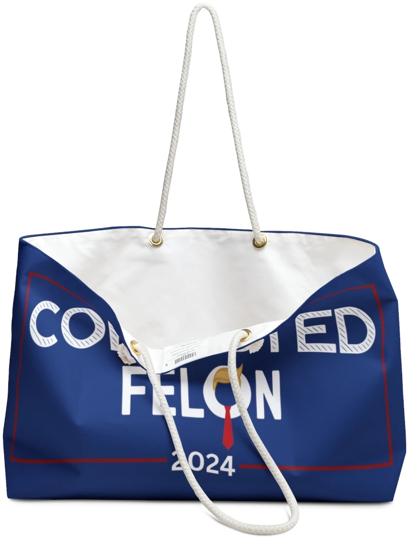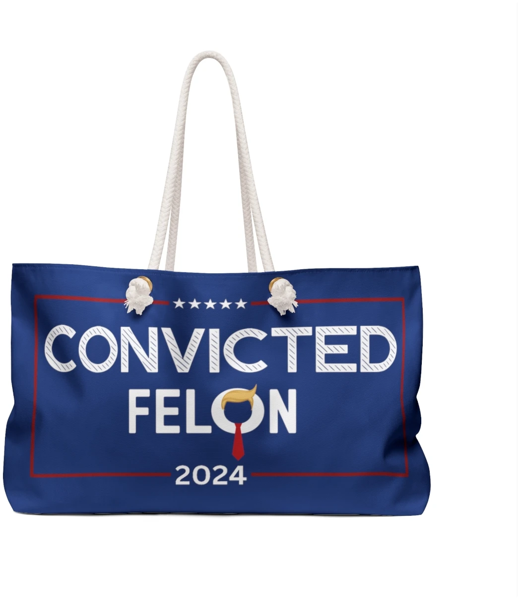 Convicted Felon – Trump 2024 – Stars – Iconic Hair and Tie – Weekender Bag – Tote.
