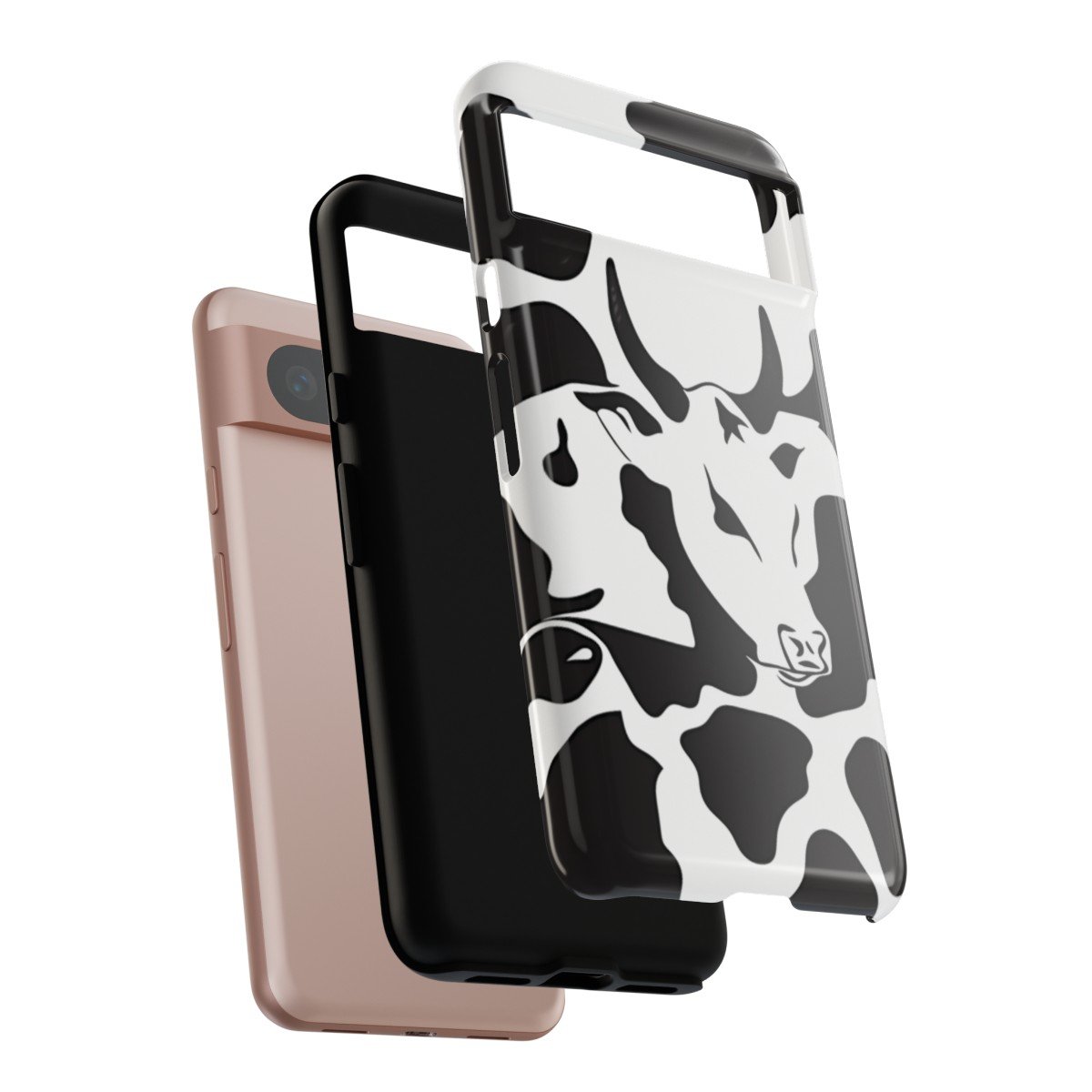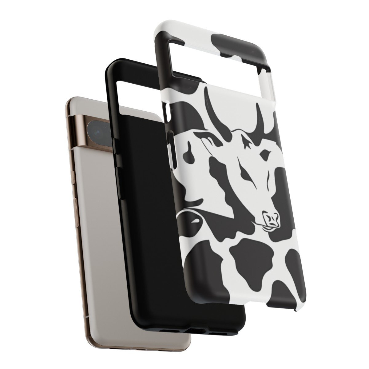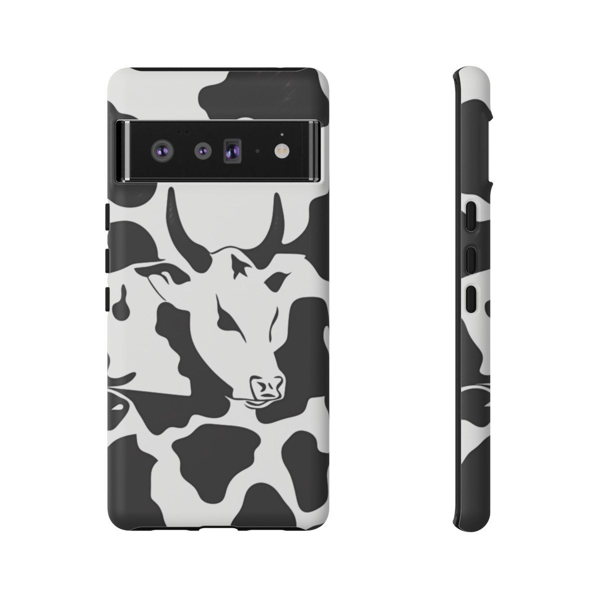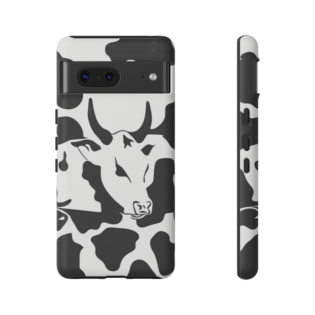 Distressed Black and White Cow Spots Pattern – Google Pixel 5 6 7 8 – Cell Phone – Tough Cases.