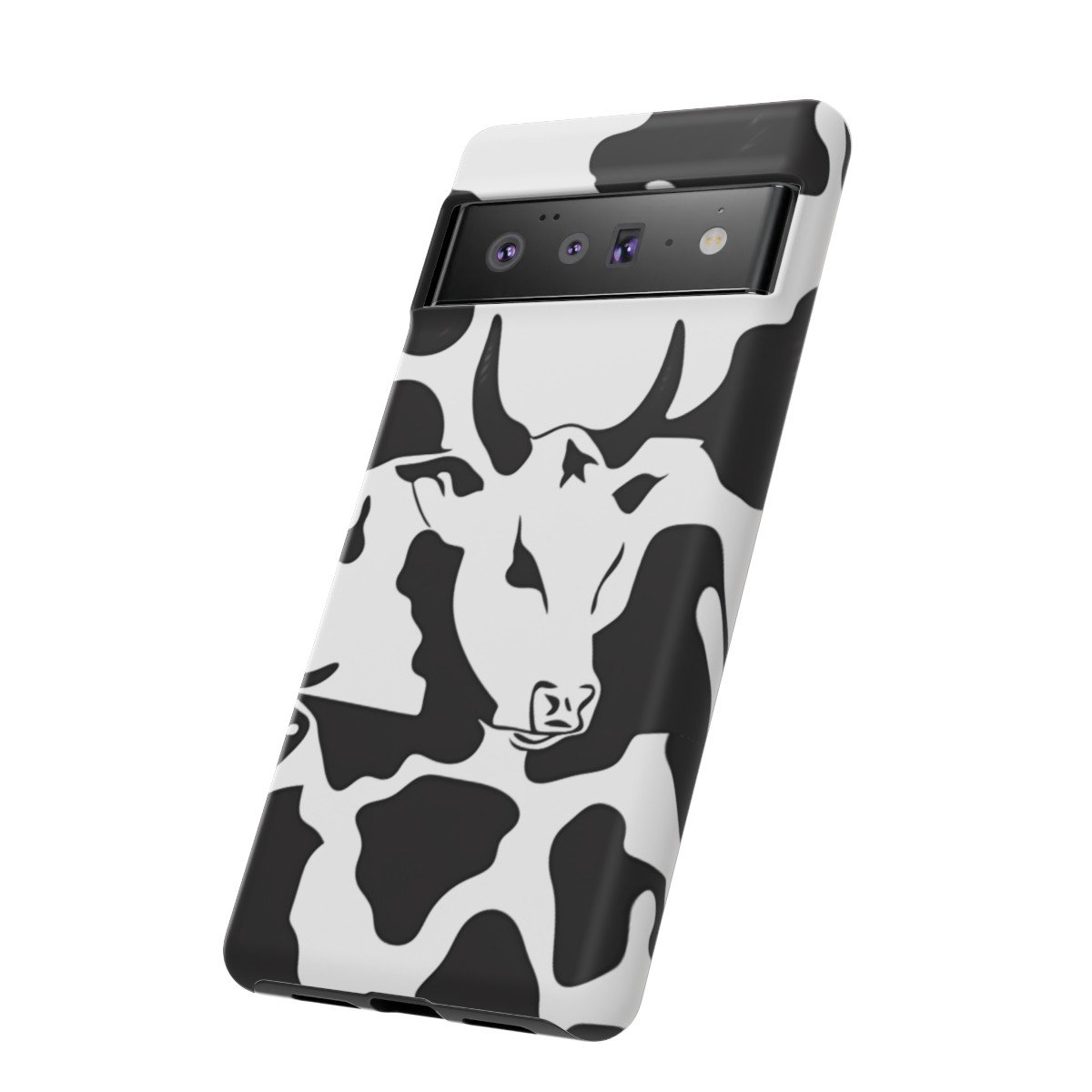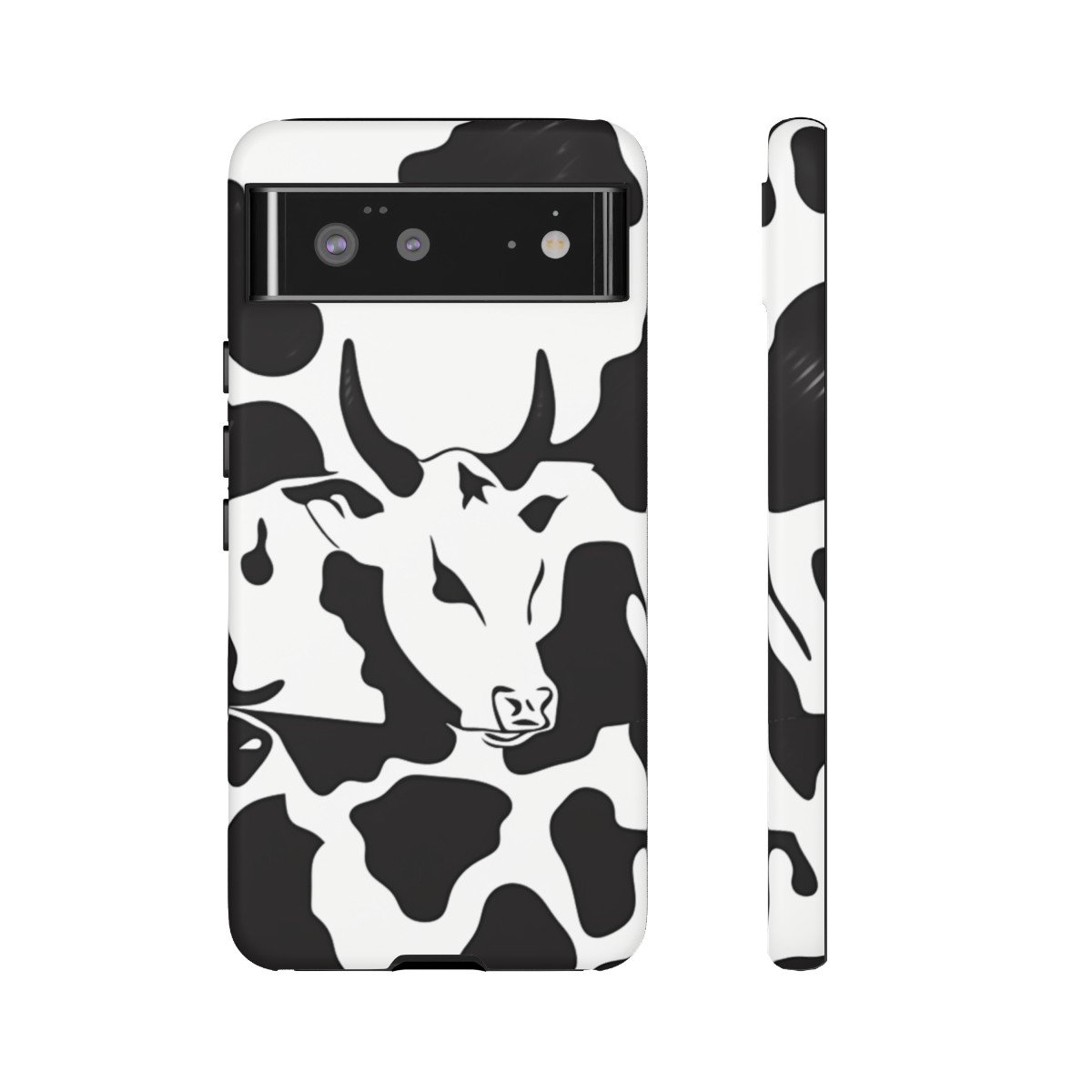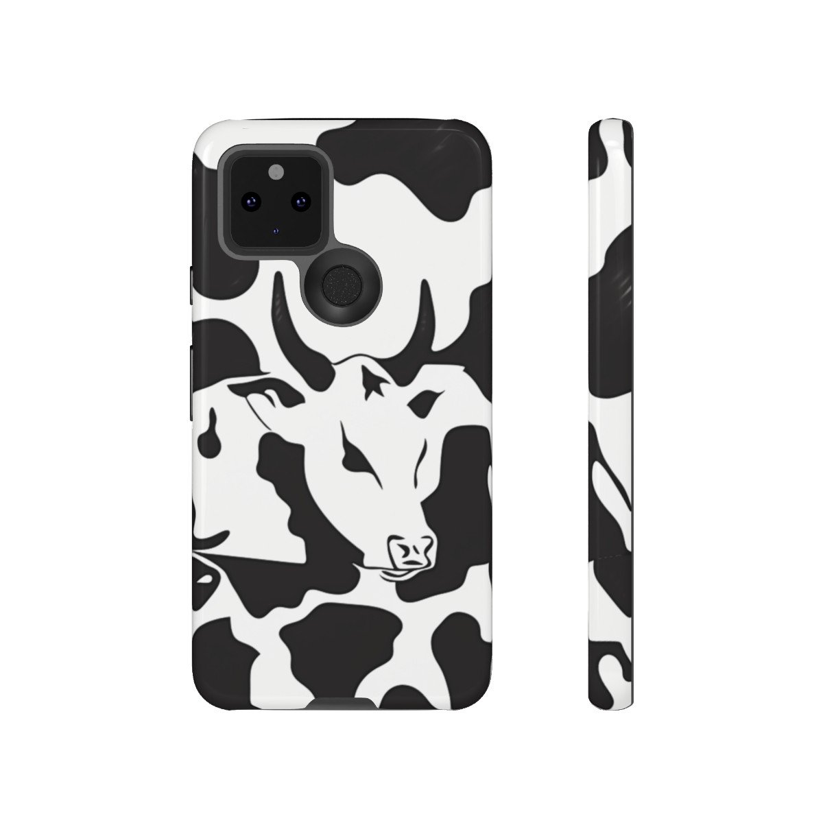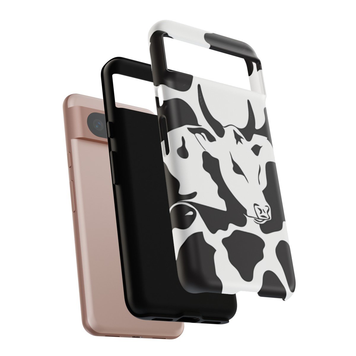 Distressed Black and White Cow Spots Pattern – Google Pixel 5 6 7 8 – Cell Phone – Tough Cases.