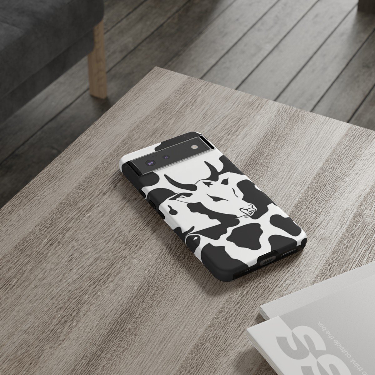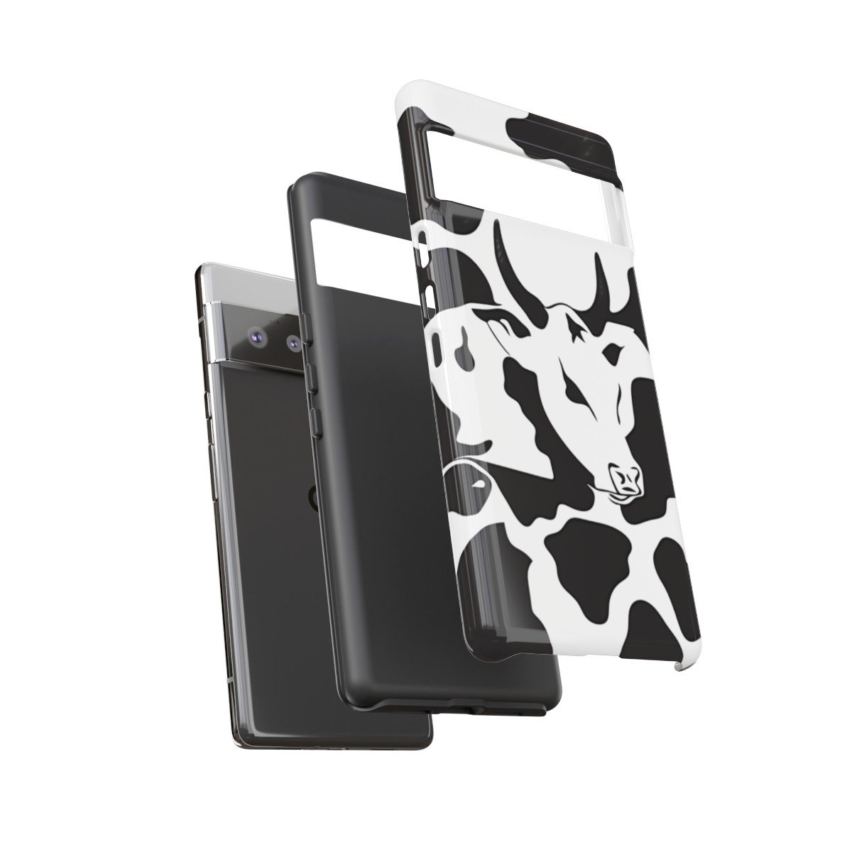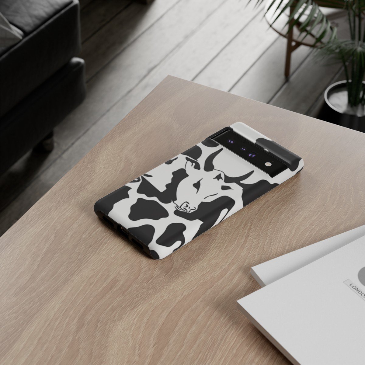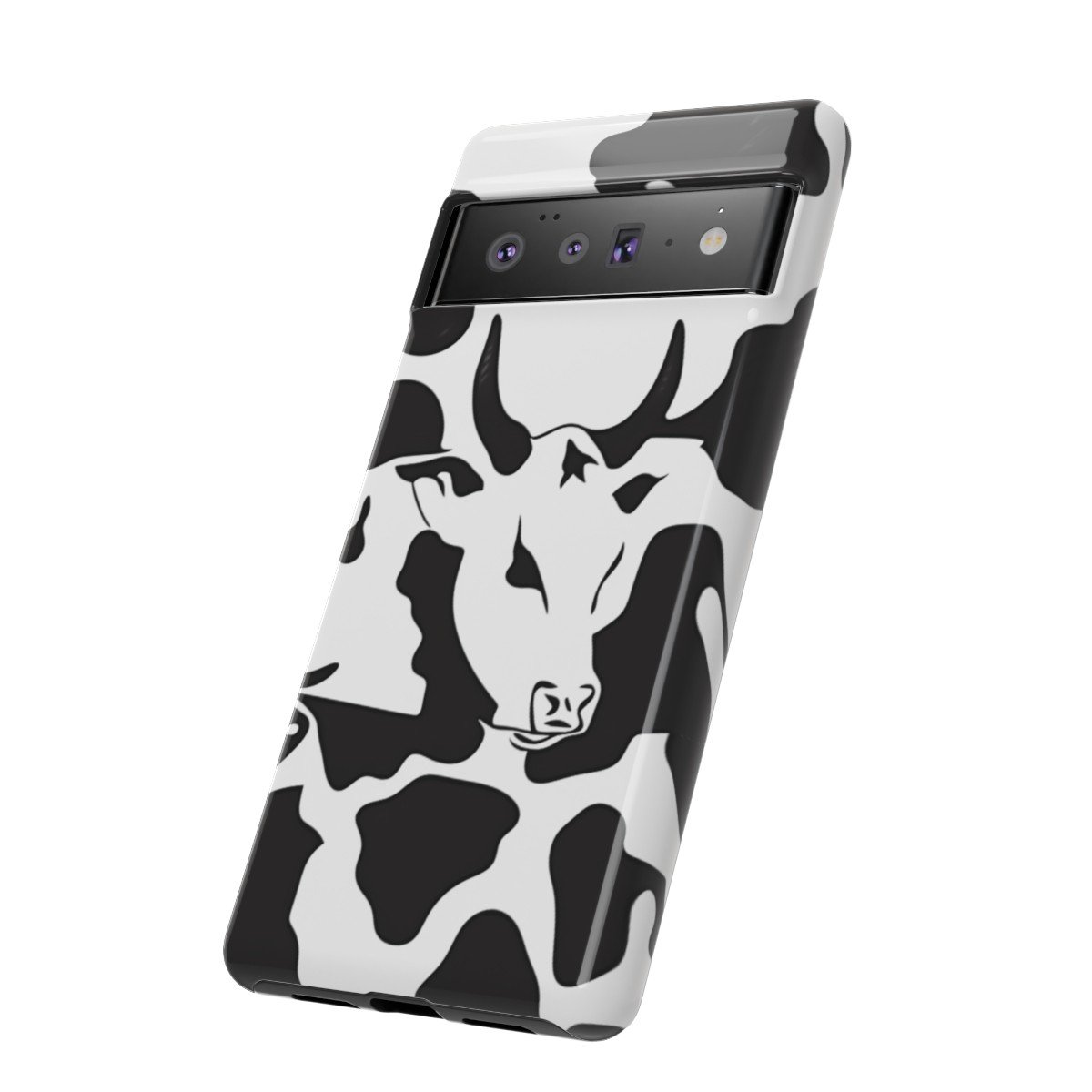 Distressed Black and White Cow Spots Pattern – Google Pixel 5 6 7 8 – Cell Phone – Tough Cases.