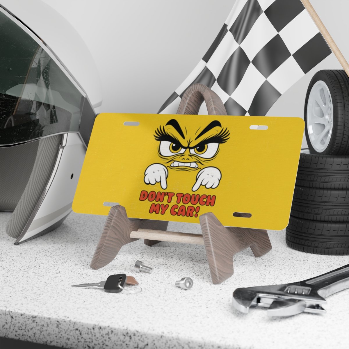 Don’t Touch My Car! – Yellow – Cartoon Angry Face – Vehicle License or Vanity Plate.