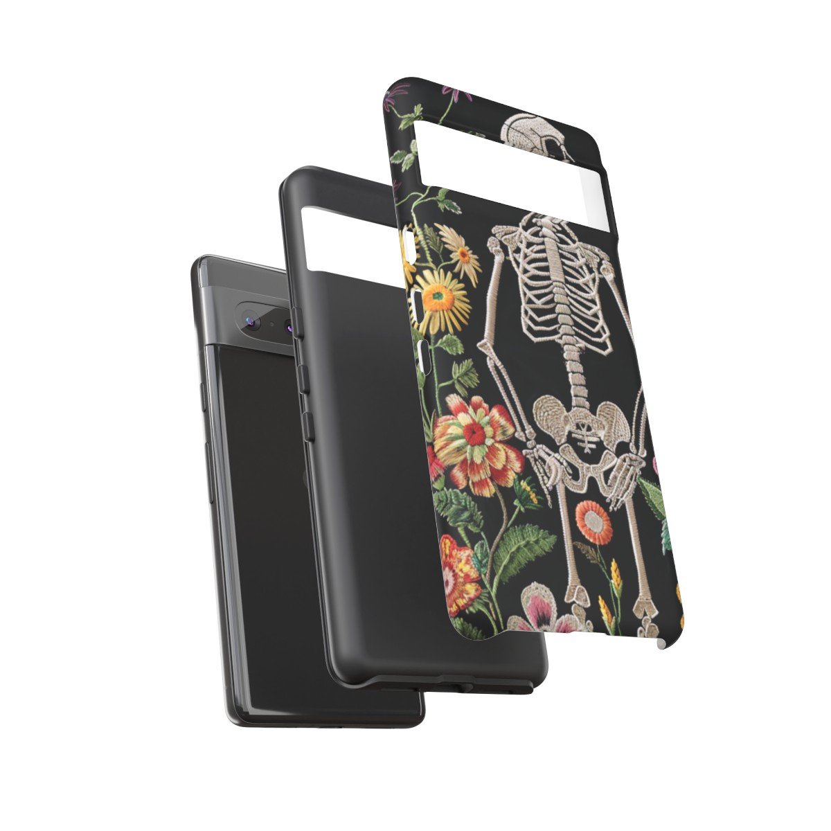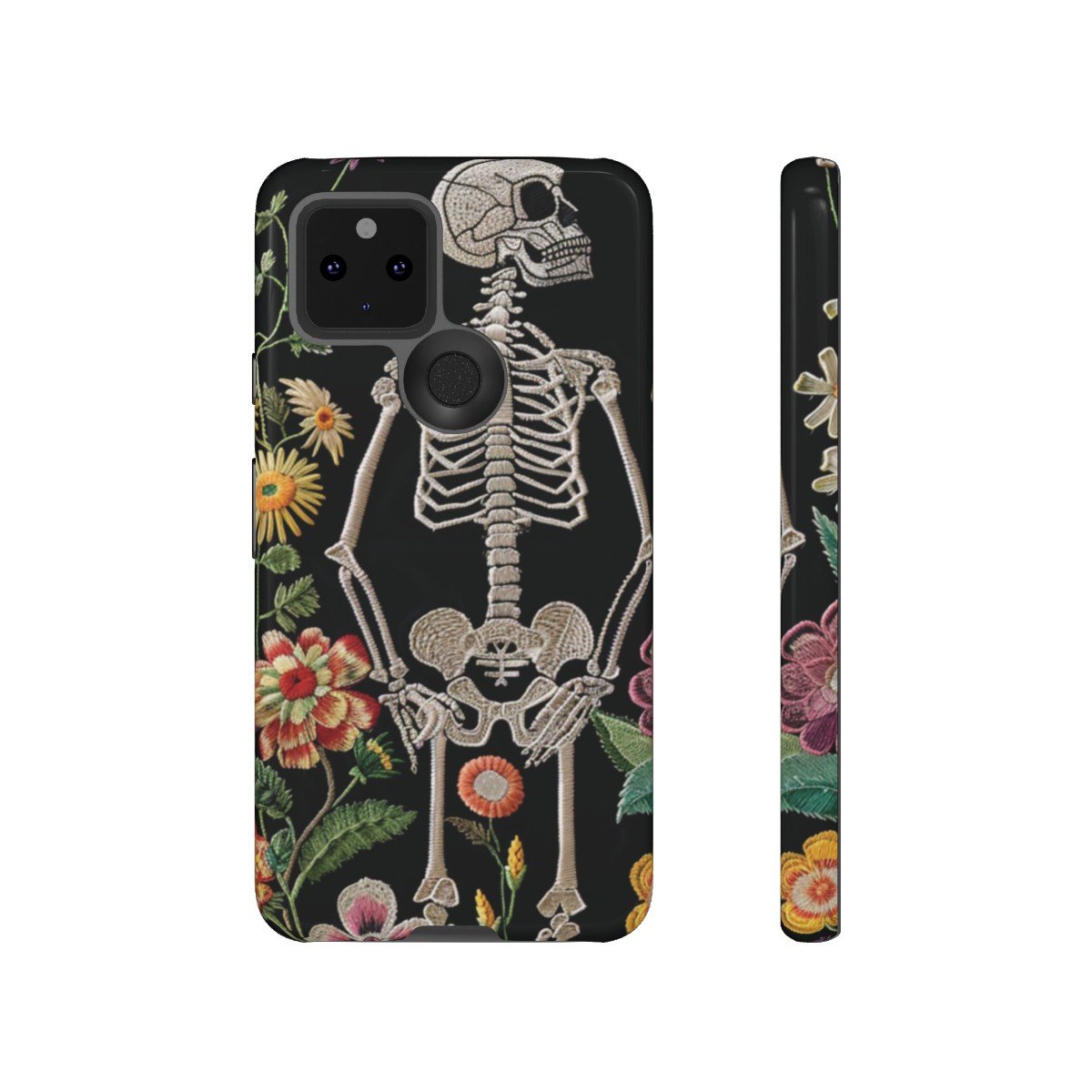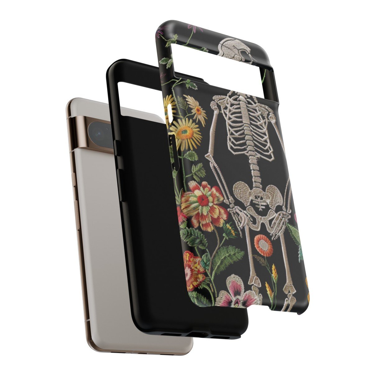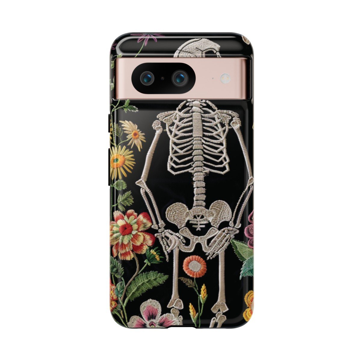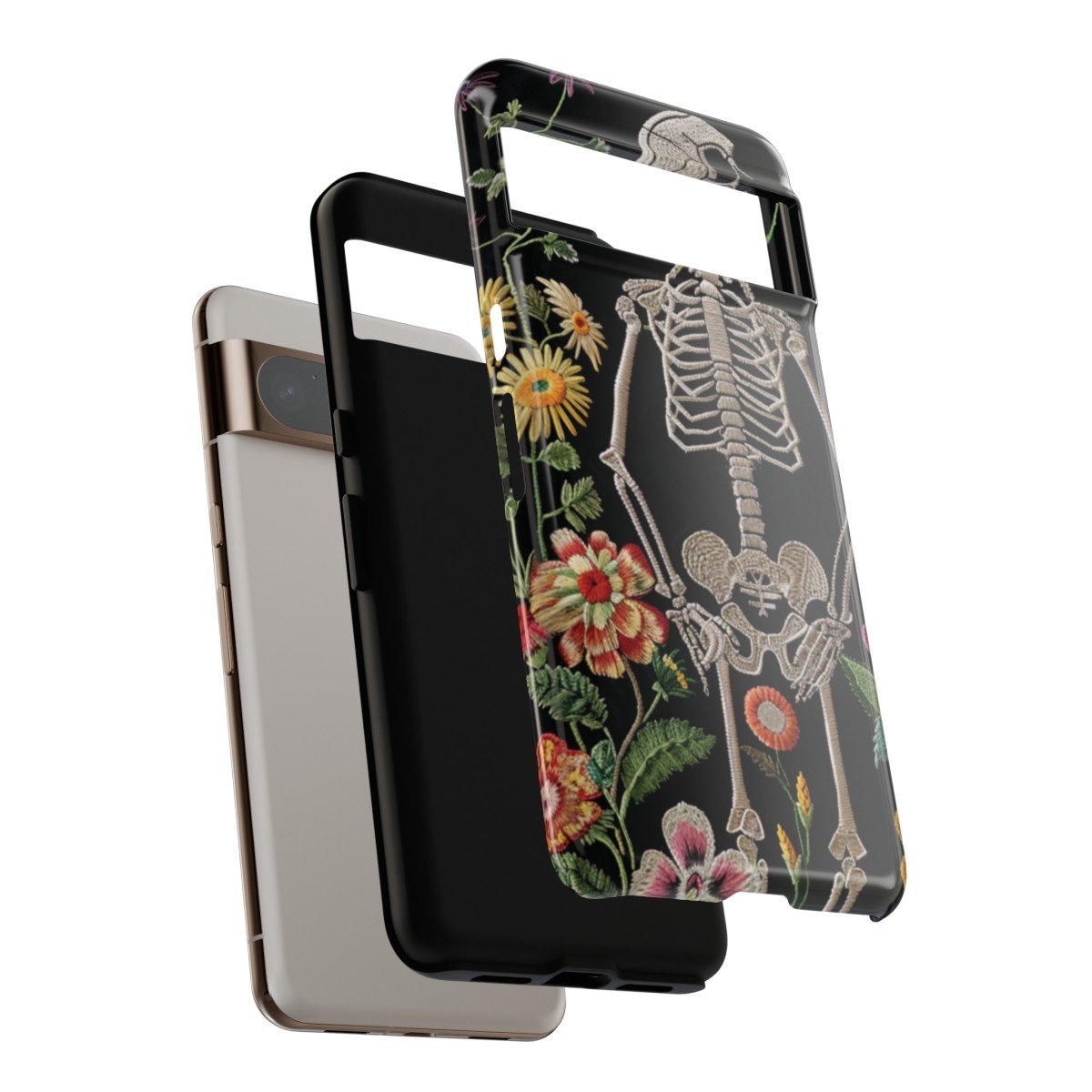 Embroidered Look Skeleton in the Garden – Multi-Colored on Black – Google Pixel 5 6 7 8 – Cell Phone – Tough Cases.