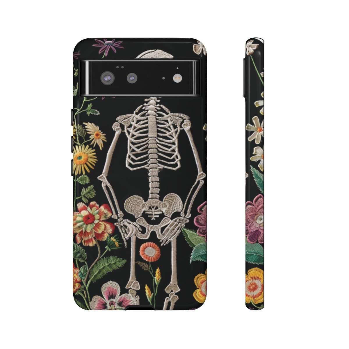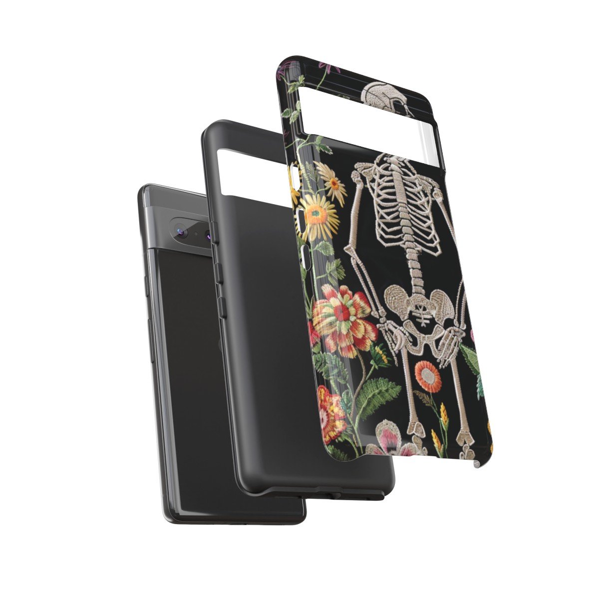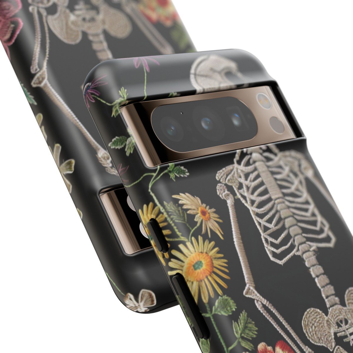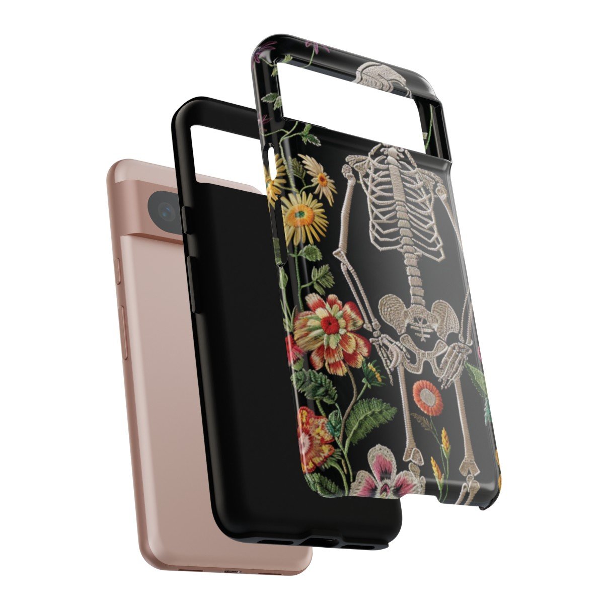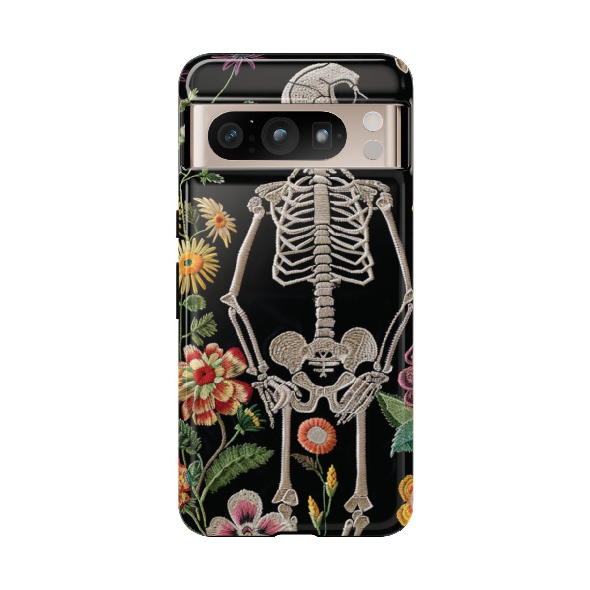 Embroidered Look Skeleton in the Garden – Multi-Colored on Black – Google Pixel 5 6 7 8 – Cell Phone – Tough Cases.