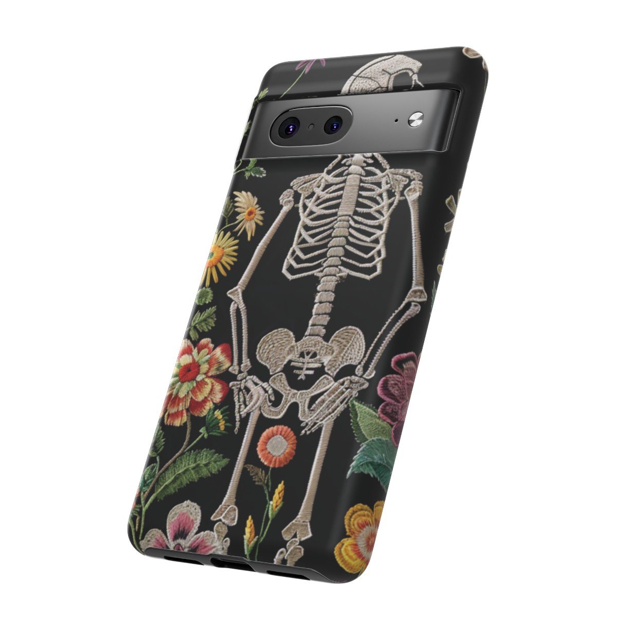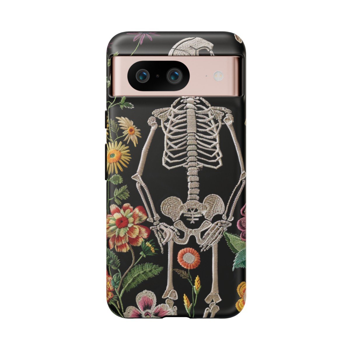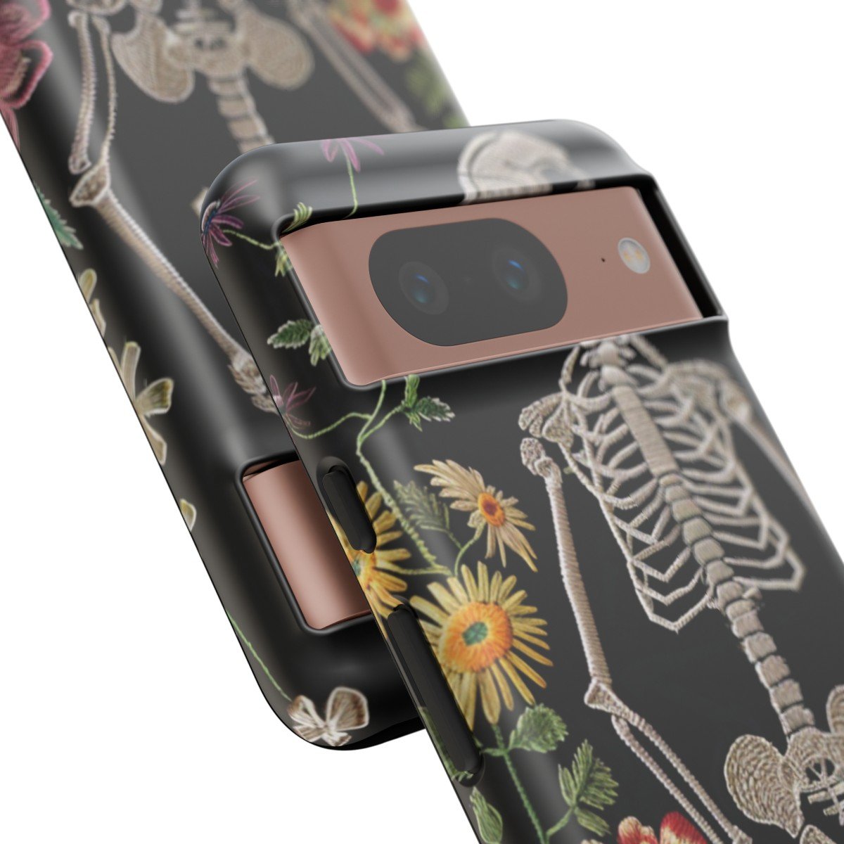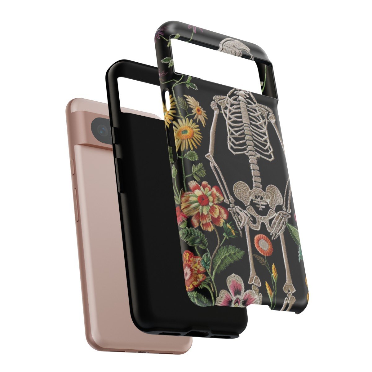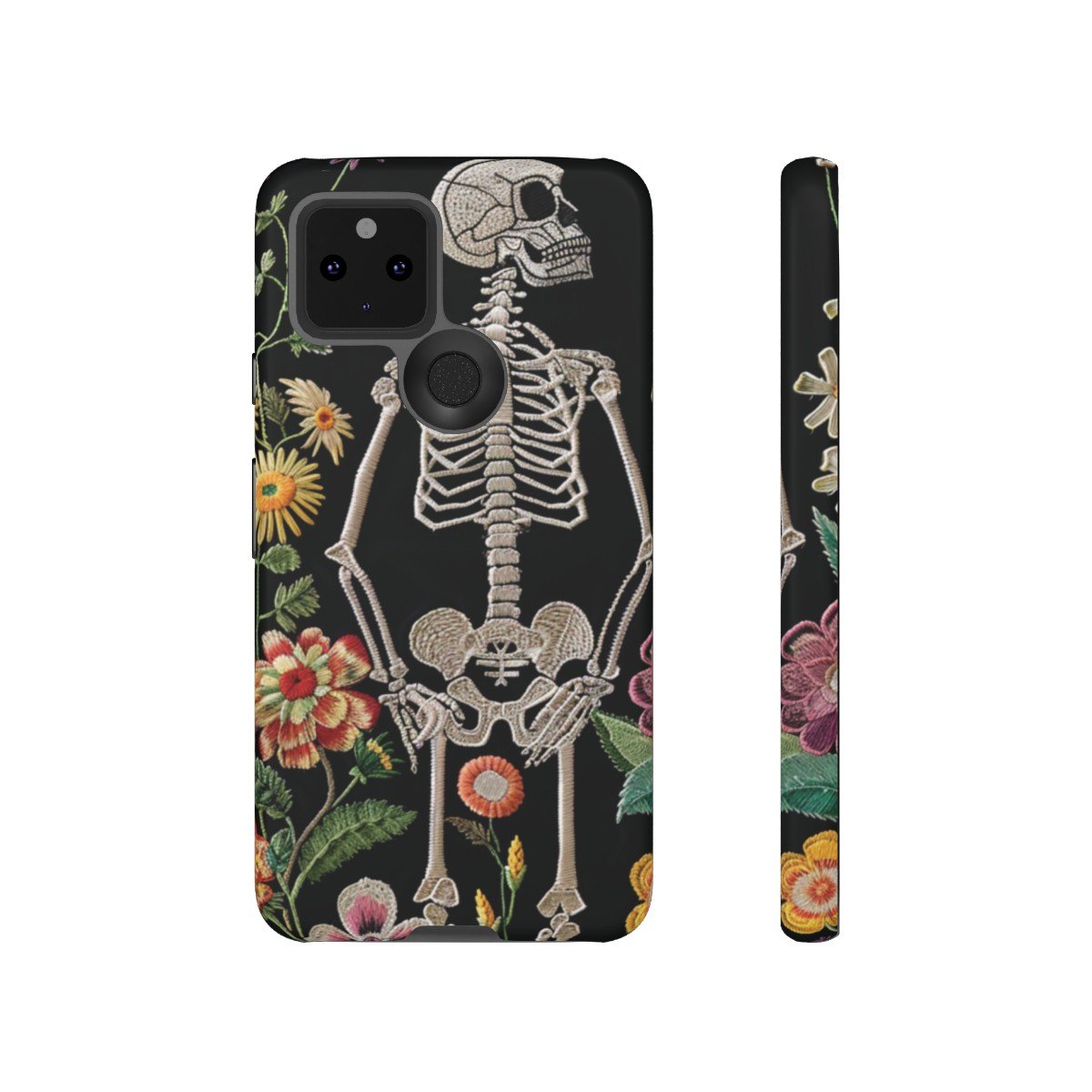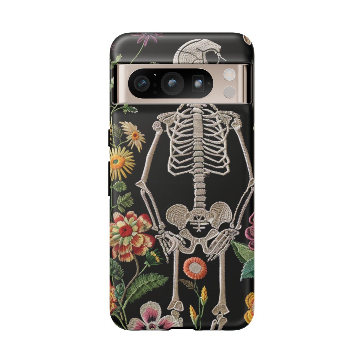 Embroidered Look Skeleton in the Garden – Multi-Colored on Black – Google Pixel 5 6 7 8 – Cell Phone – Tough Cases.