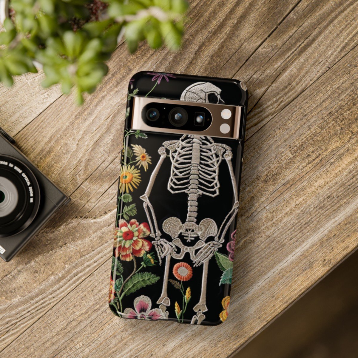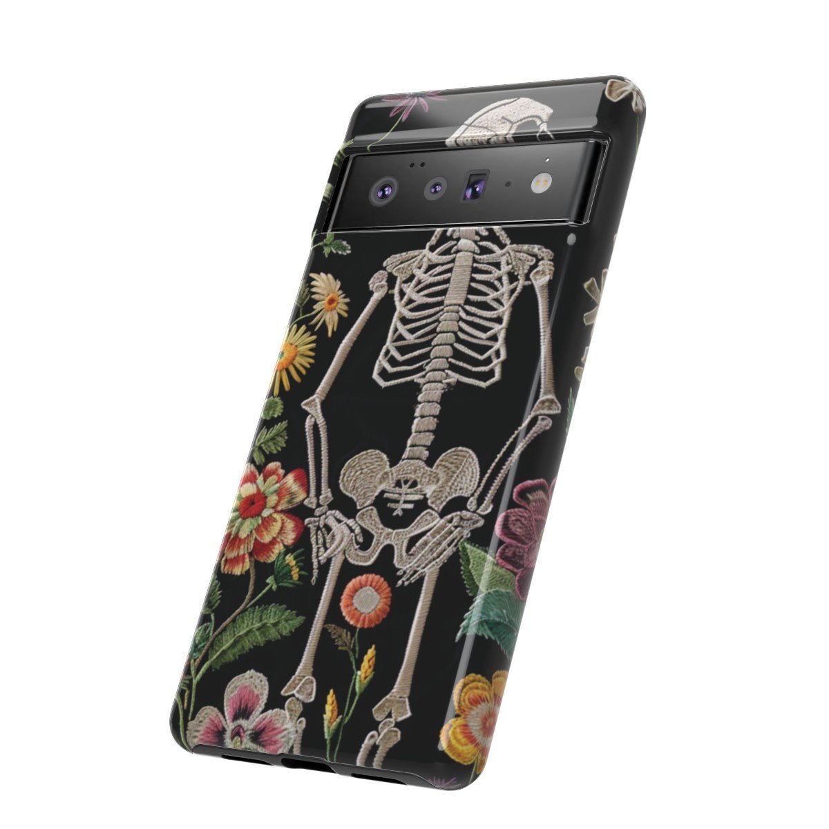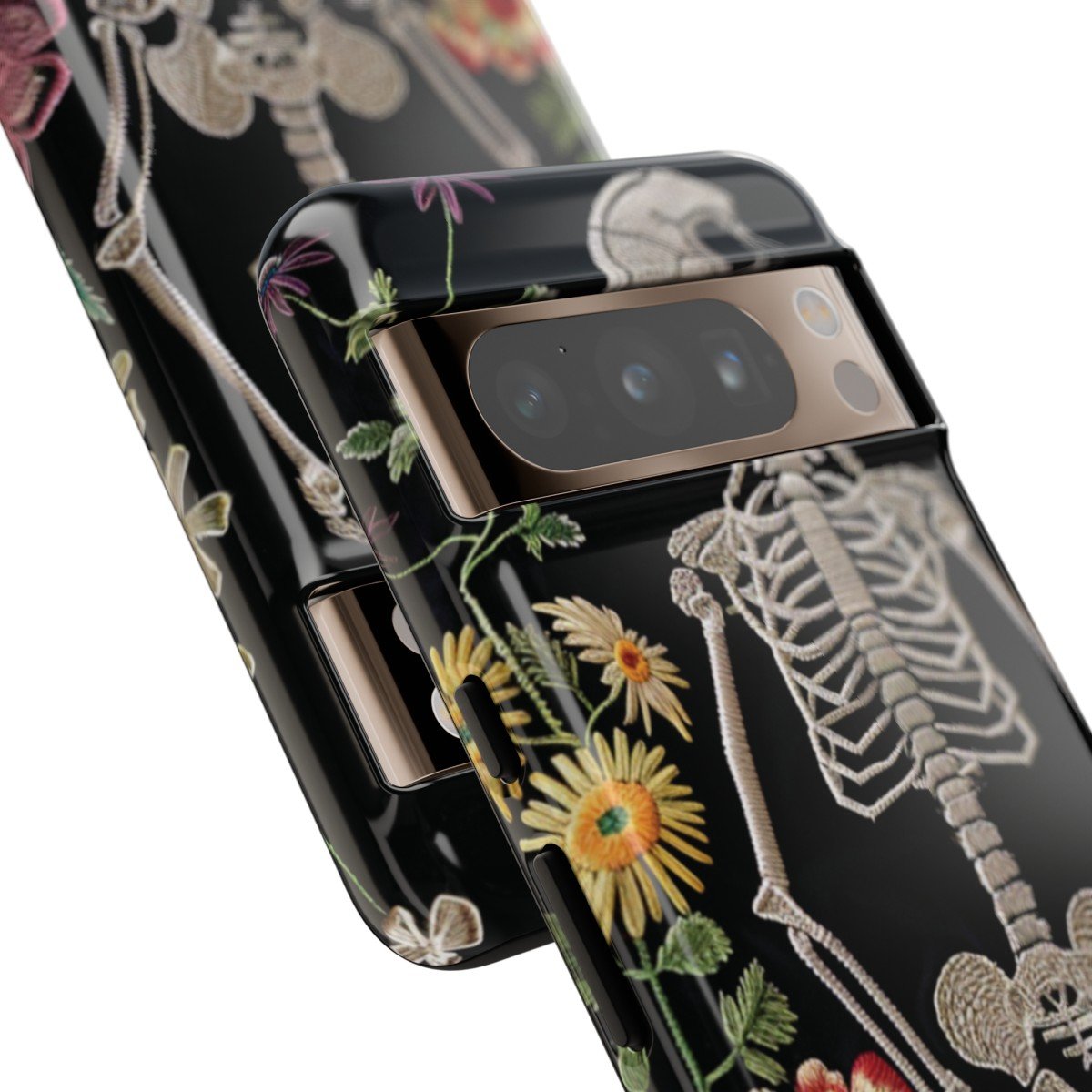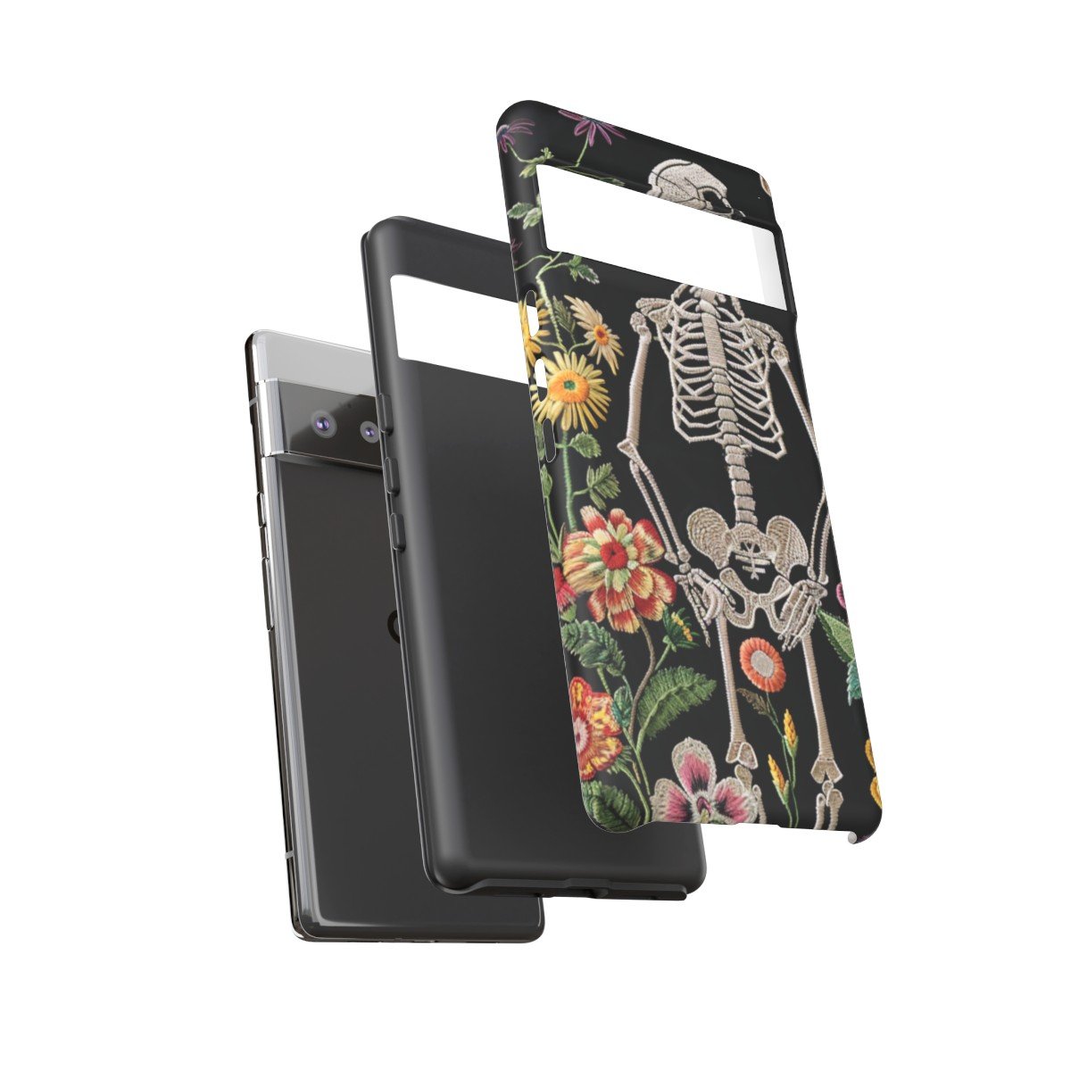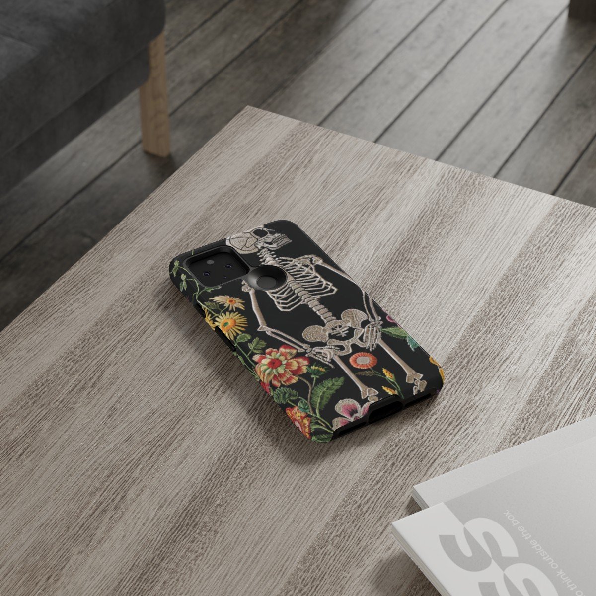 Embroidered Look Skeleton in the Garden – Multi-Colored on Black – Google Pixel 5 6 7 8 – Cell Phone – Tough Cases.