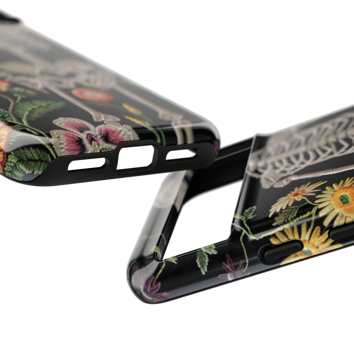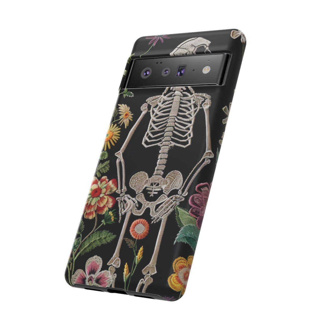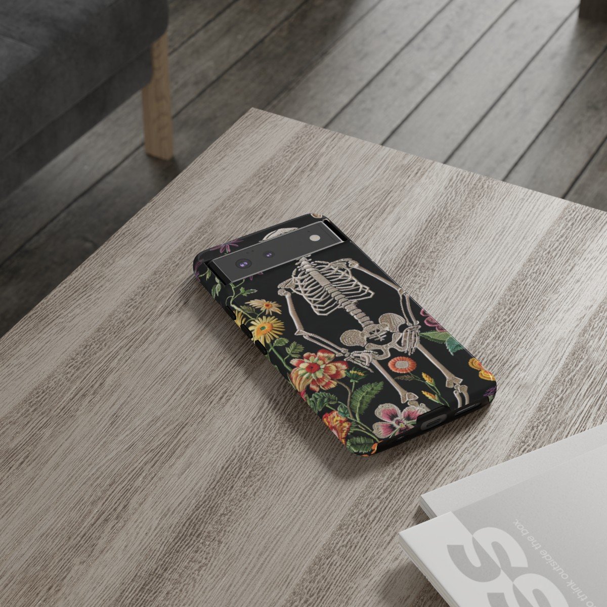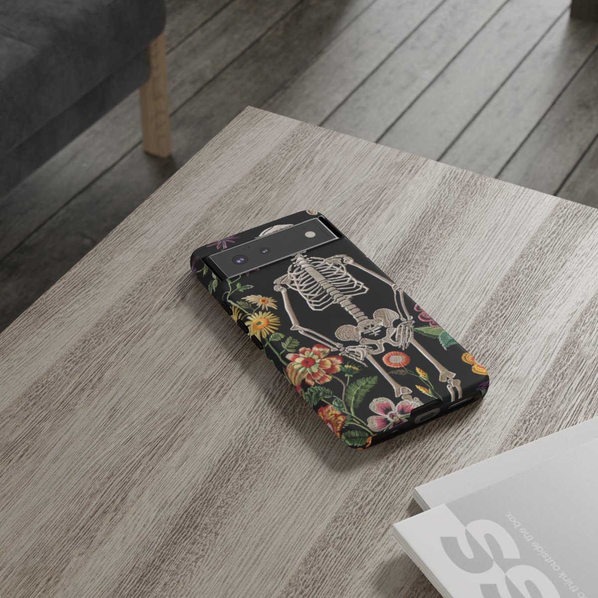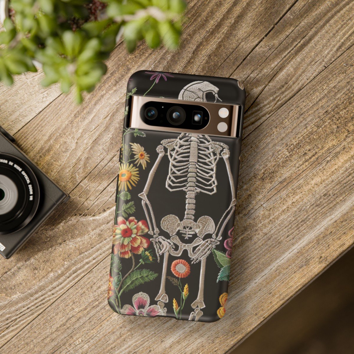 Embroidered Look Skeleton in the Garden – Multi-Colored on Black – Google Pixel 5 6 7 8 – Cell Phone – Tough Cases.