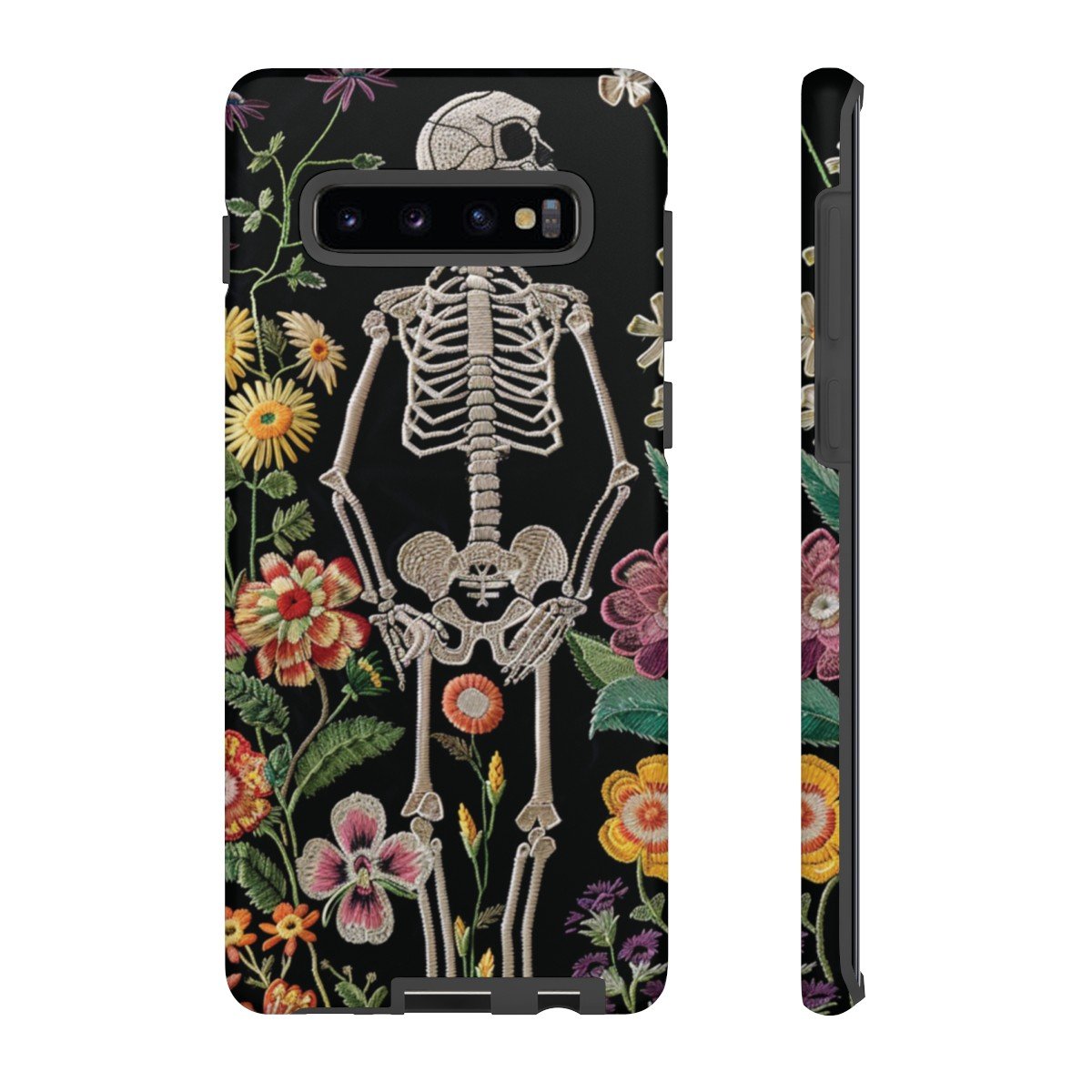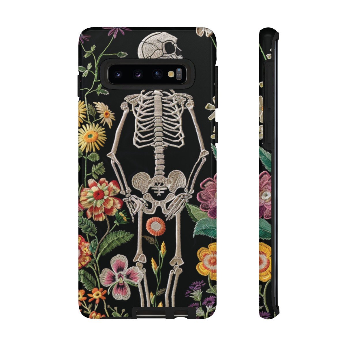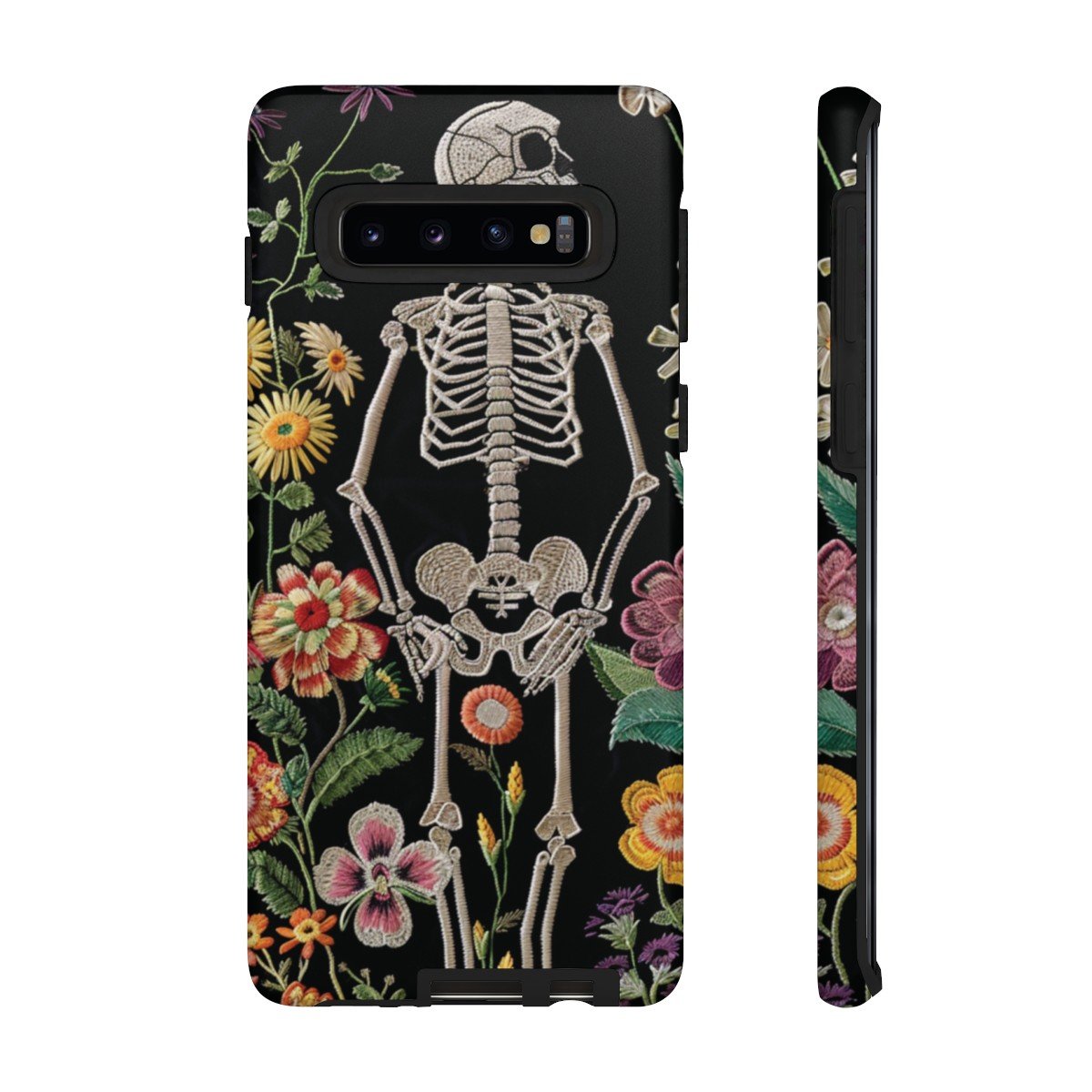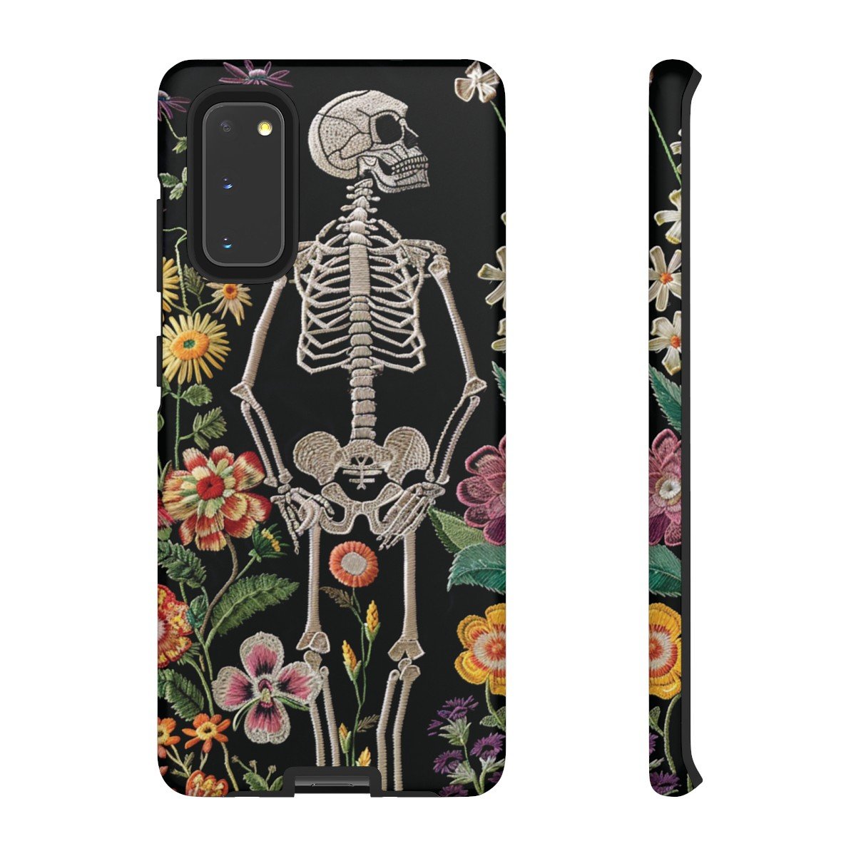 Embroidered Look Skeleton in the Garden – Multi-Colored on Black – Samsung Galaxy S10 S20 S21 – Cell Phone – Tough Cases.