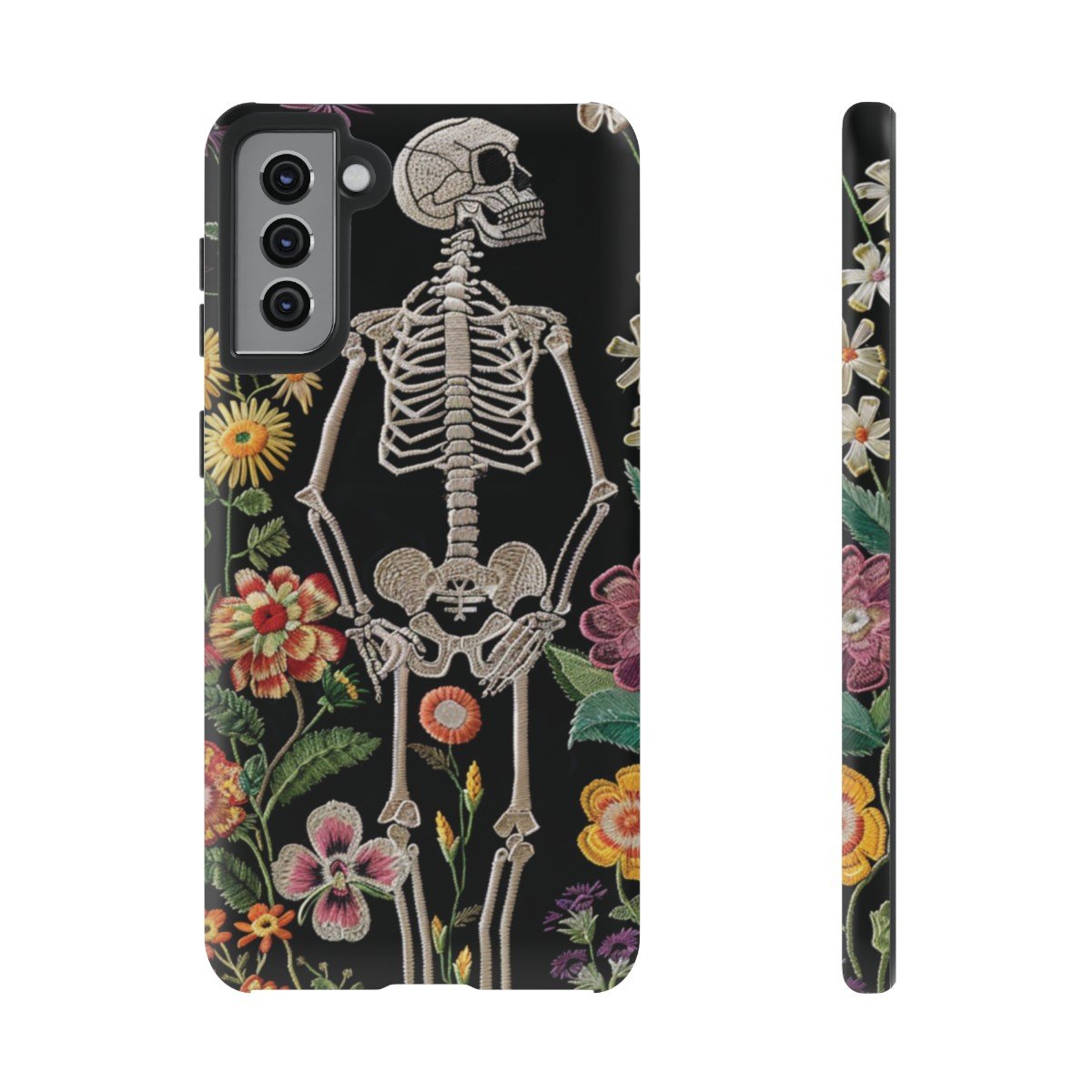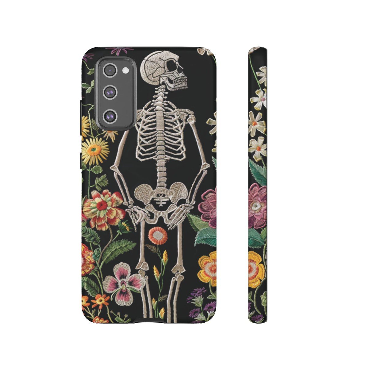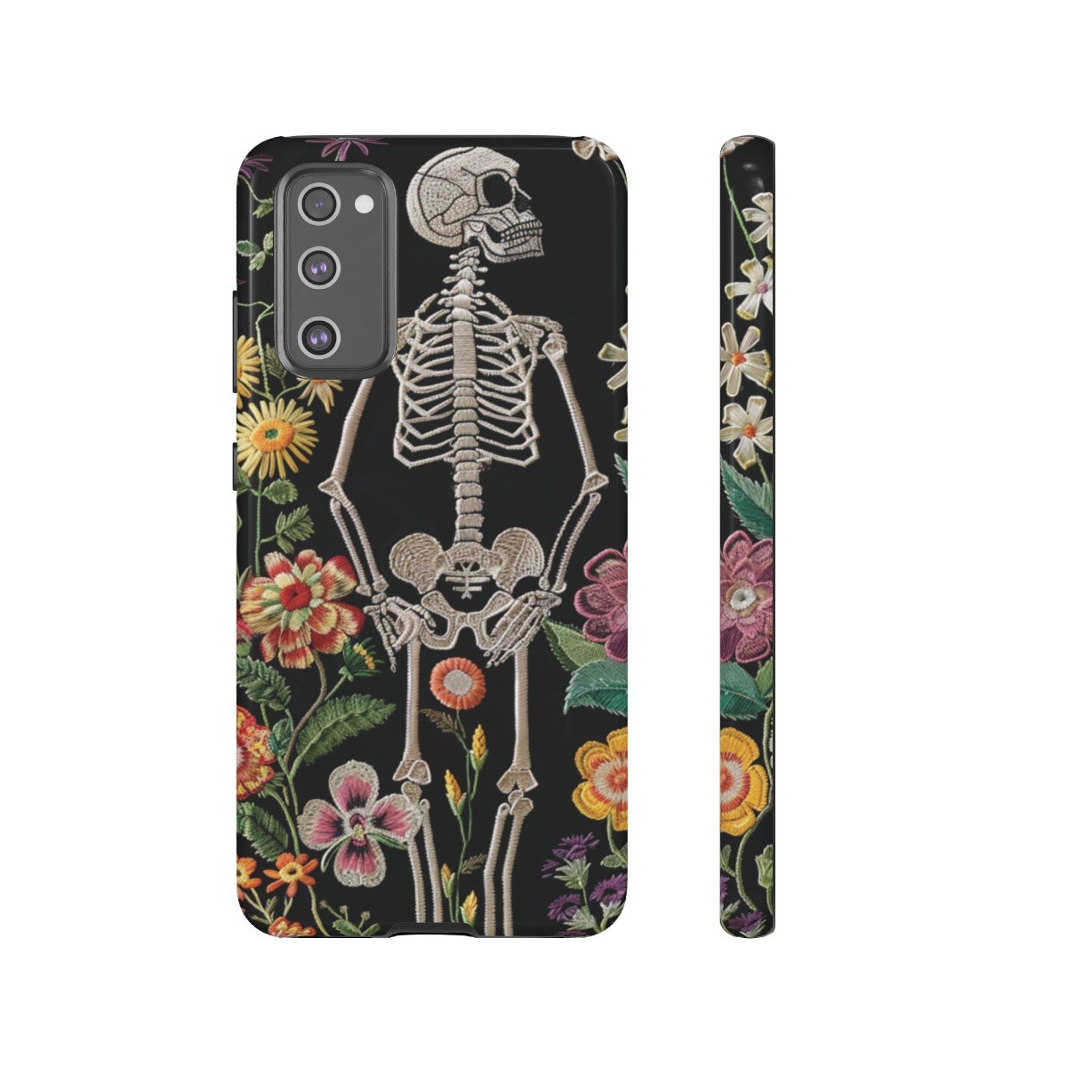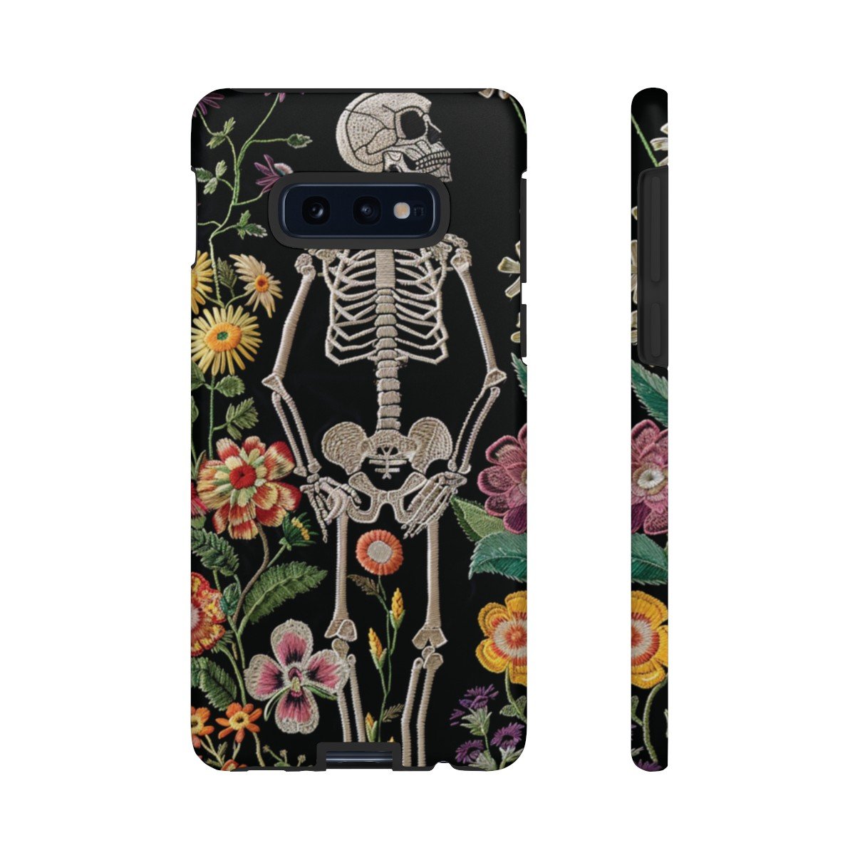 Embroidered Look Skeleton in the Garden – Multi-Colored on Black – Samsung Galaxy S10 S20 S21 – Cell Phone – Tough Cases.