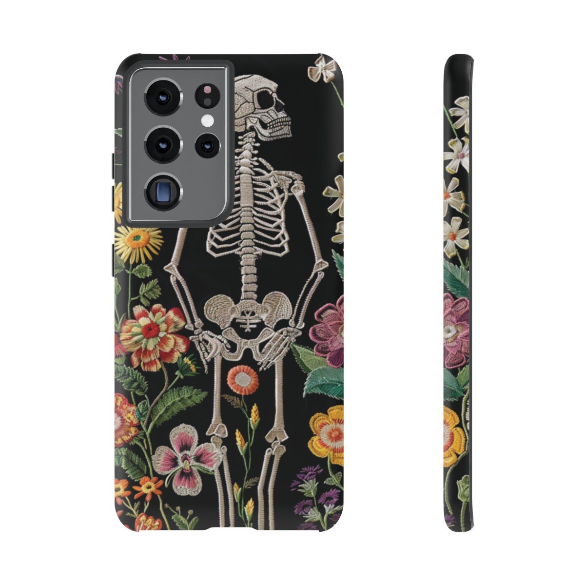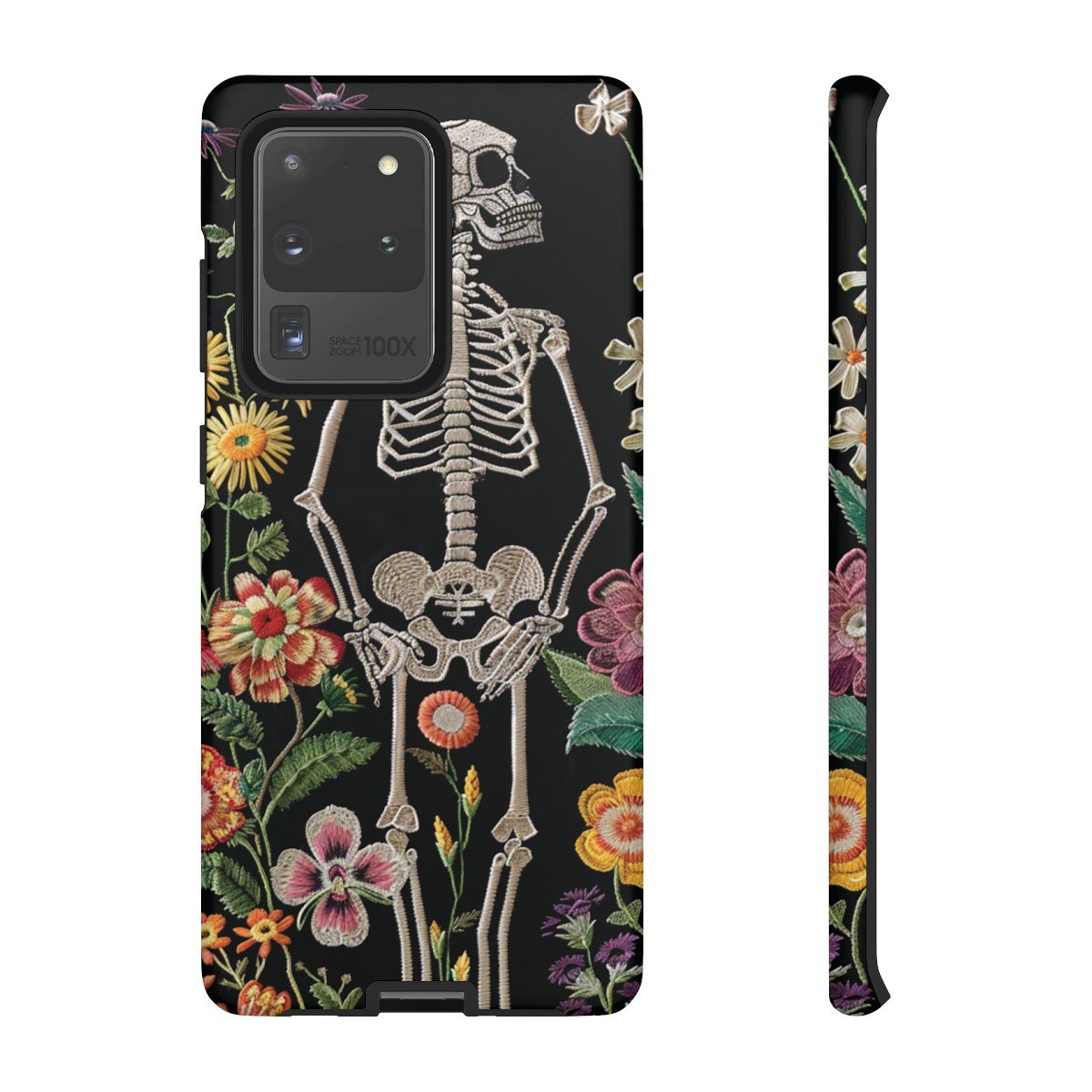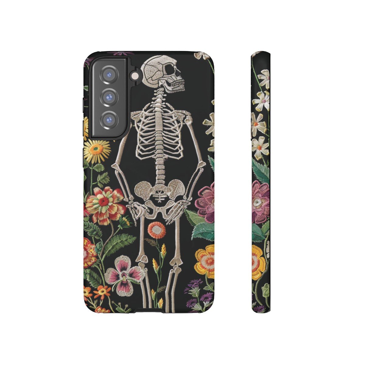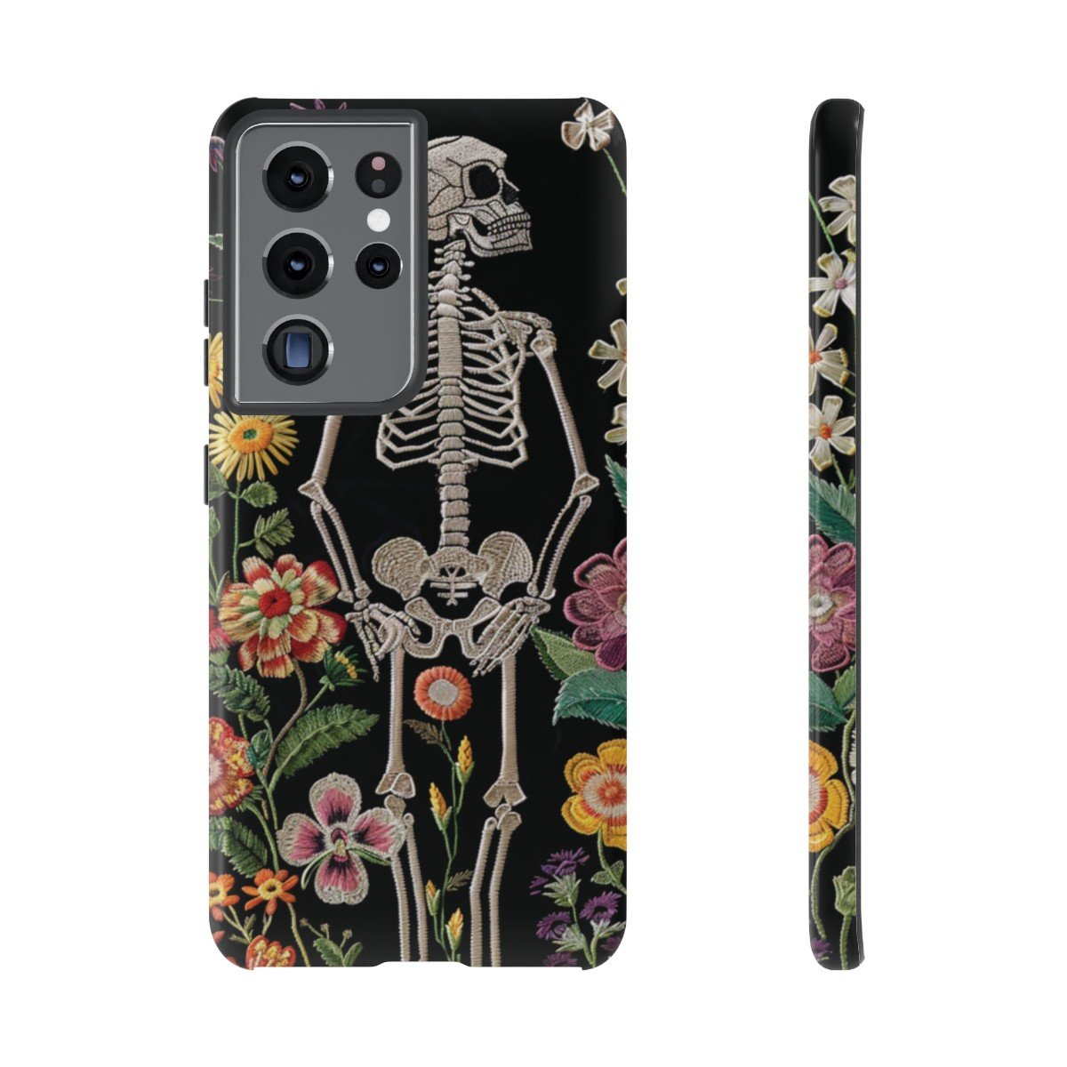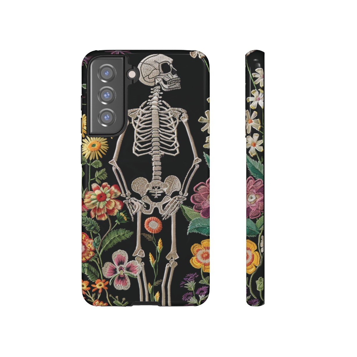Embroidered Look Skeleton in the Garden – Multi-Colored on Black – Samsung Galaxy S10 S20 S21 – Cell Phone – Tough Cases.