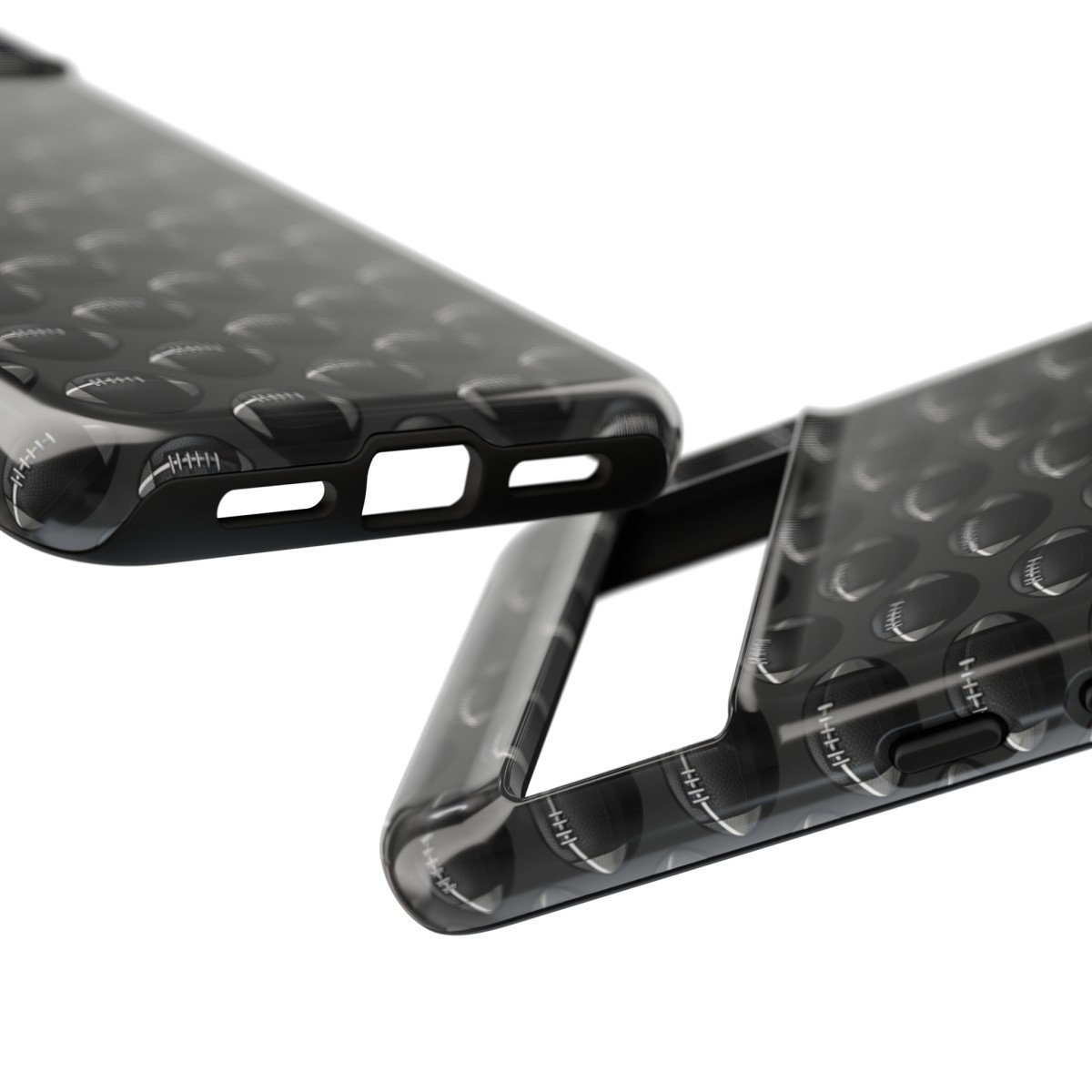 DESIGN: A black on black pattern of footballs. These have the look of texture and 3D but this is a print only, the phone case will be smooth. Colors of dark gray and black. We hope you love it! Super fresh design and also very cheerful to look at.