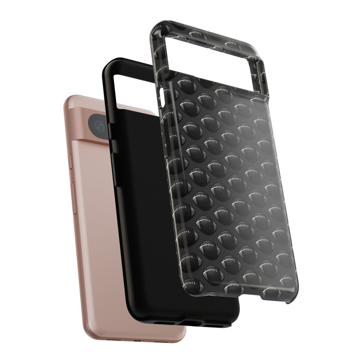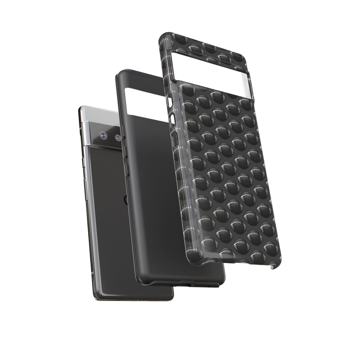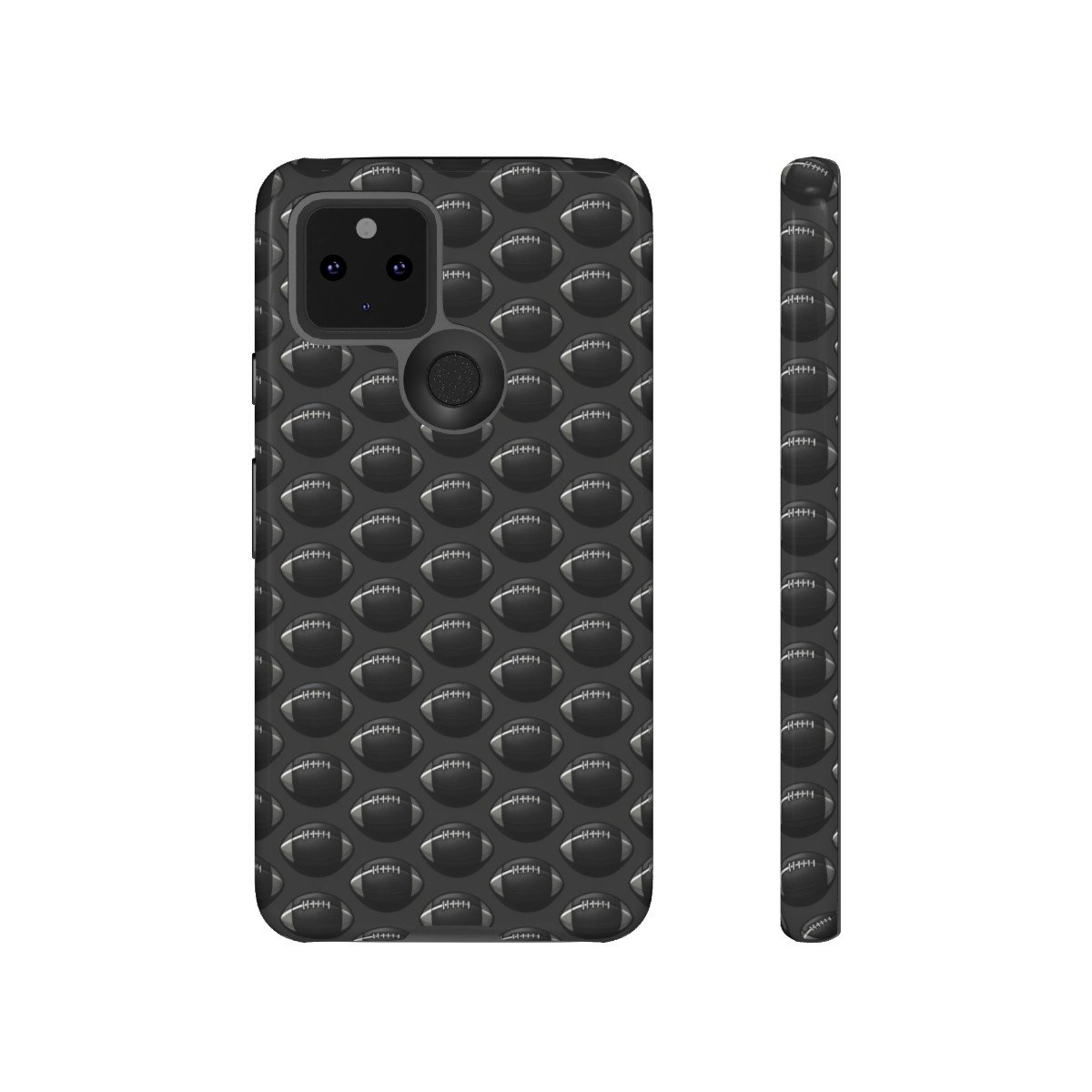 Phone Cases – Black on Black Football Pattern – Google Pixel 5 6 7 8 – Cell Phone – Tough Cases.
