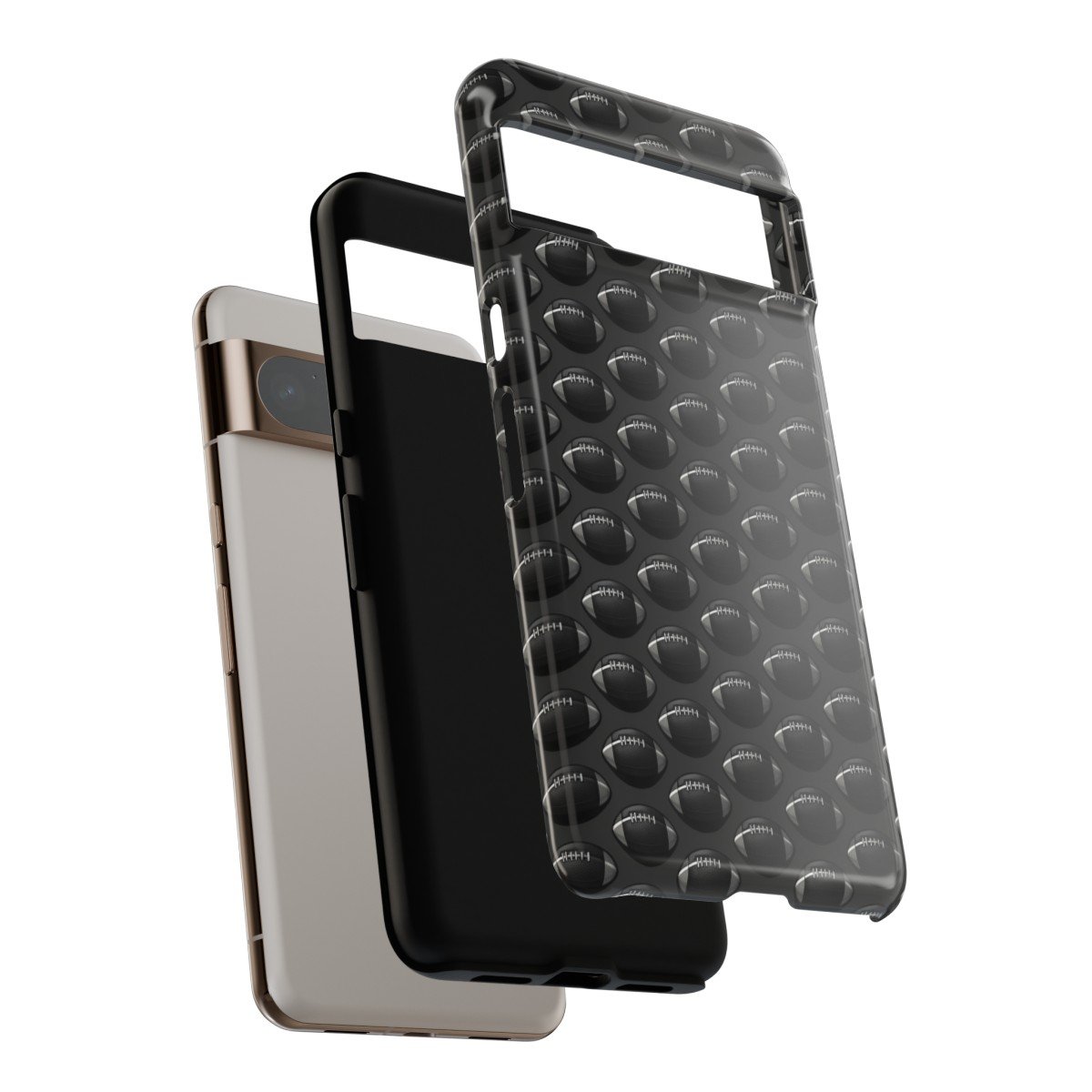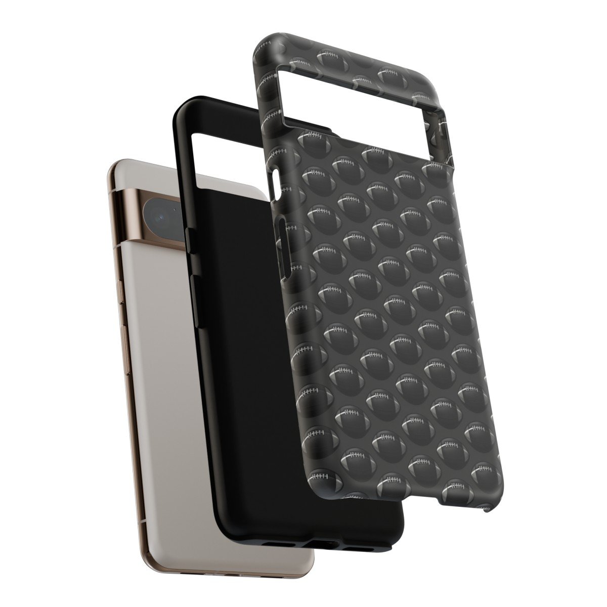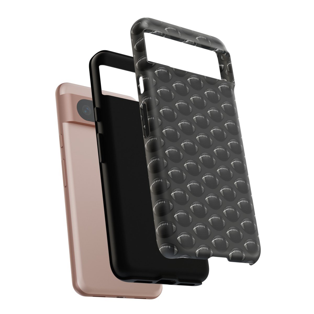 Phone Cases – Black on Black Football Pattern – Google Pixel 5 6 7 8 – Cell Phone – Tough Cases.