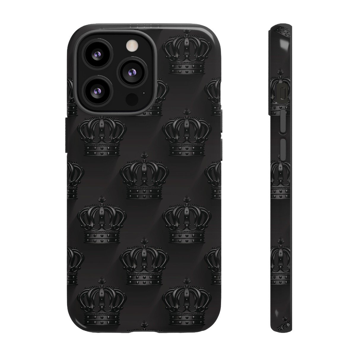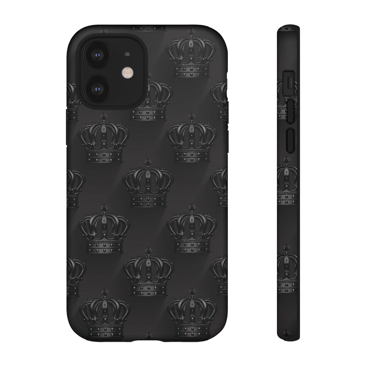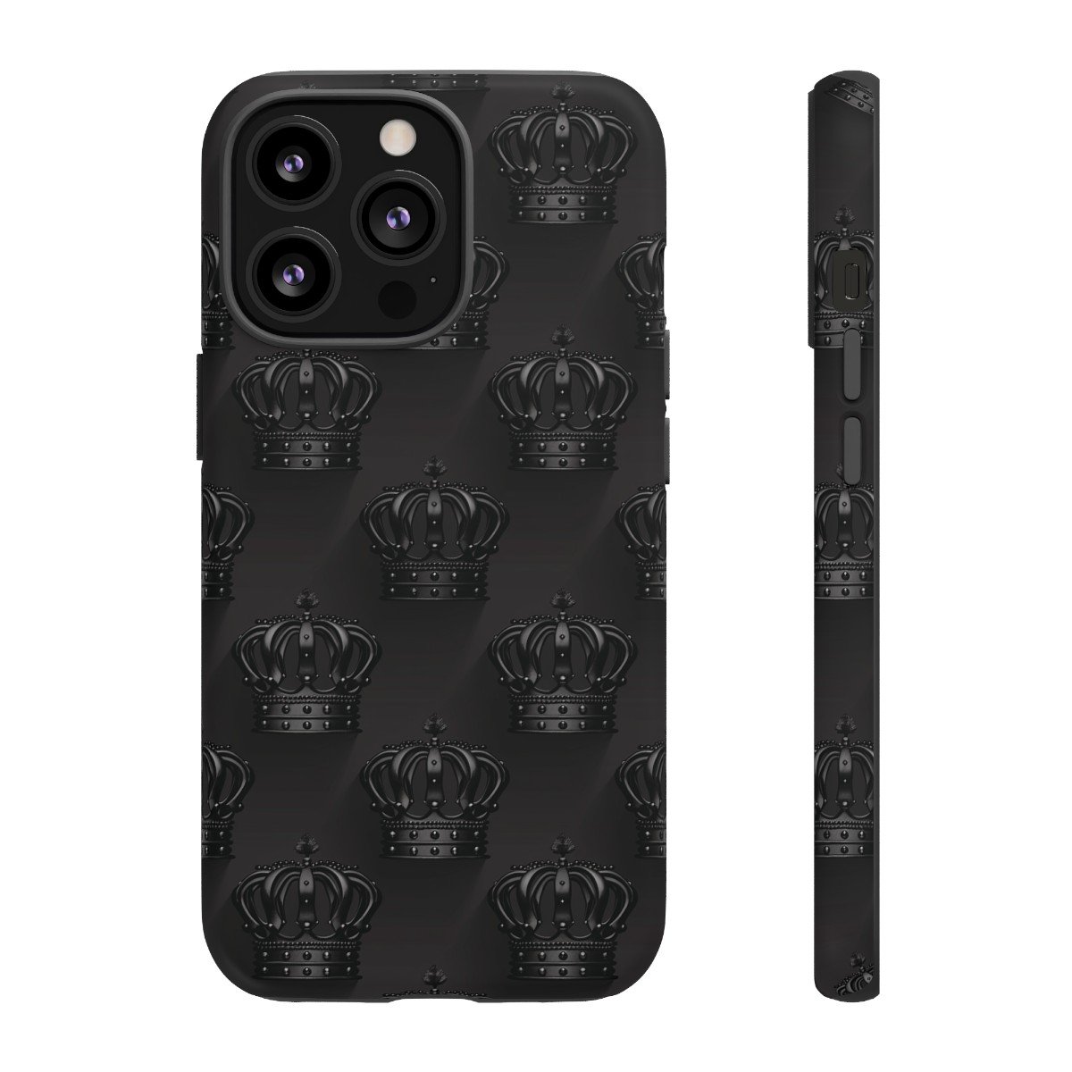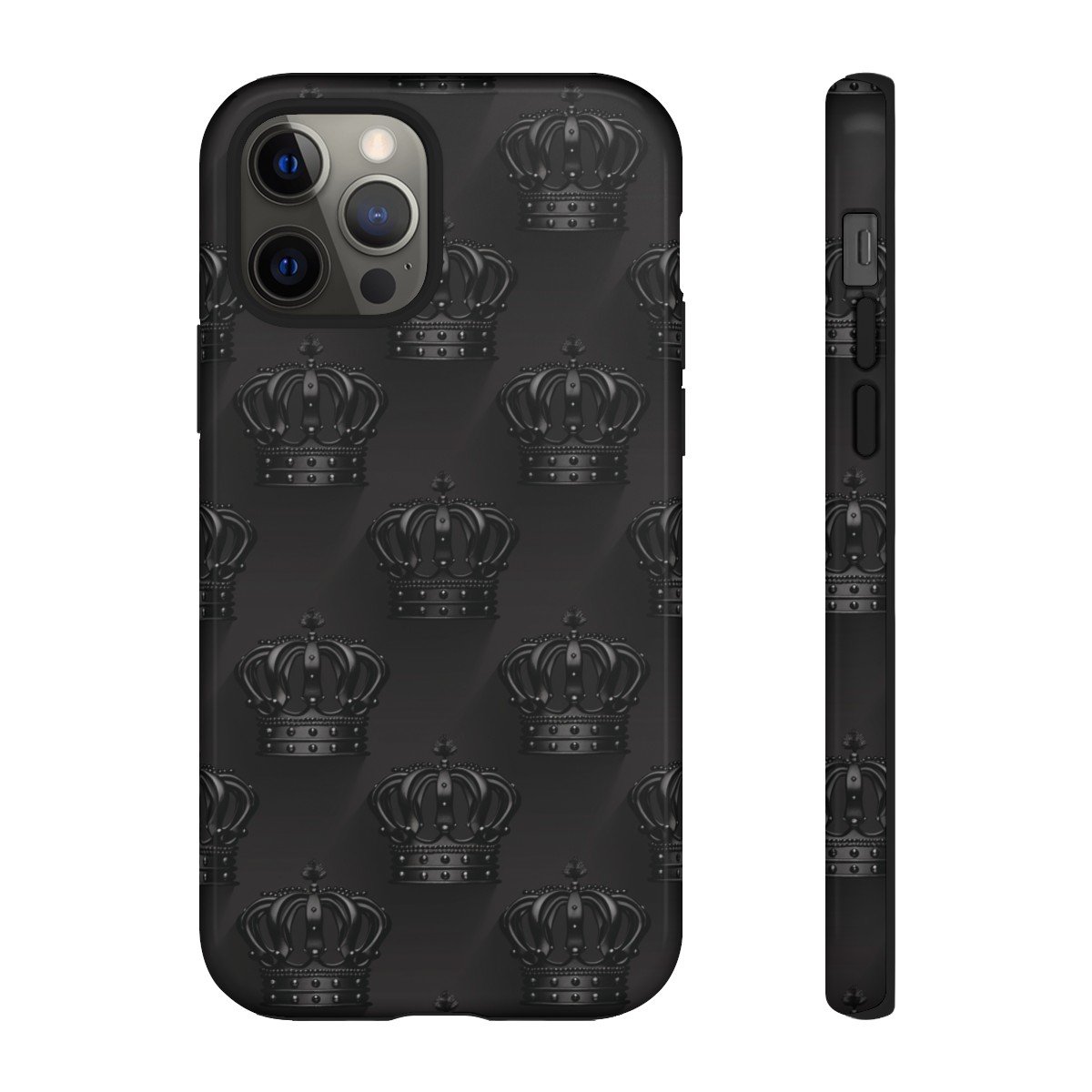 Phone Cases – Black on Black King’s Crown Pattern – iPhone 12 13 – Cell Phone – Tough Cases.