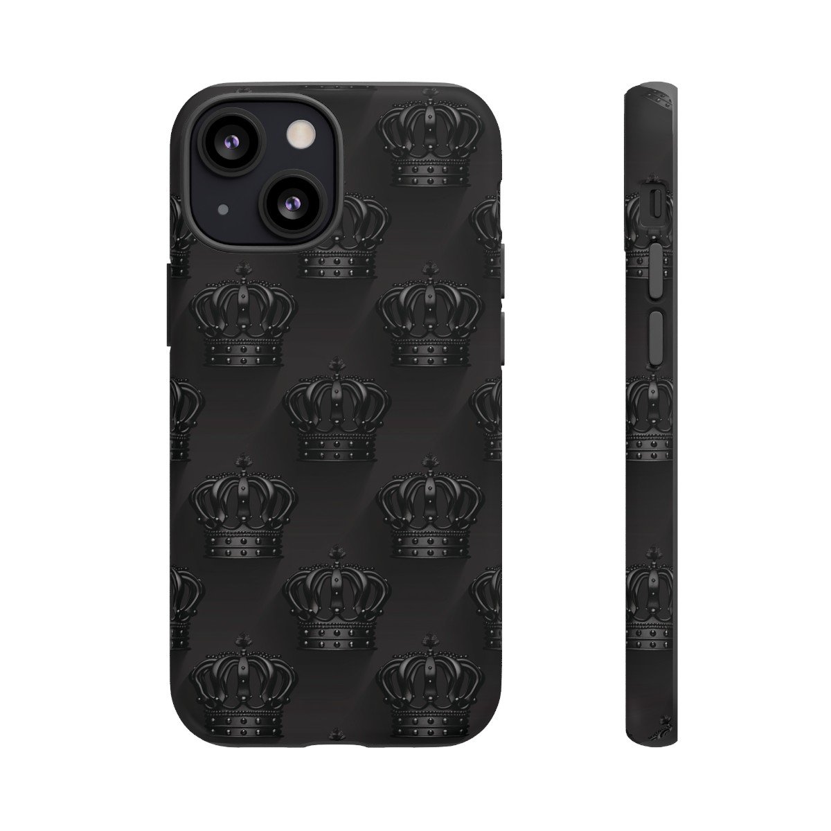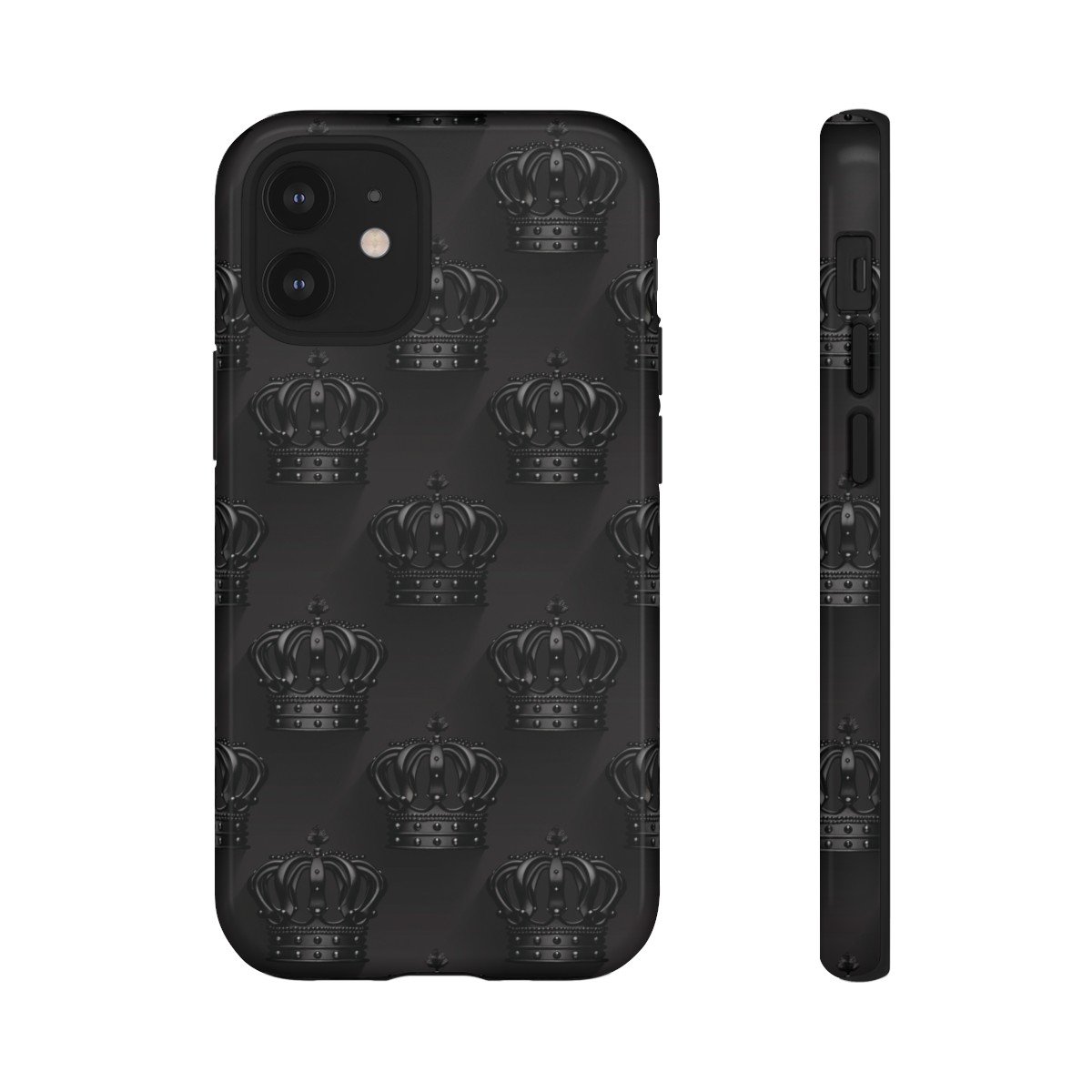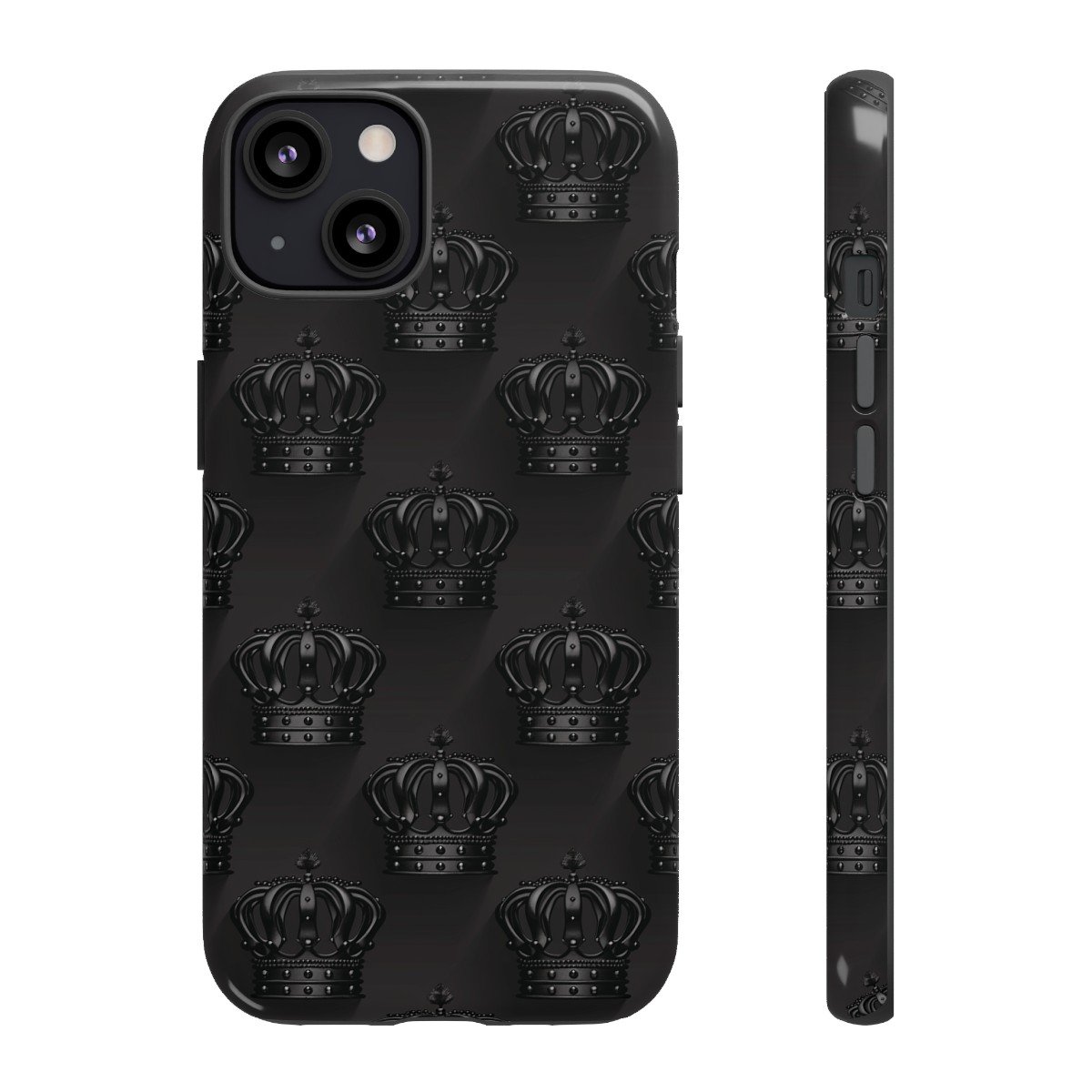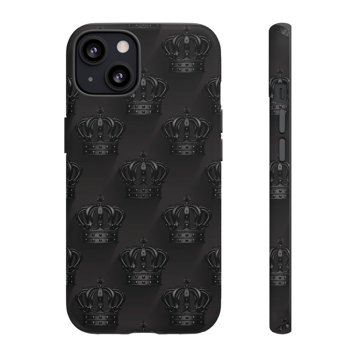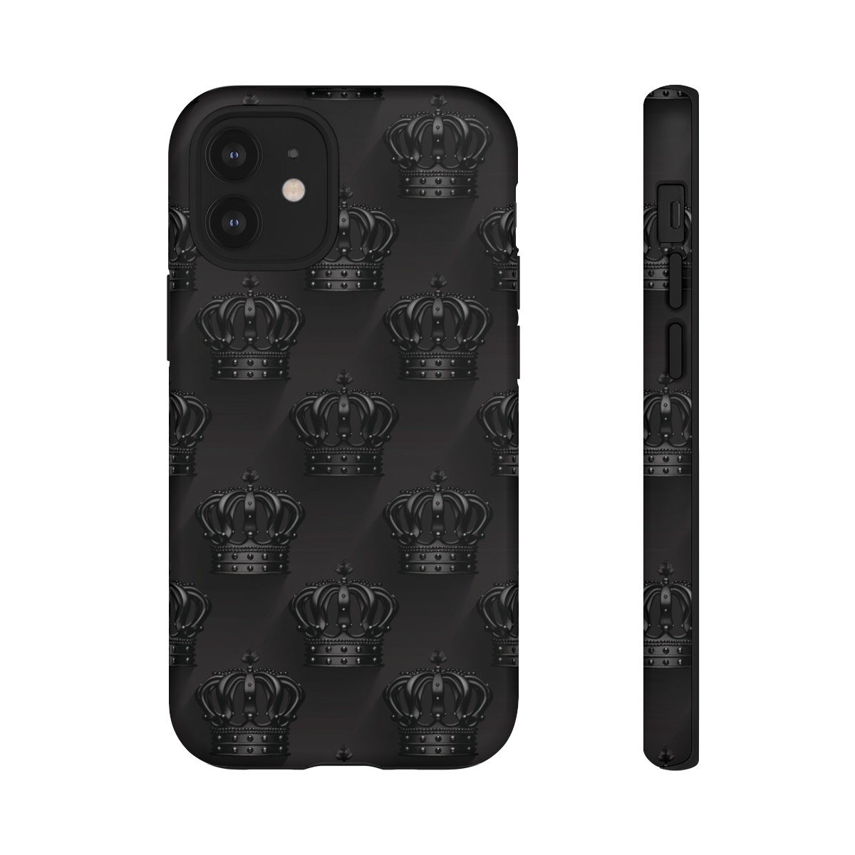 Phone Cases – Black on Black King’s Crown Pattern – iPhone 12 13 – Cell Phone – Tough Cases.