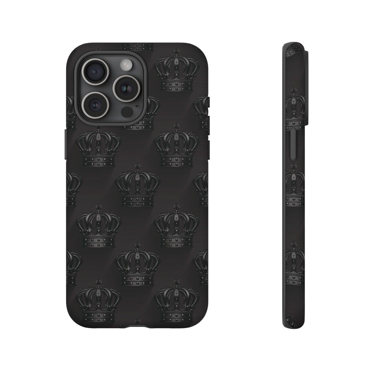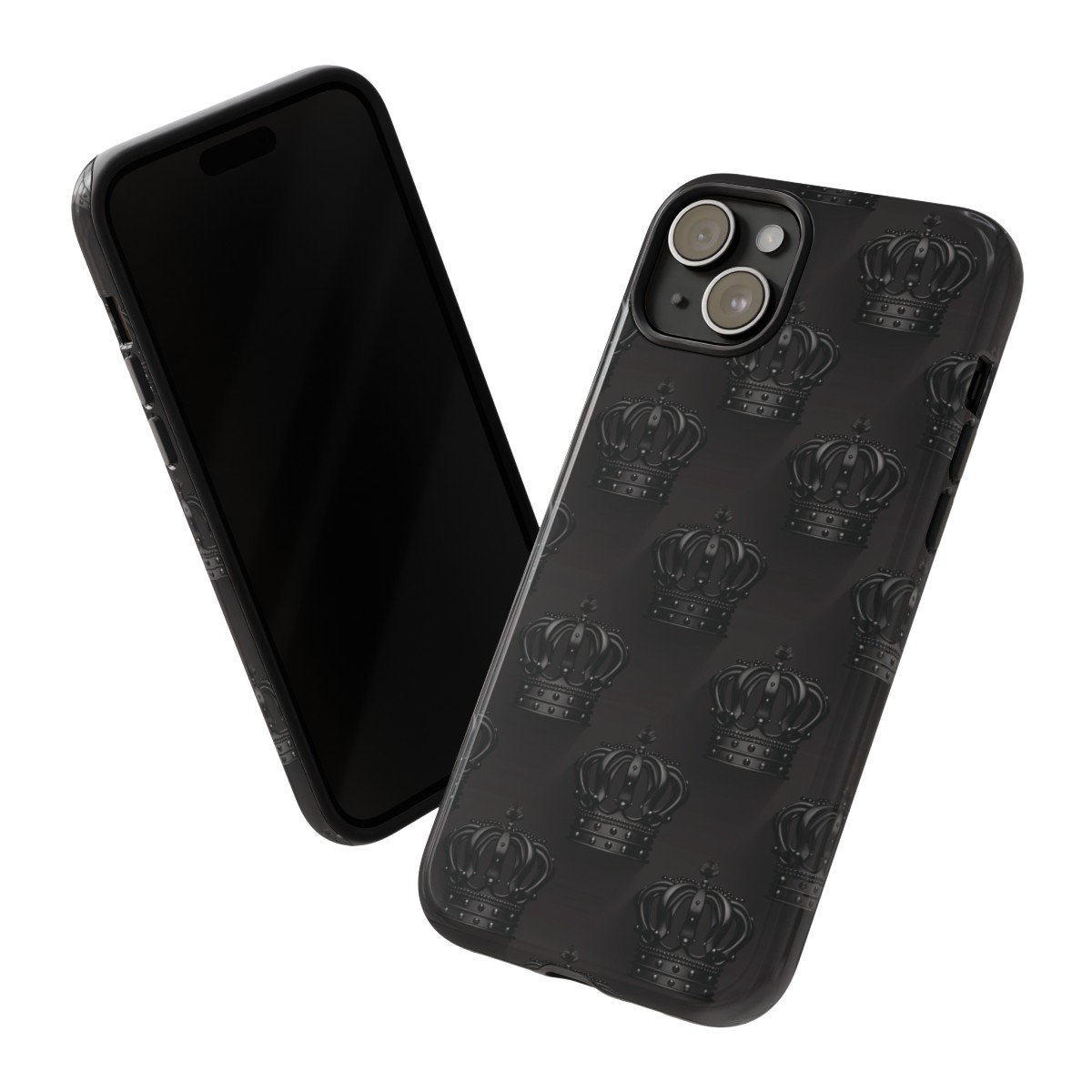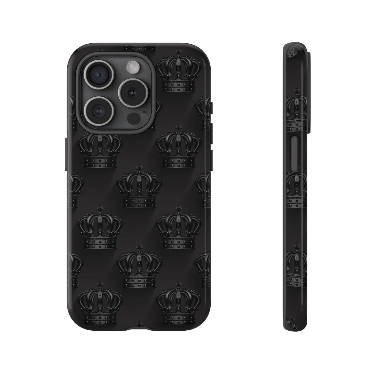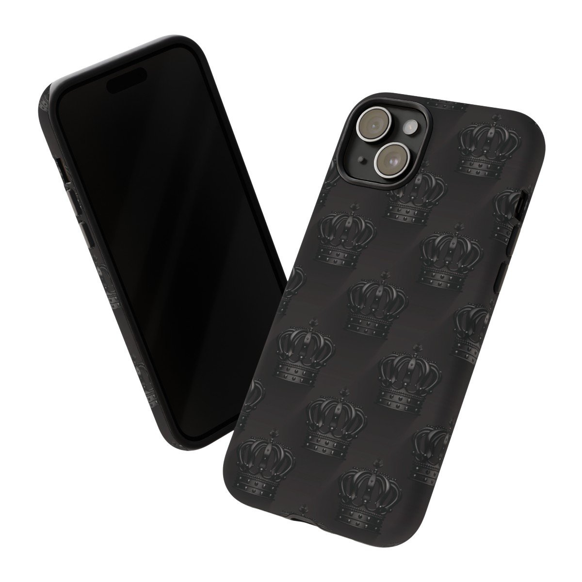 Phone Cases – Black on Black King’s Crown Pattern – iPhone 14 15 – Cell Phone – Tough Cases.