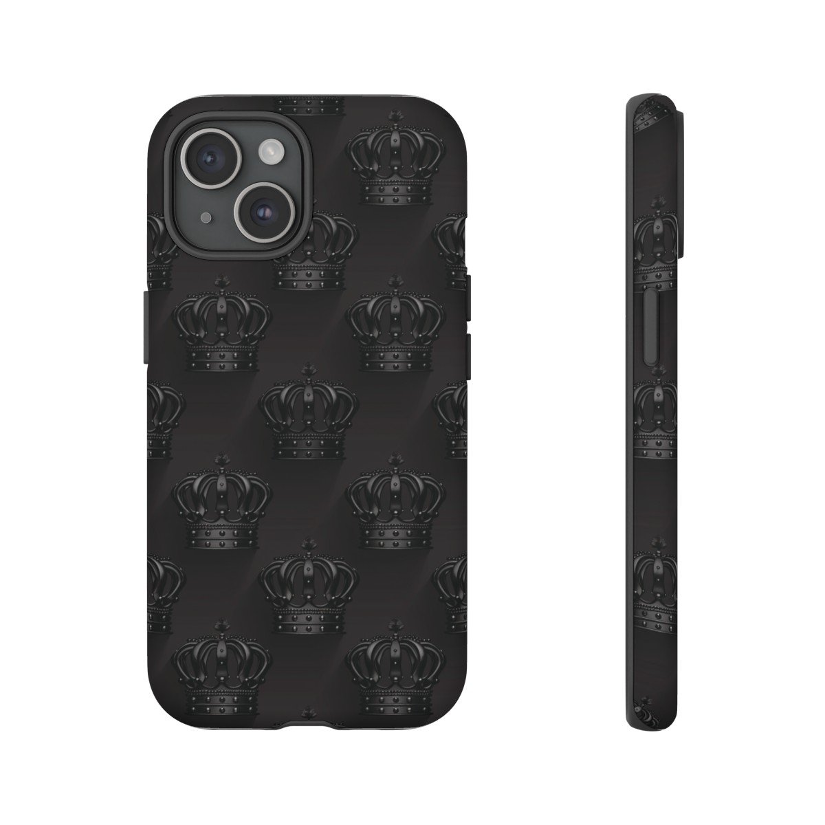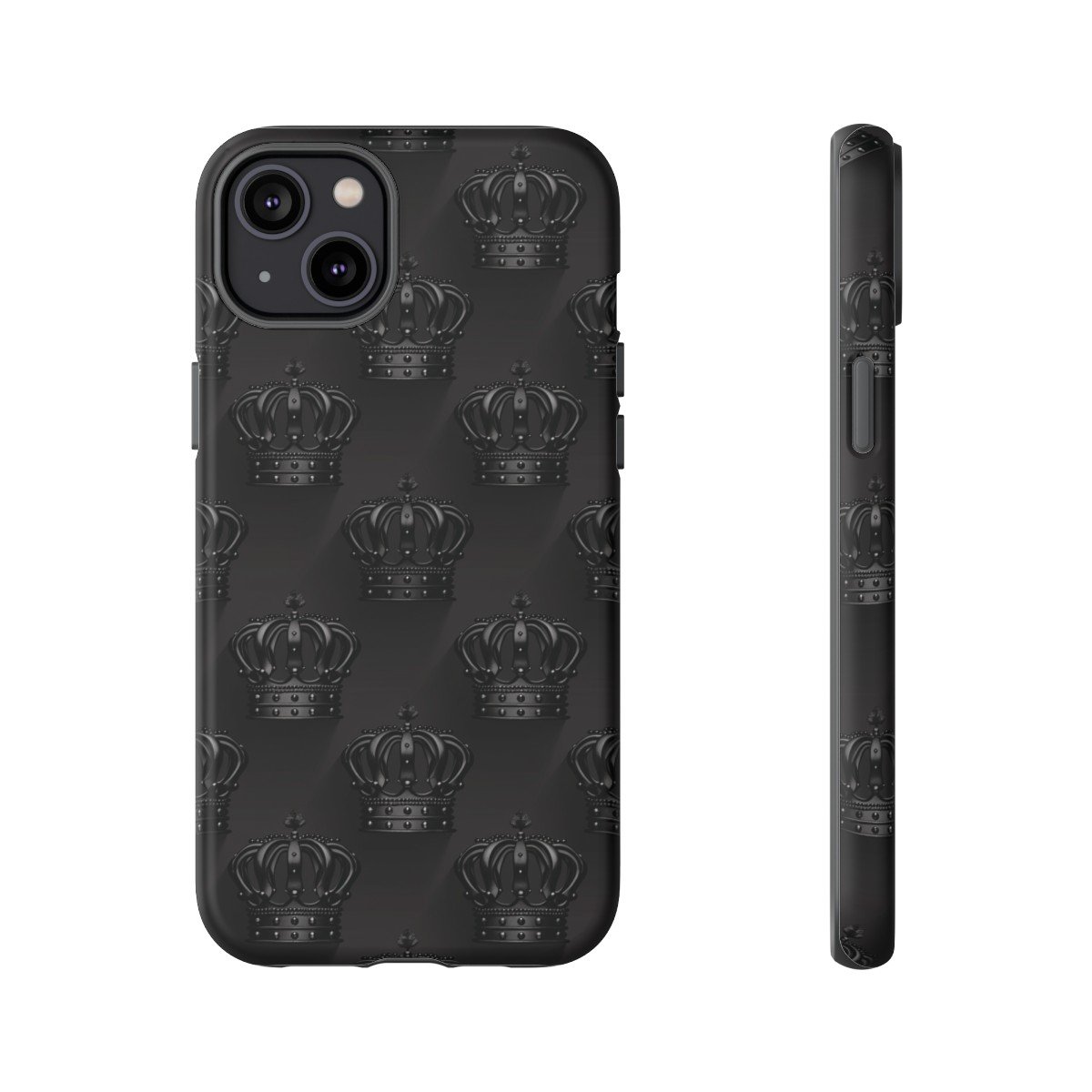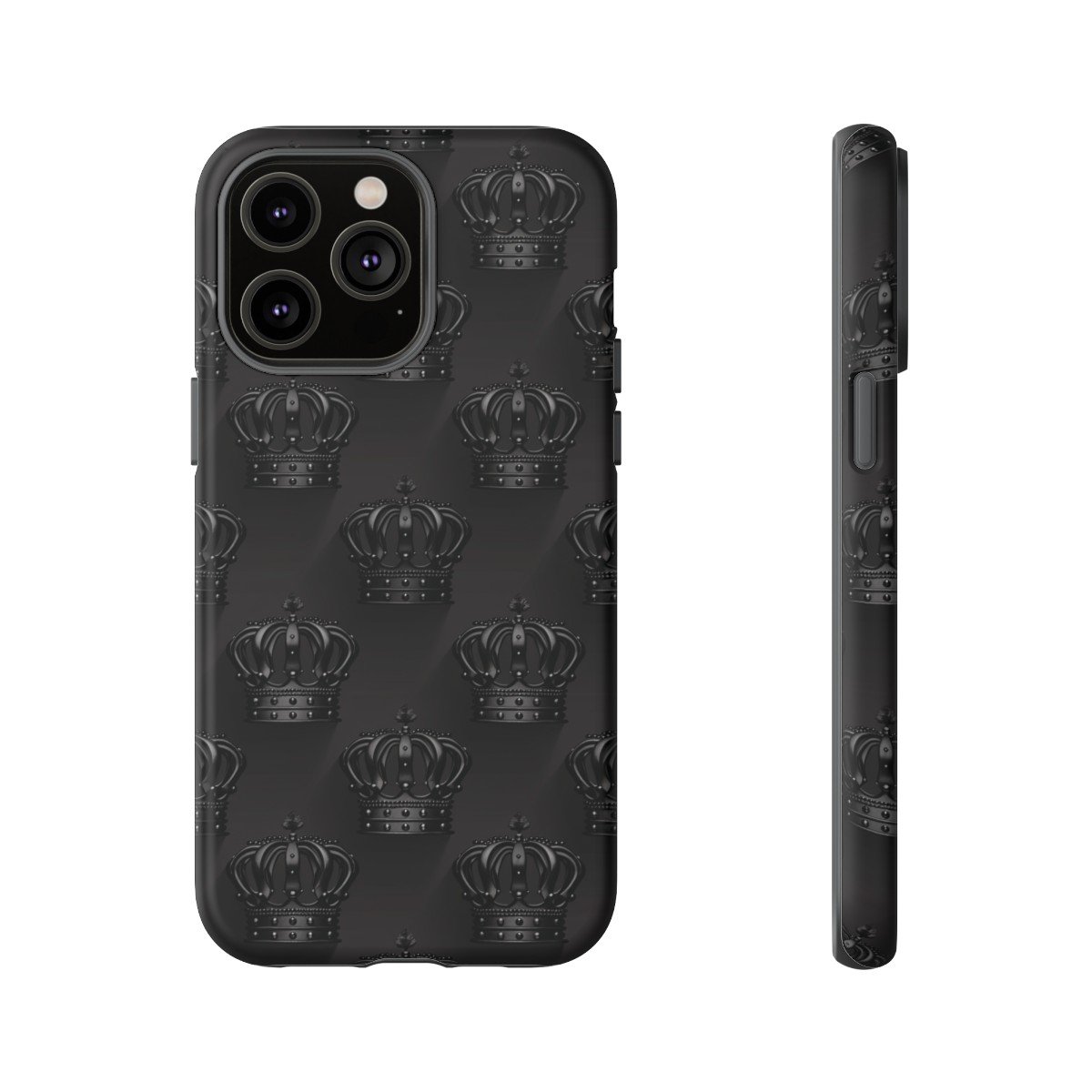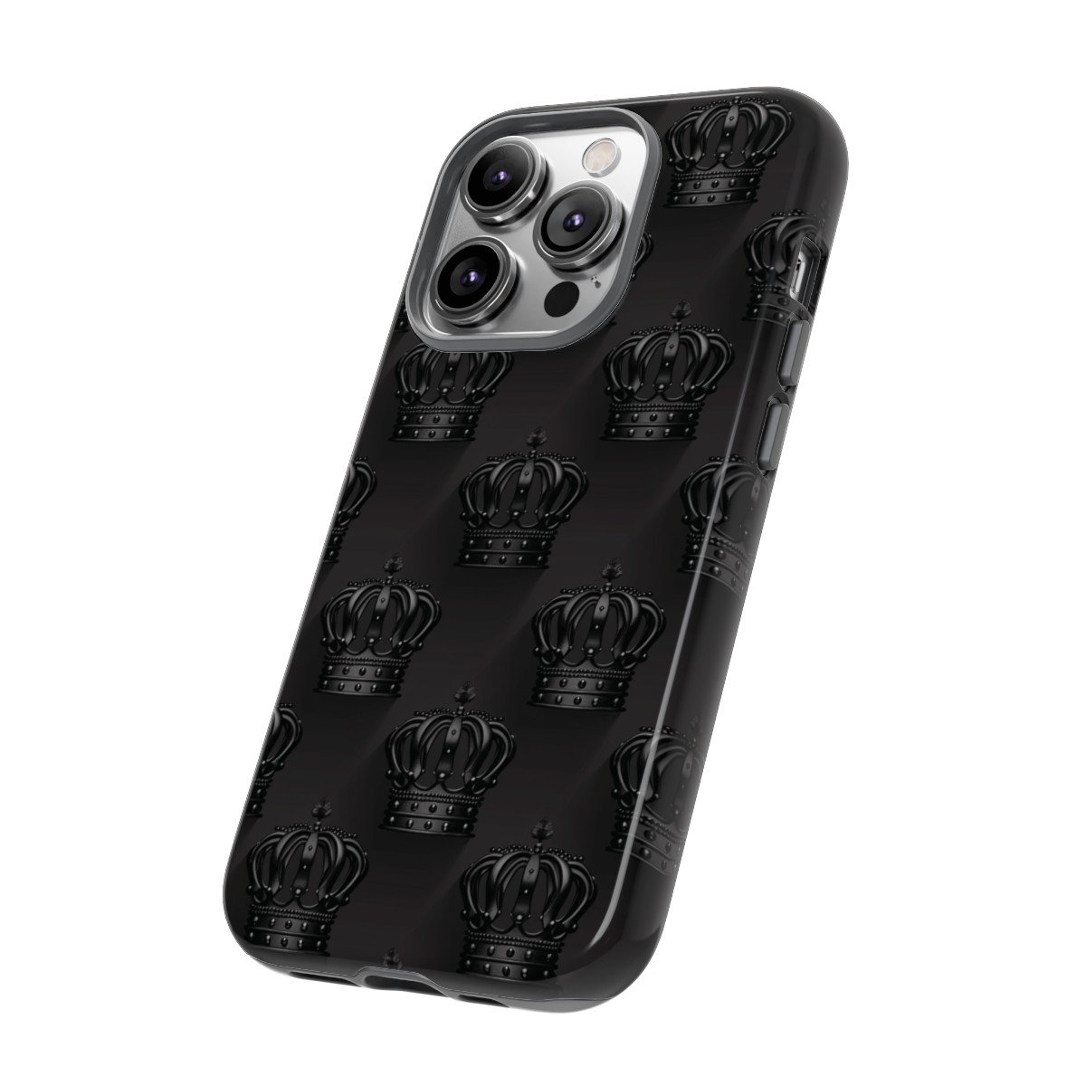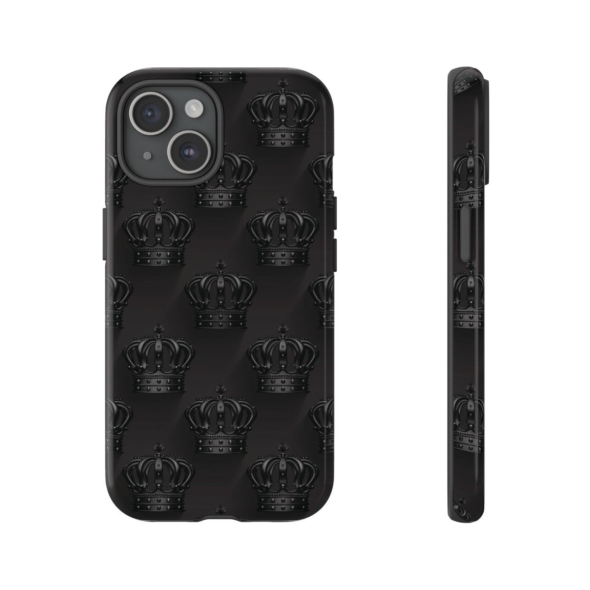 Phone Cases – Black on Black King’s Crown Pattern – iPhone 14 15 – Cell Phone – Tough Cases.