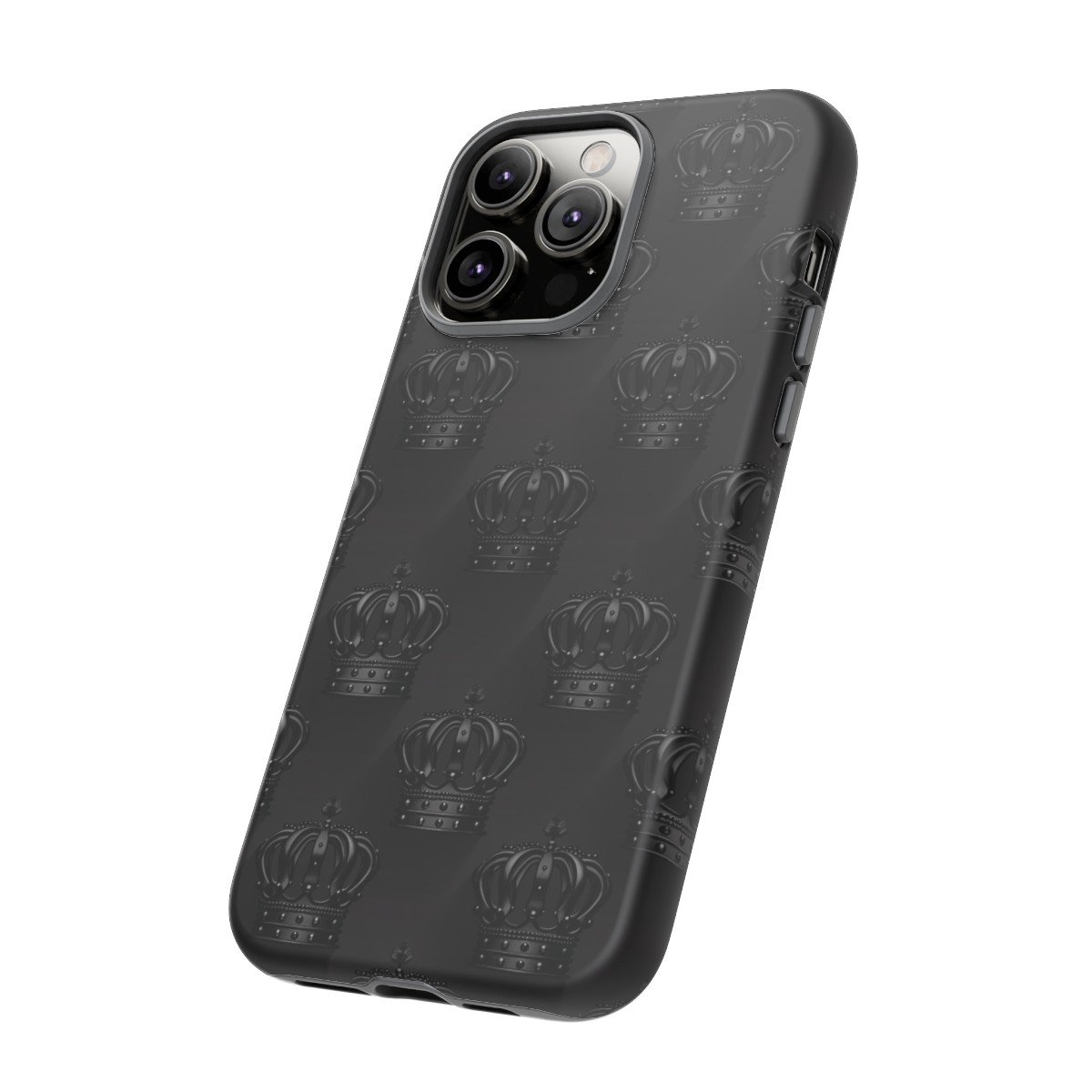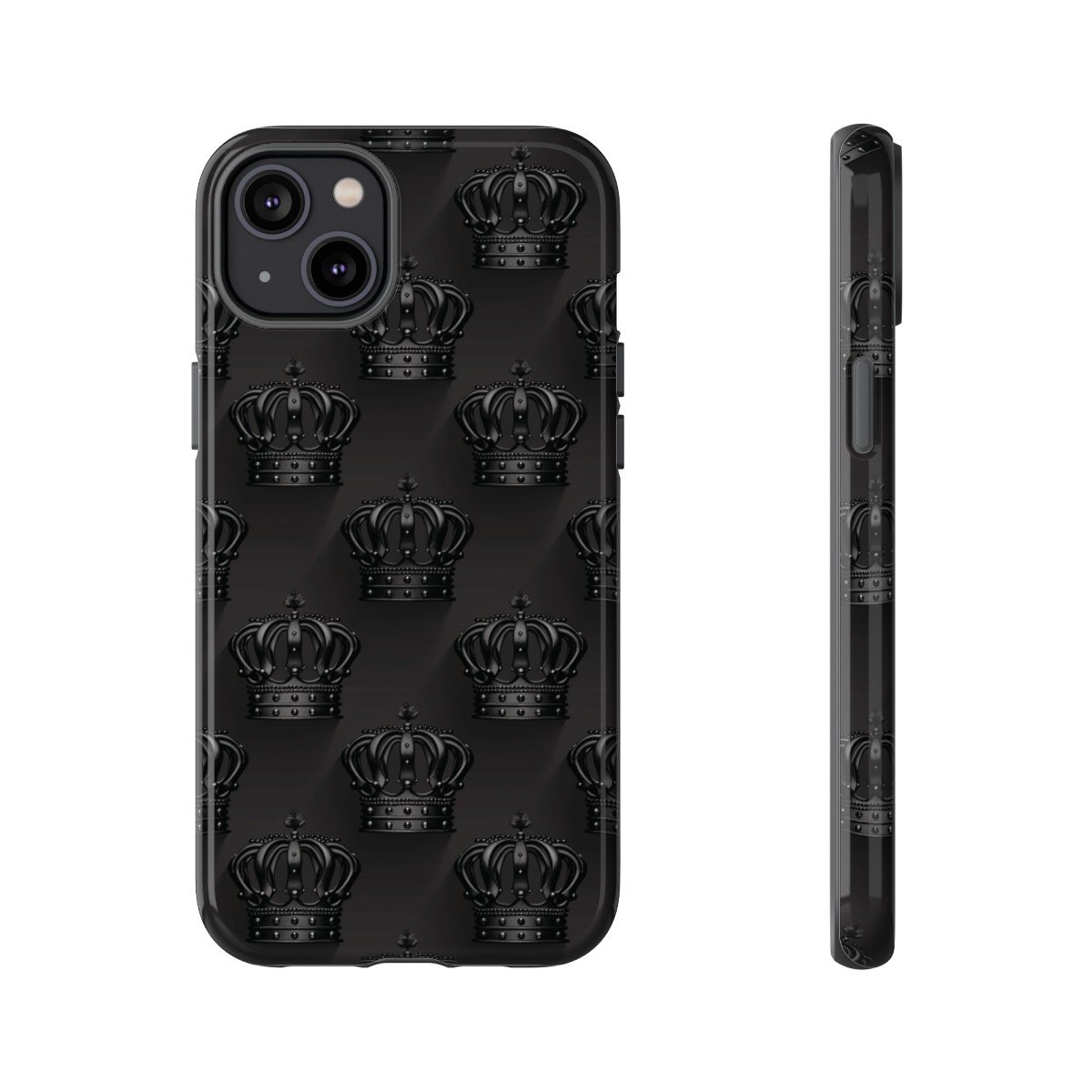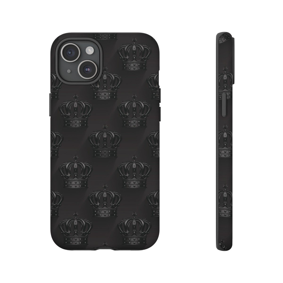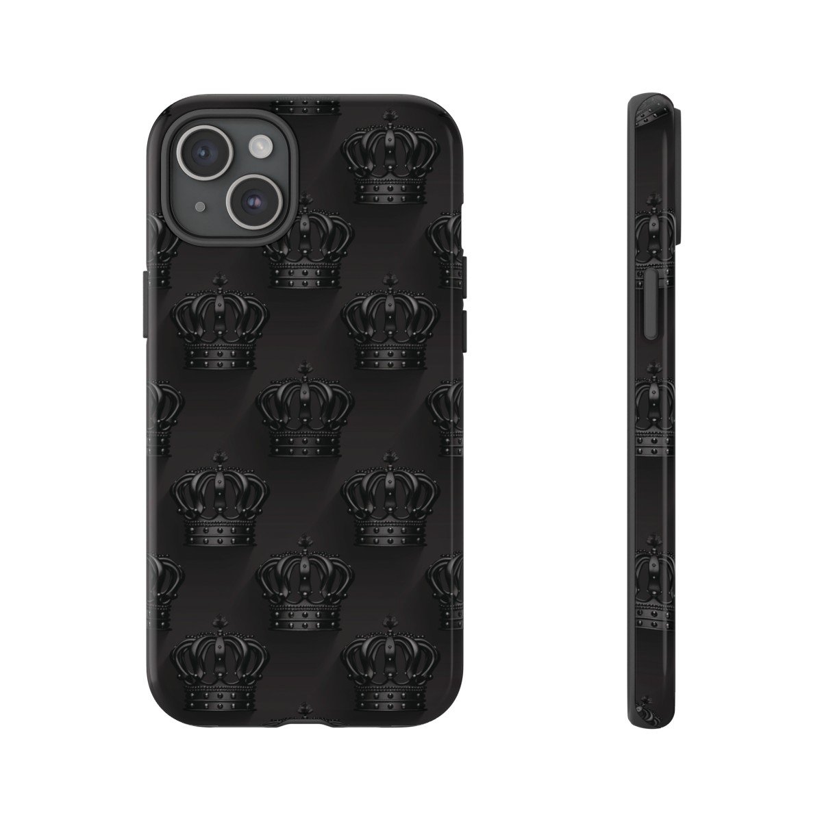 Phone Cases – Black on Black King’s Crown Pattern – iPhone 14 15 – Cell Phone – Tough Cases.