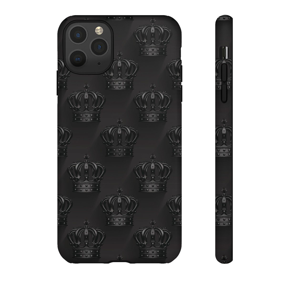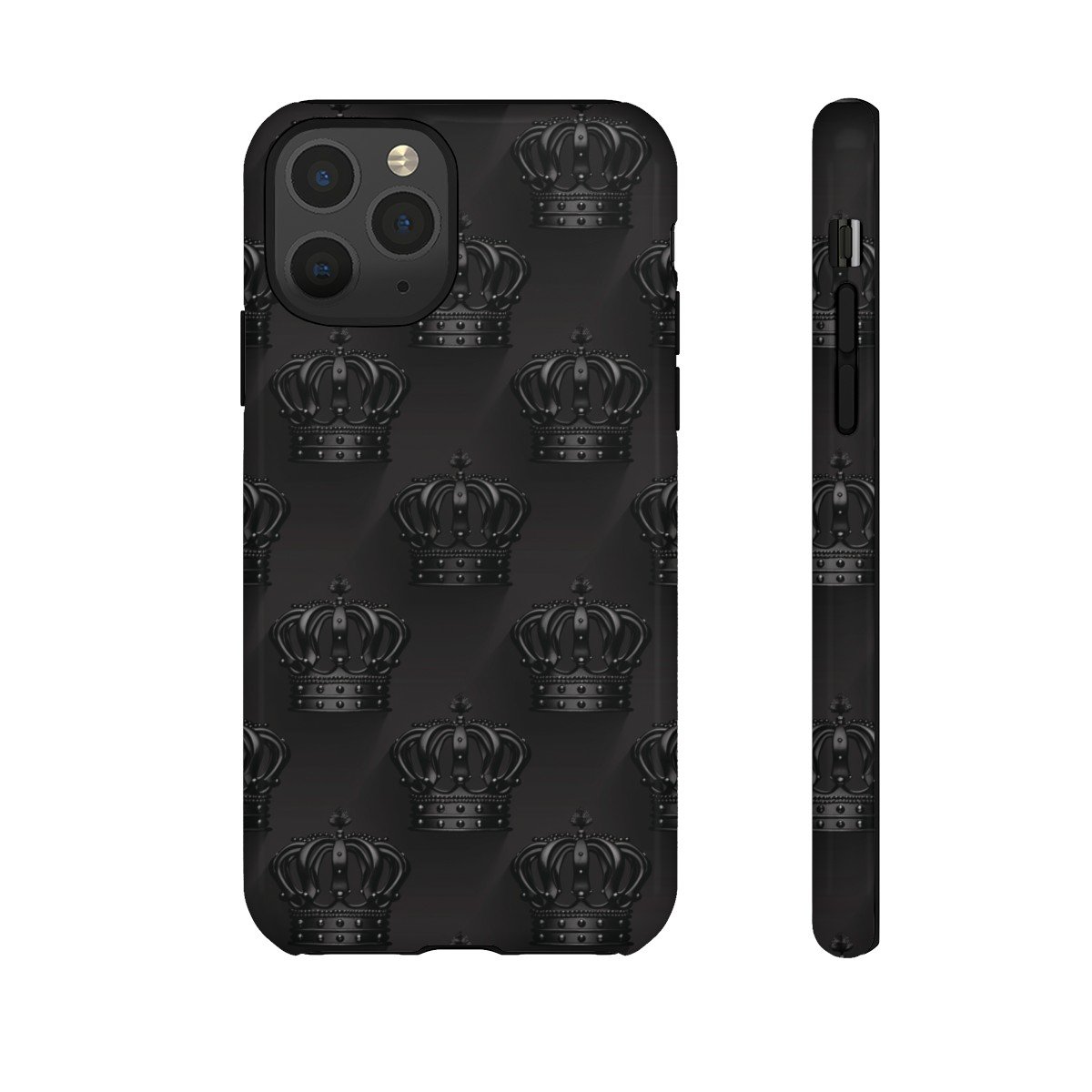 Phone Cases – Black on Black King’s Crown Pattern – iPhone 8 X 11 – Cell Phone – Tough Cases.