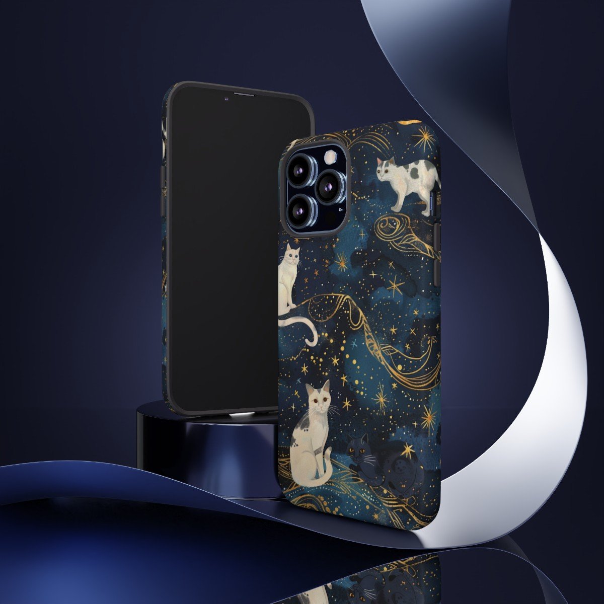 Phone Cases iPhone 12 13 – Celestial Cats – Cell Phone – Tough Cases.
