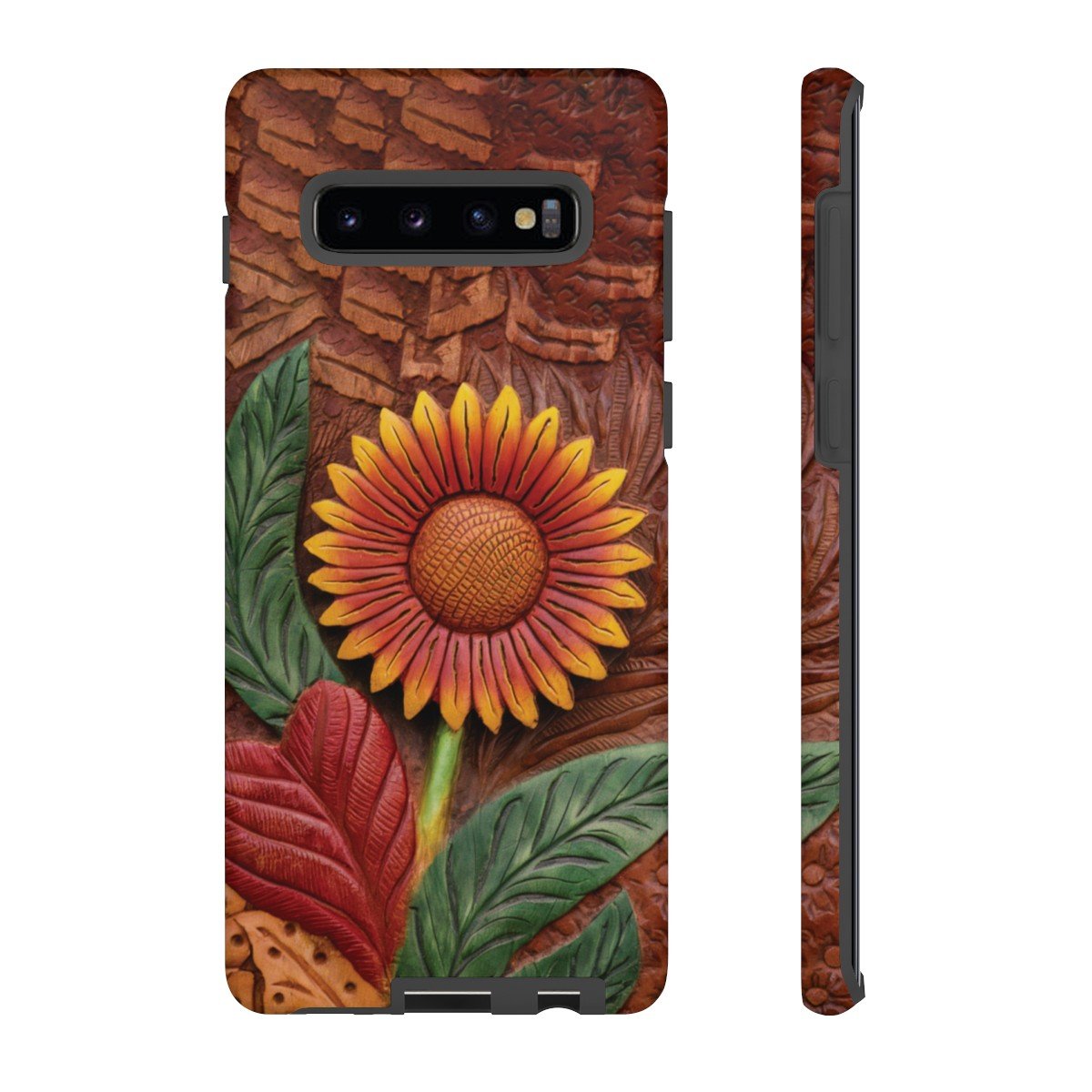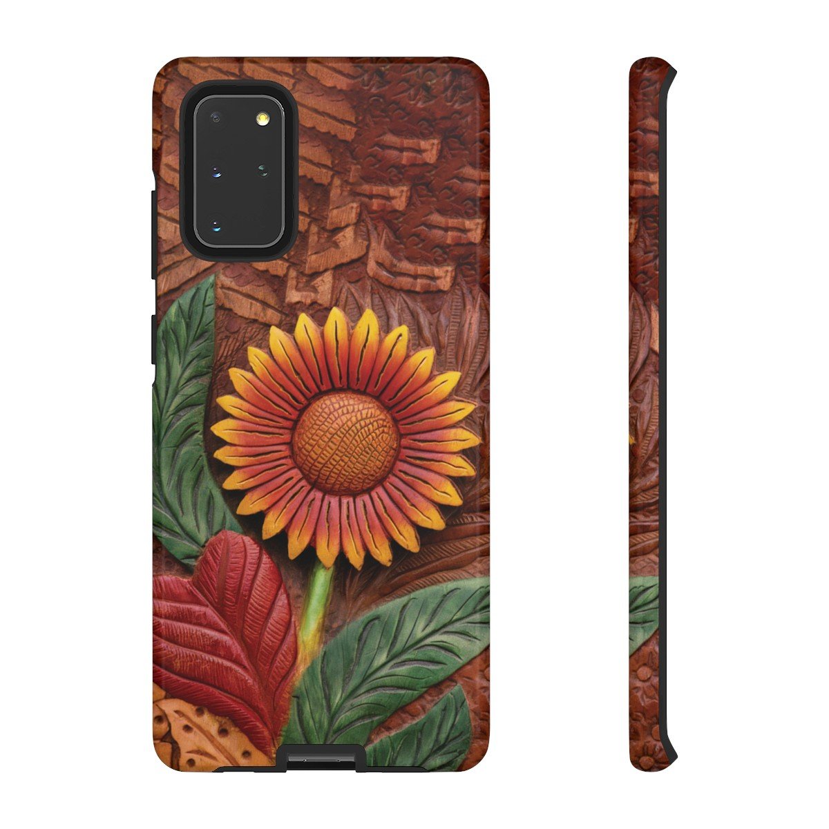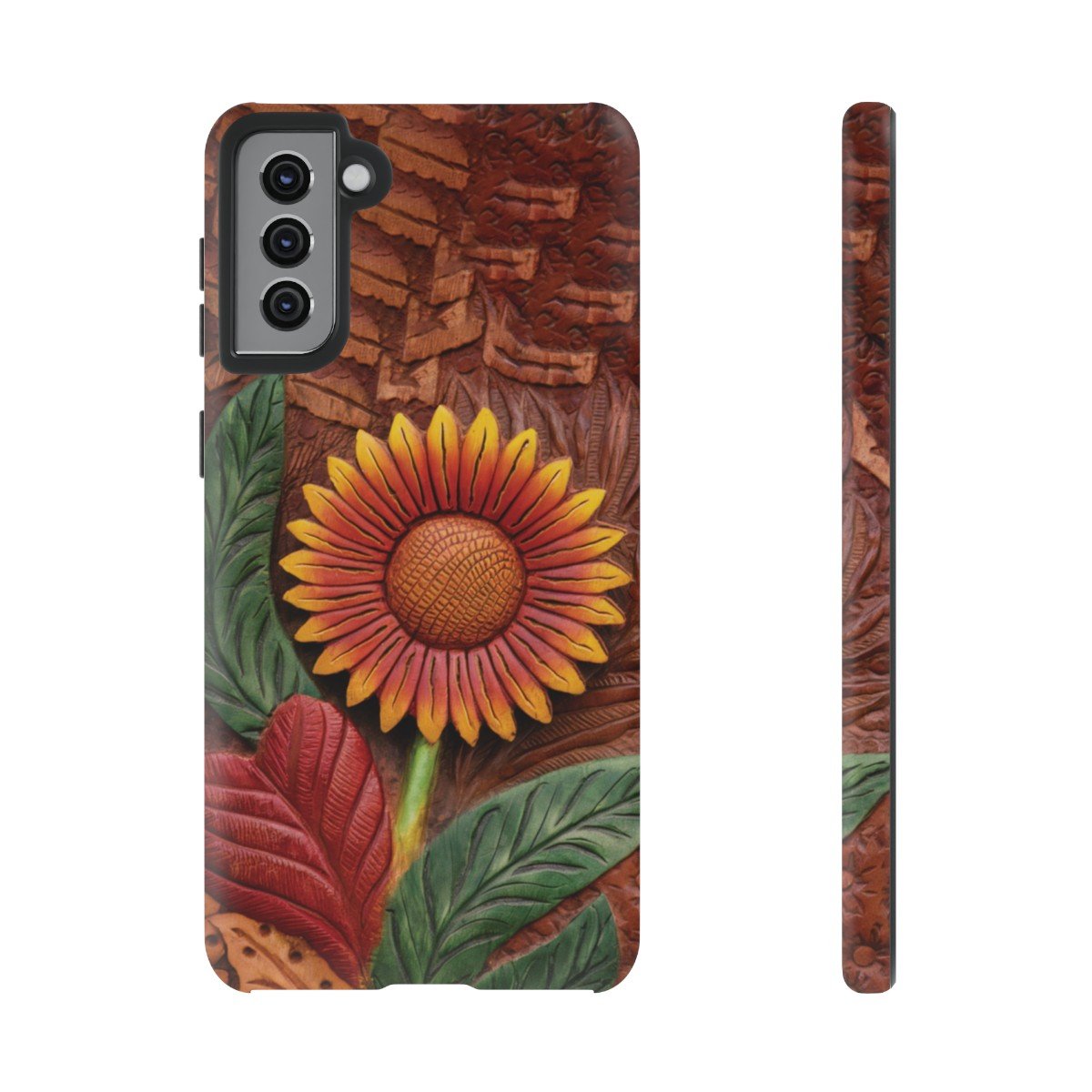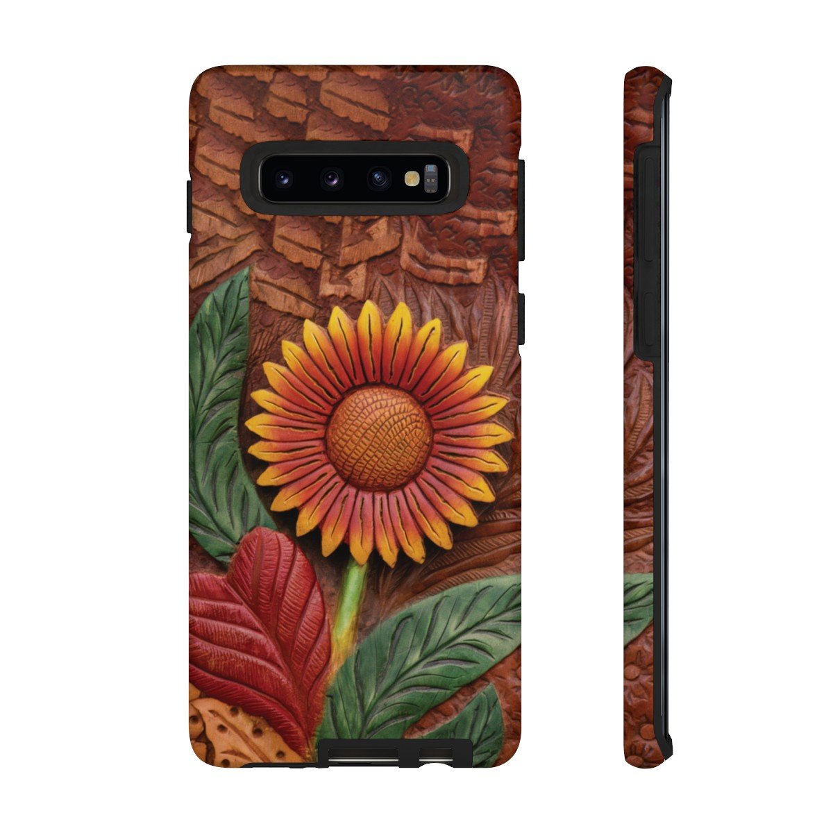 Phone Cases – Leather Look Sunflower – Samsung Galaxy S10 S20 S21 – Cell Phone – Tough Cases.