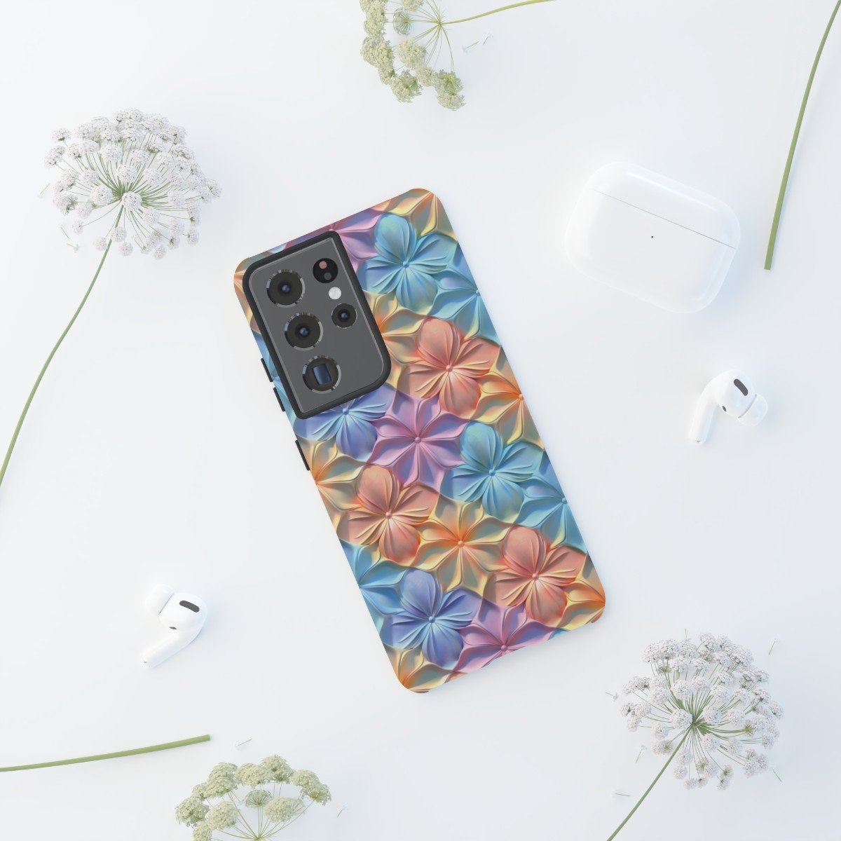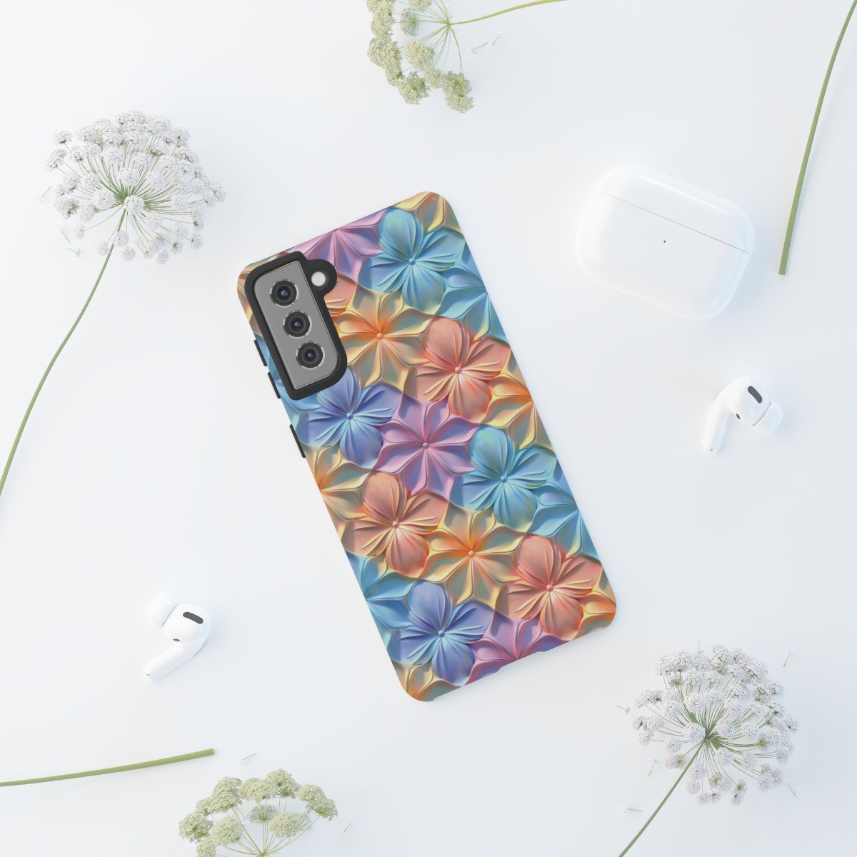 DESIGN: A beautiful pattern of pastel posies or flowers. These have the look of texture and 3D but this is a print only, the phone case will be smooth. Colors of pastel pink, blue, orange, purple. We hope you love it! Super fresh design and also very cheerful to look at.