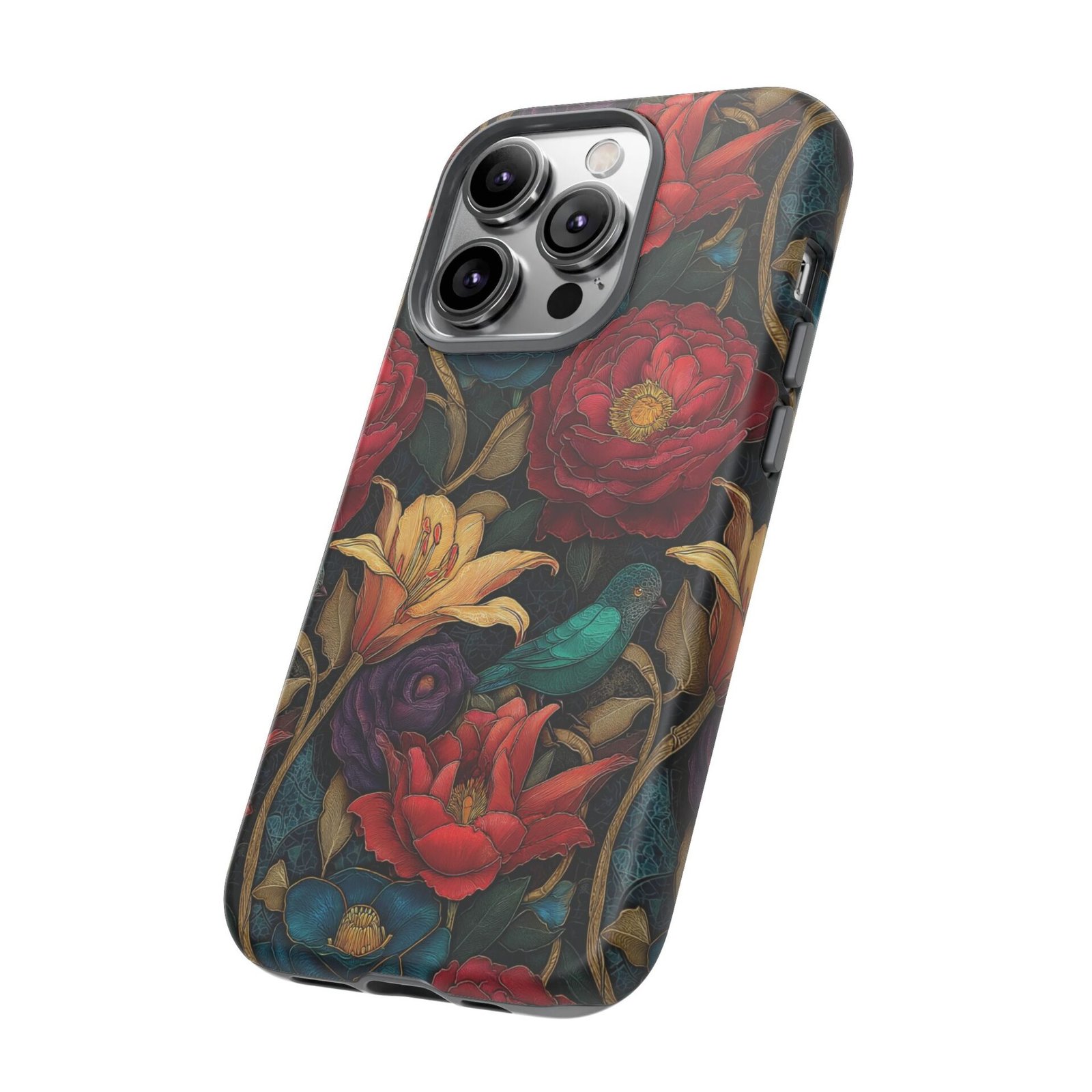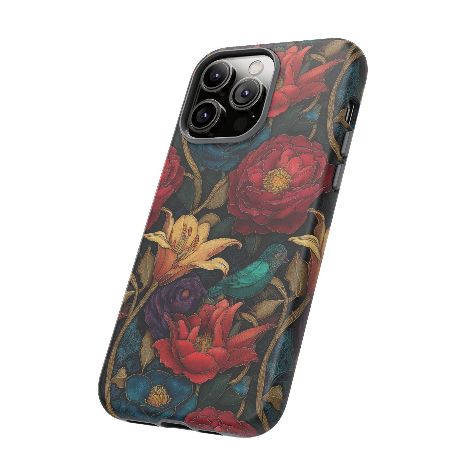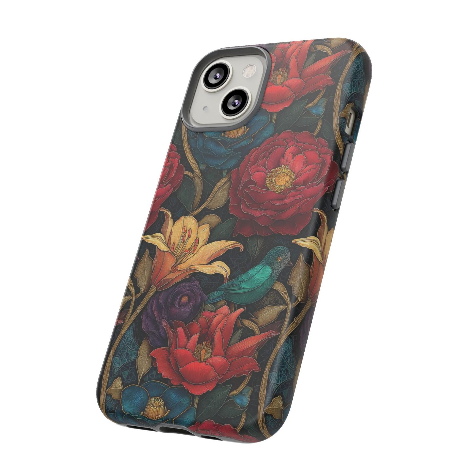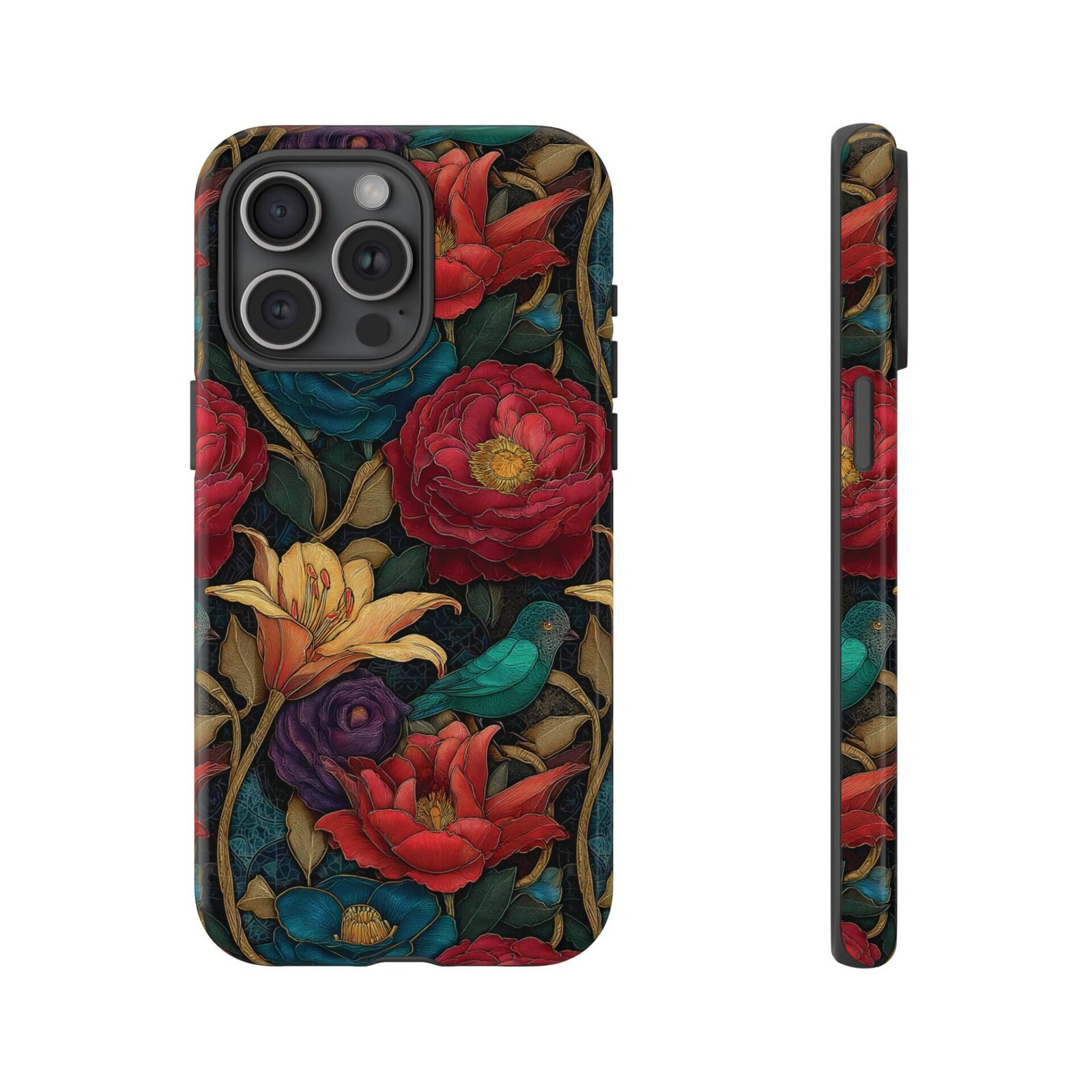 Phone Cases – Stained Glass – Floral with Bird – iPhone 14 15 – Cell Phone – Tough Cases.