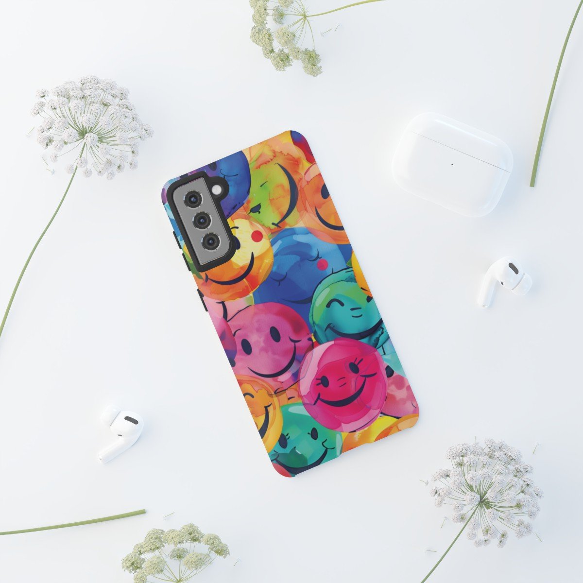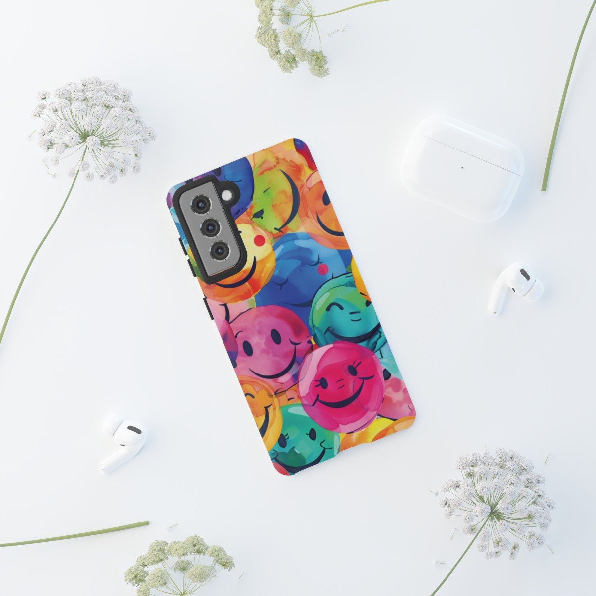Rainbow Watercolor Smiley Faces Collage – Samsung Galaxy S10 S20 S21 – Cell Phone – Tough Cases.