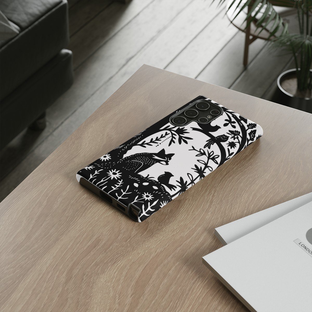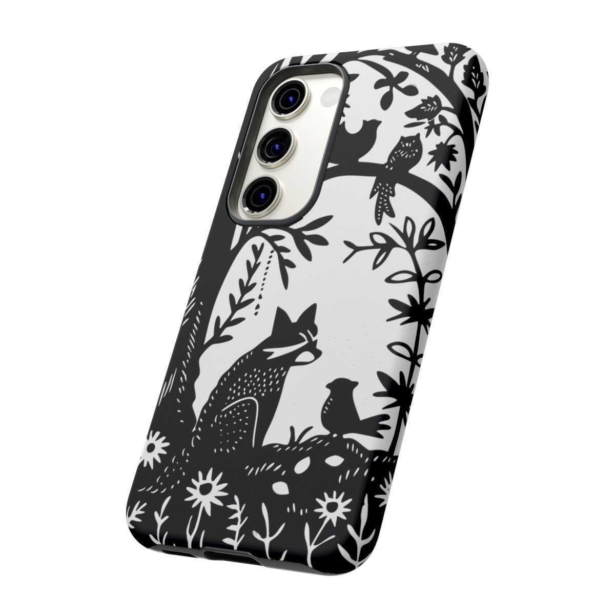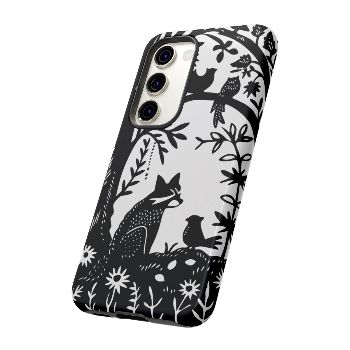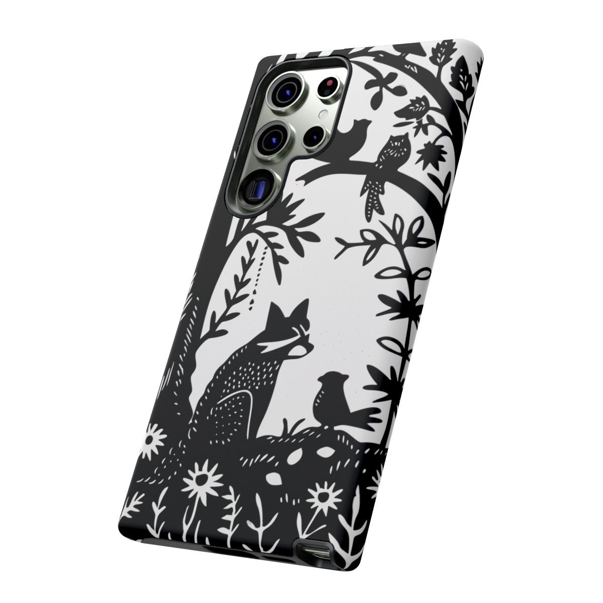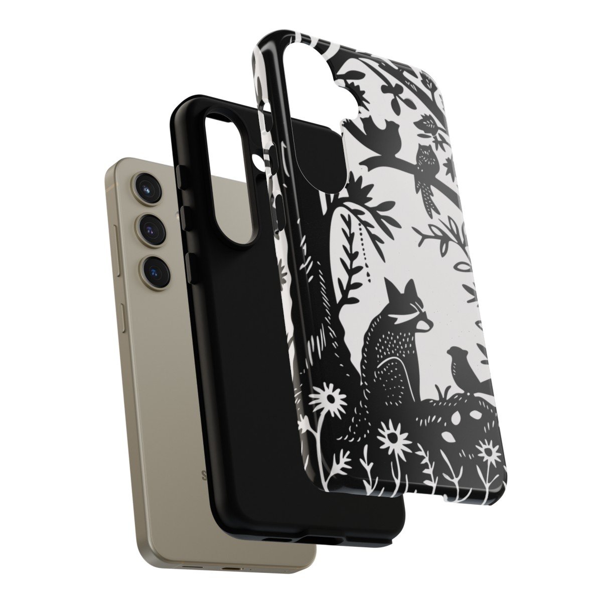 Retro Linocut Raccoon Birds Tree Flowers – Samsung Galaxy S22 S23 S24 – Cell Phone – Tough Cases.