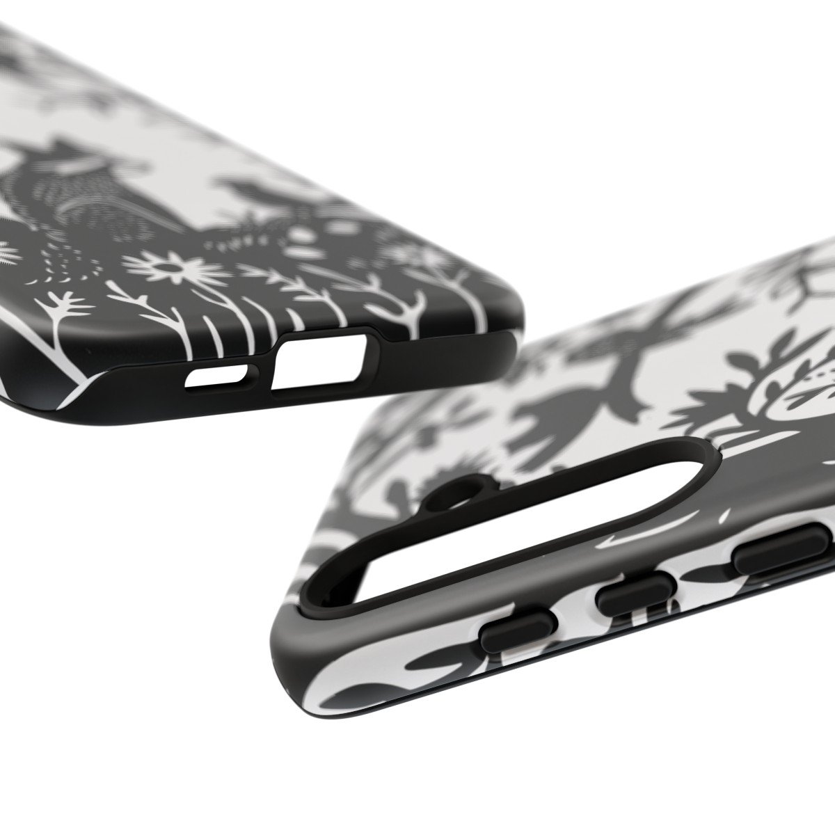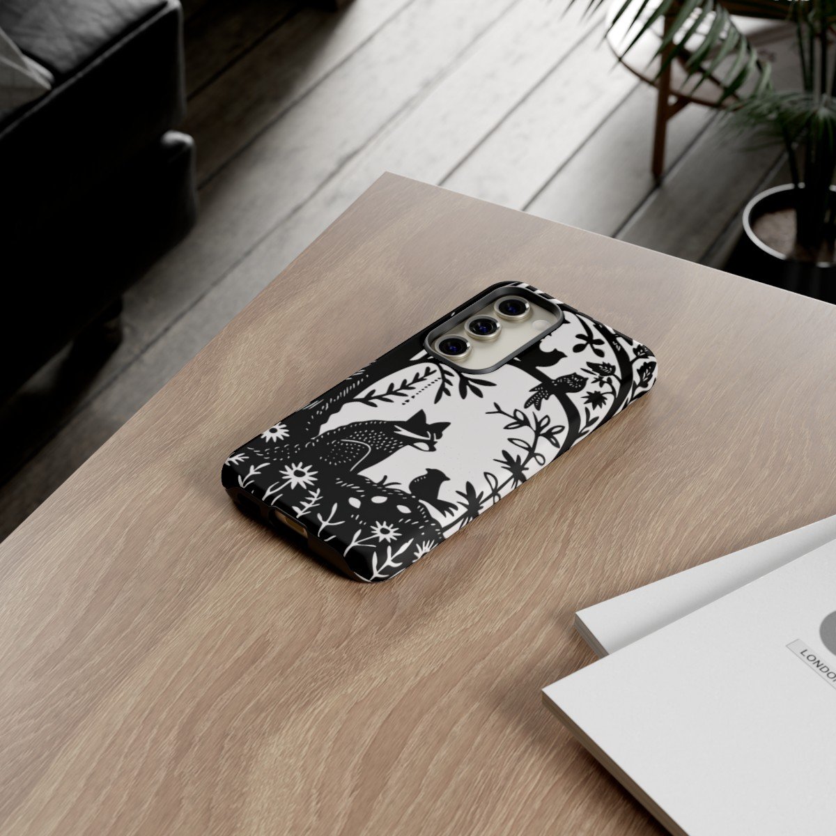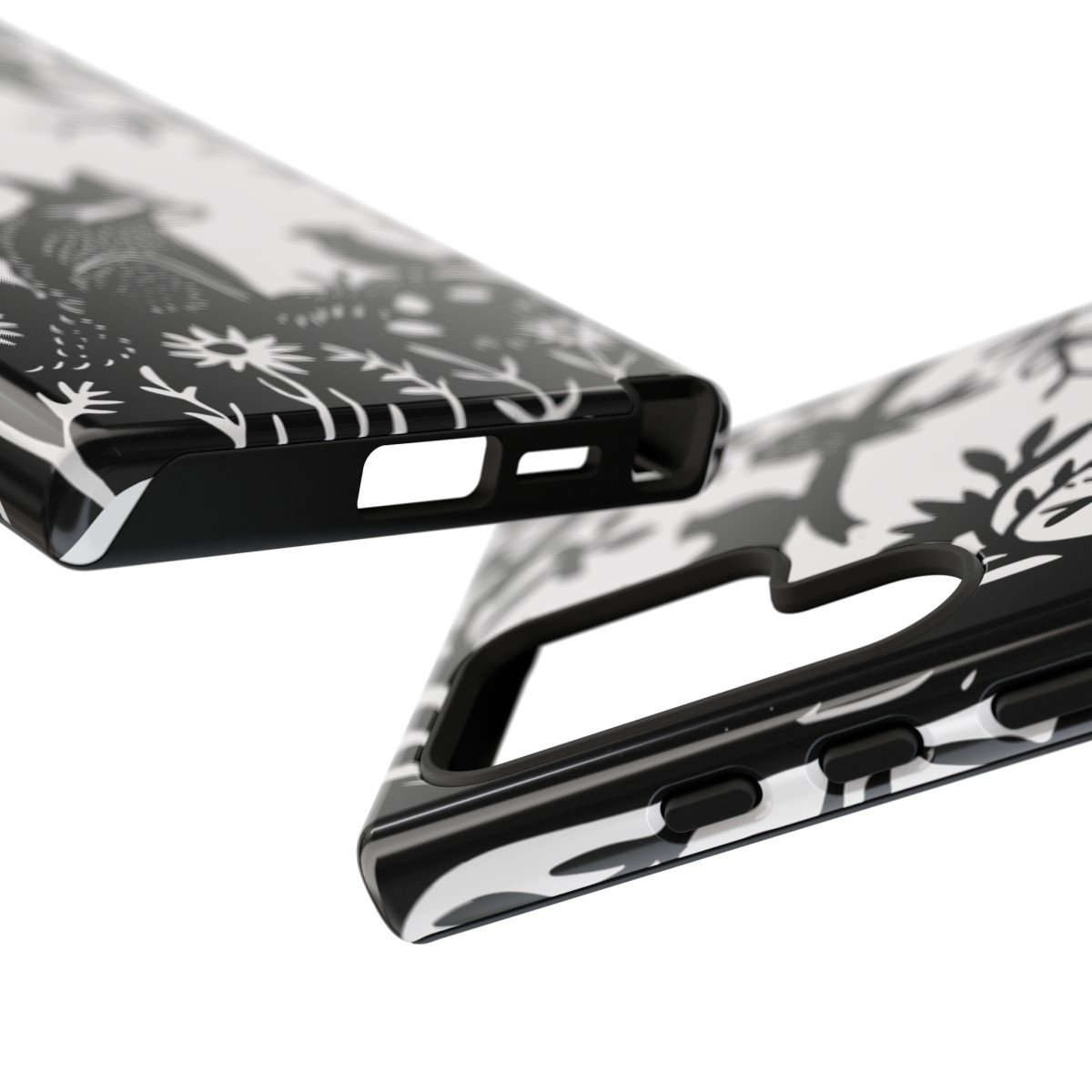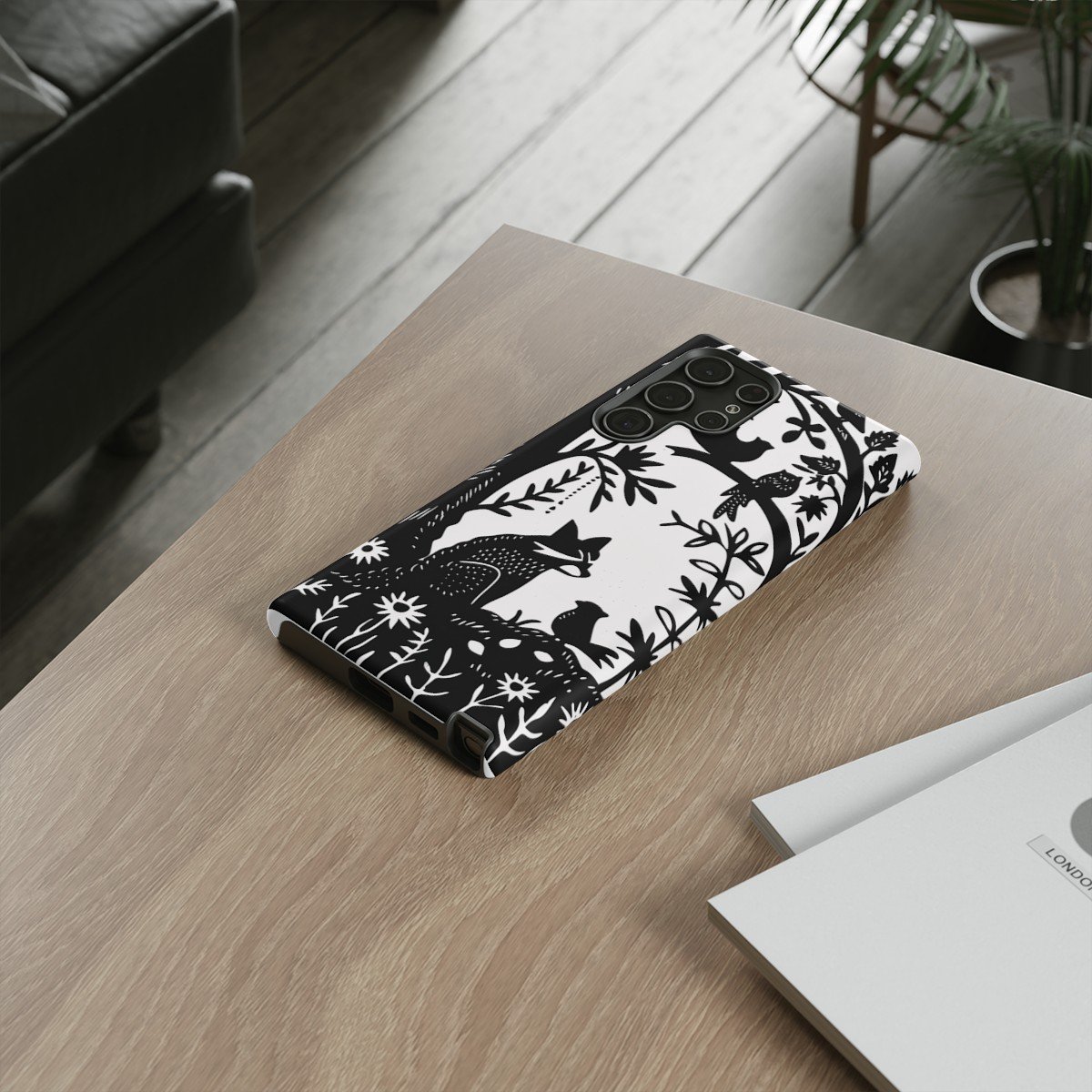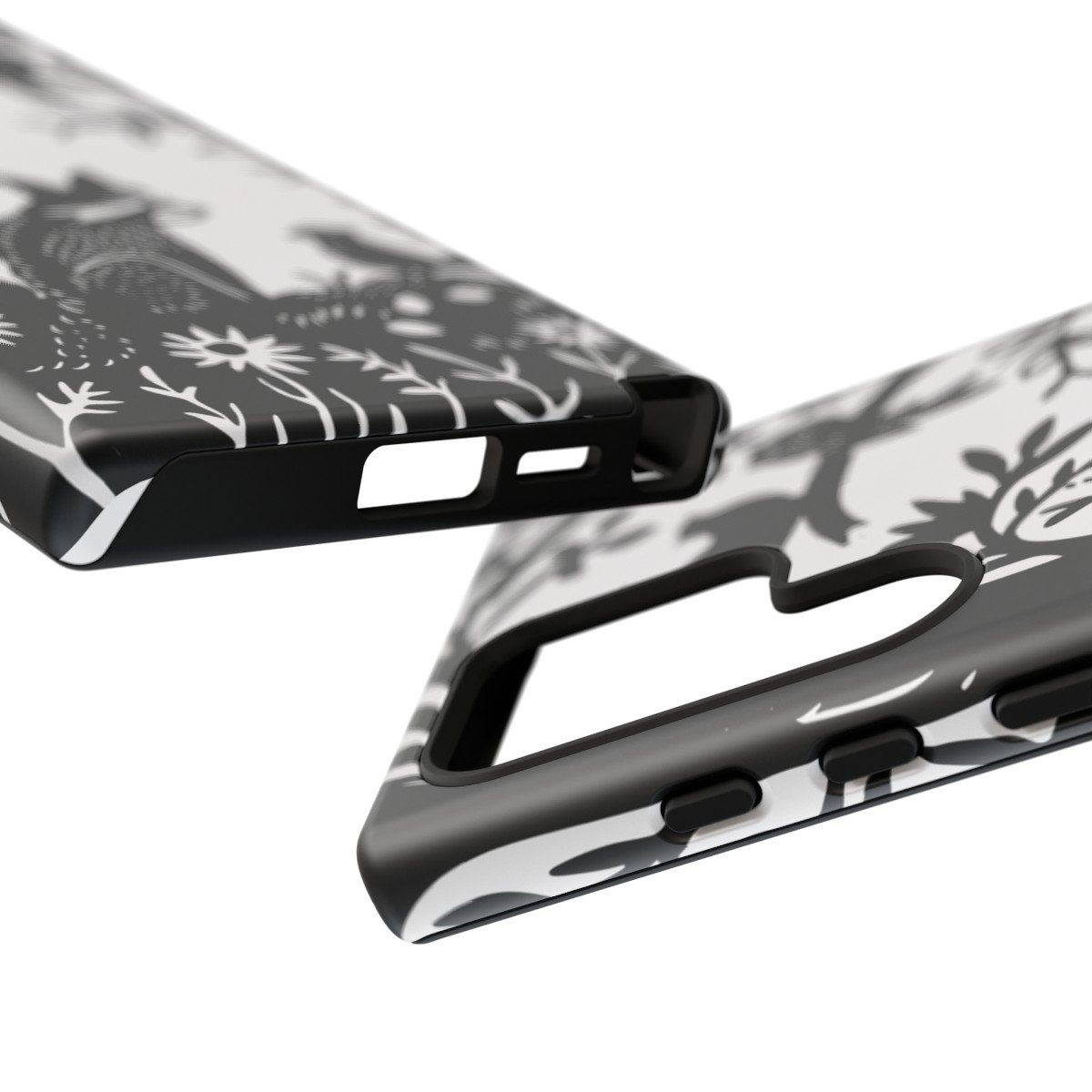 Retro Linocut Raccoon Birds Tree Flowers – Samsung Galaxy S22 S23 S24 – Cell Phone – Tough Cases.