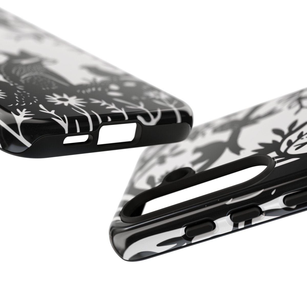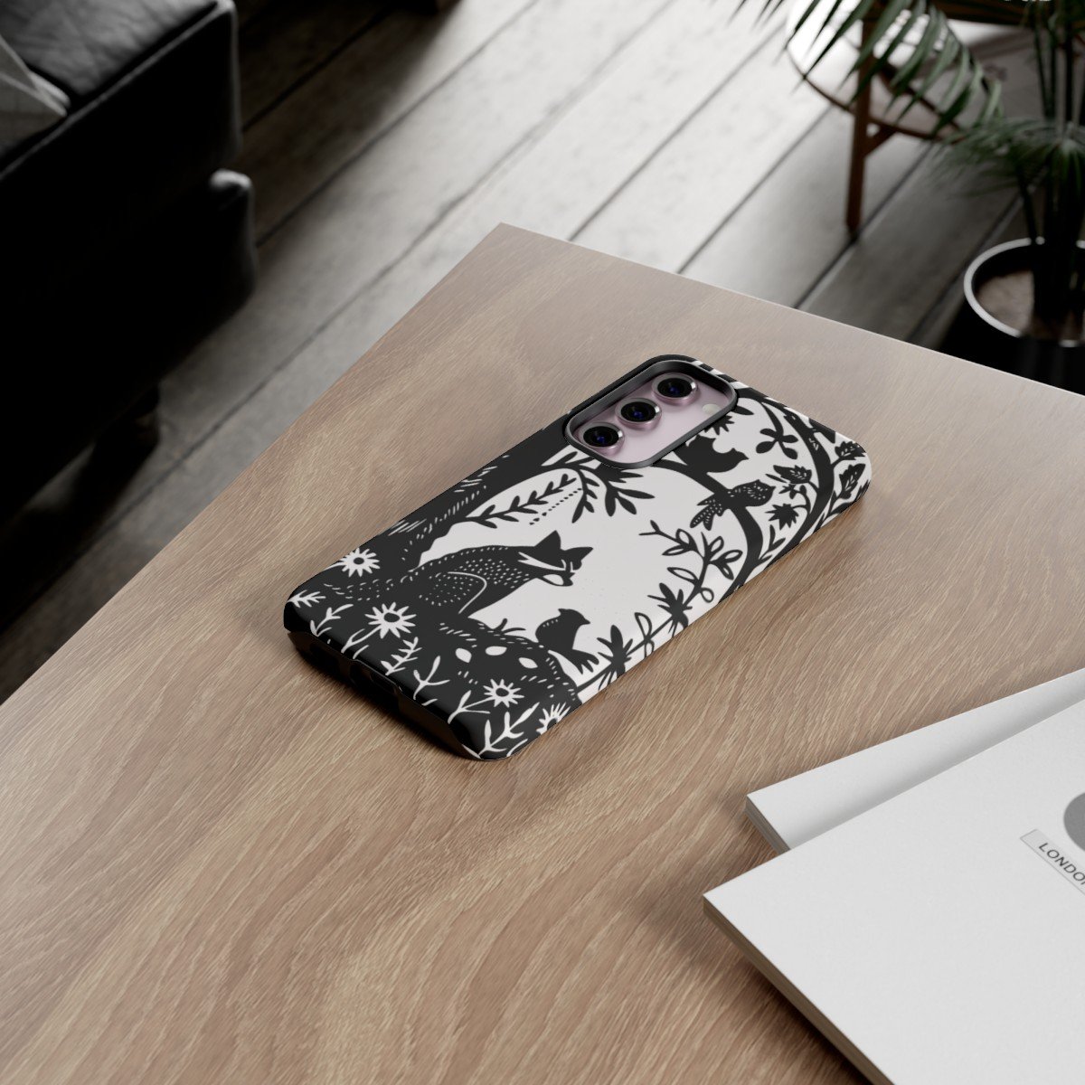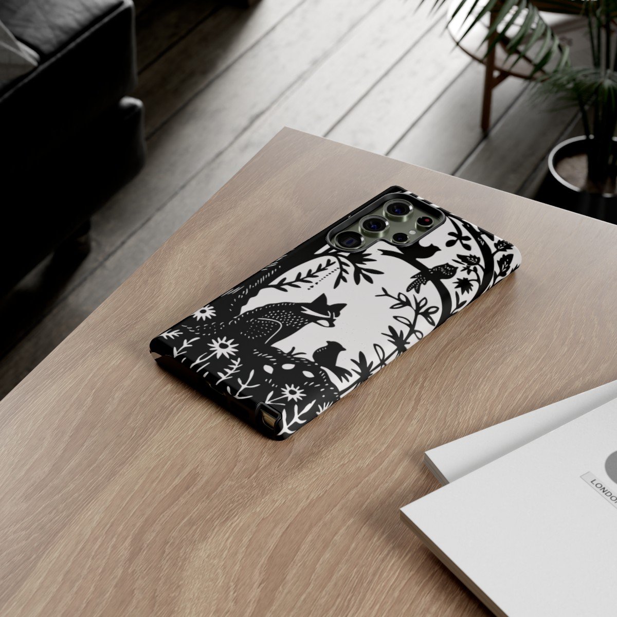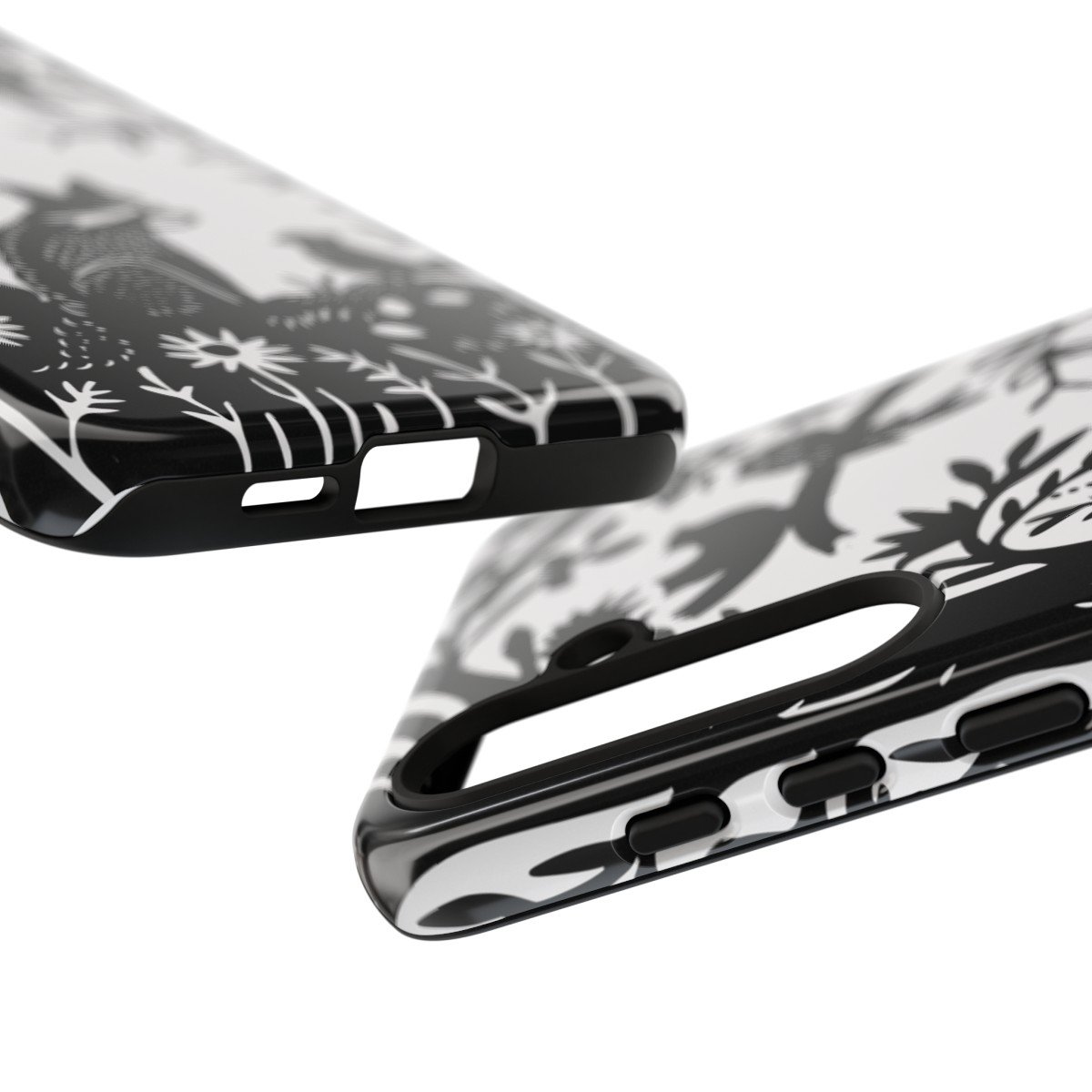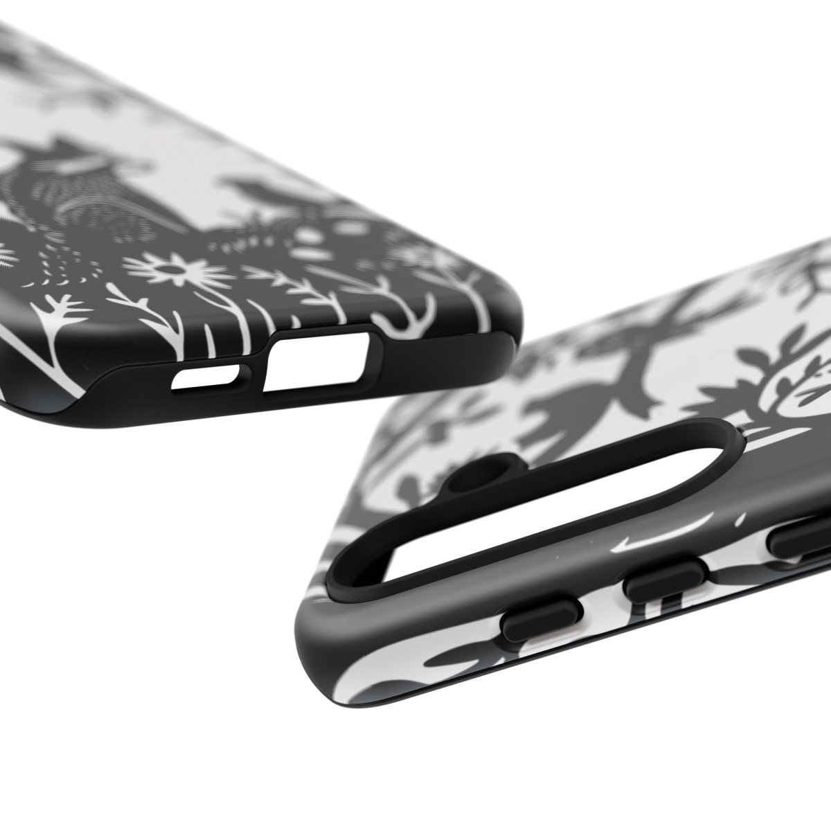 Retro Linocut Raccoon Birds Tree Flowers – Samsung Galaxy S22 S23 S24 – Cell Phone – Tough Cases.